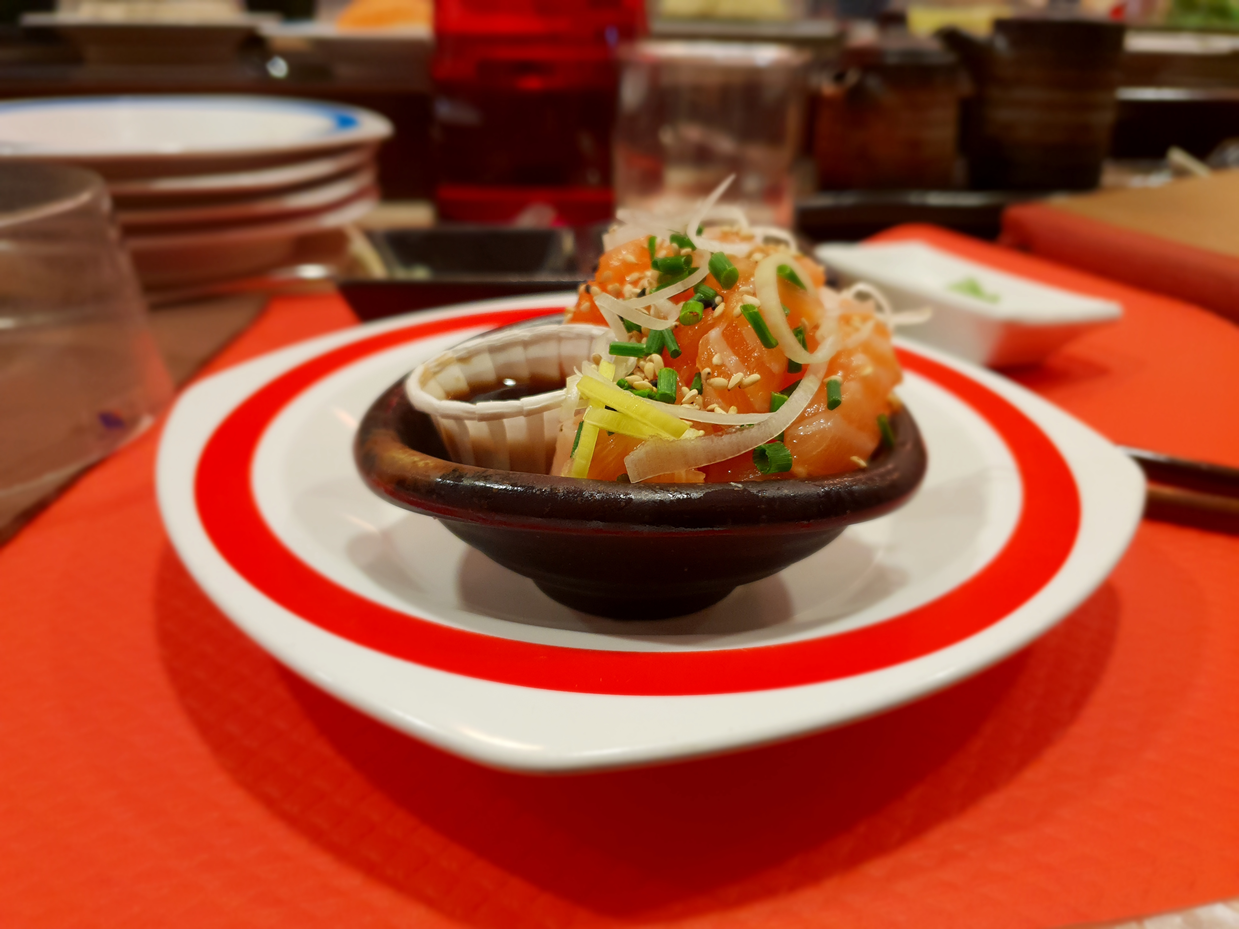Endroit très agréable Personnel très agréable et professionnel Tapis roulant d'assiettes de couleur avec un prix prédéfini sur la carte mais possibilité de commander si vous n'y trouvez pas votre bonheur Grande fraîcheur et qualité des plats Très bon rapport qualité-prix
