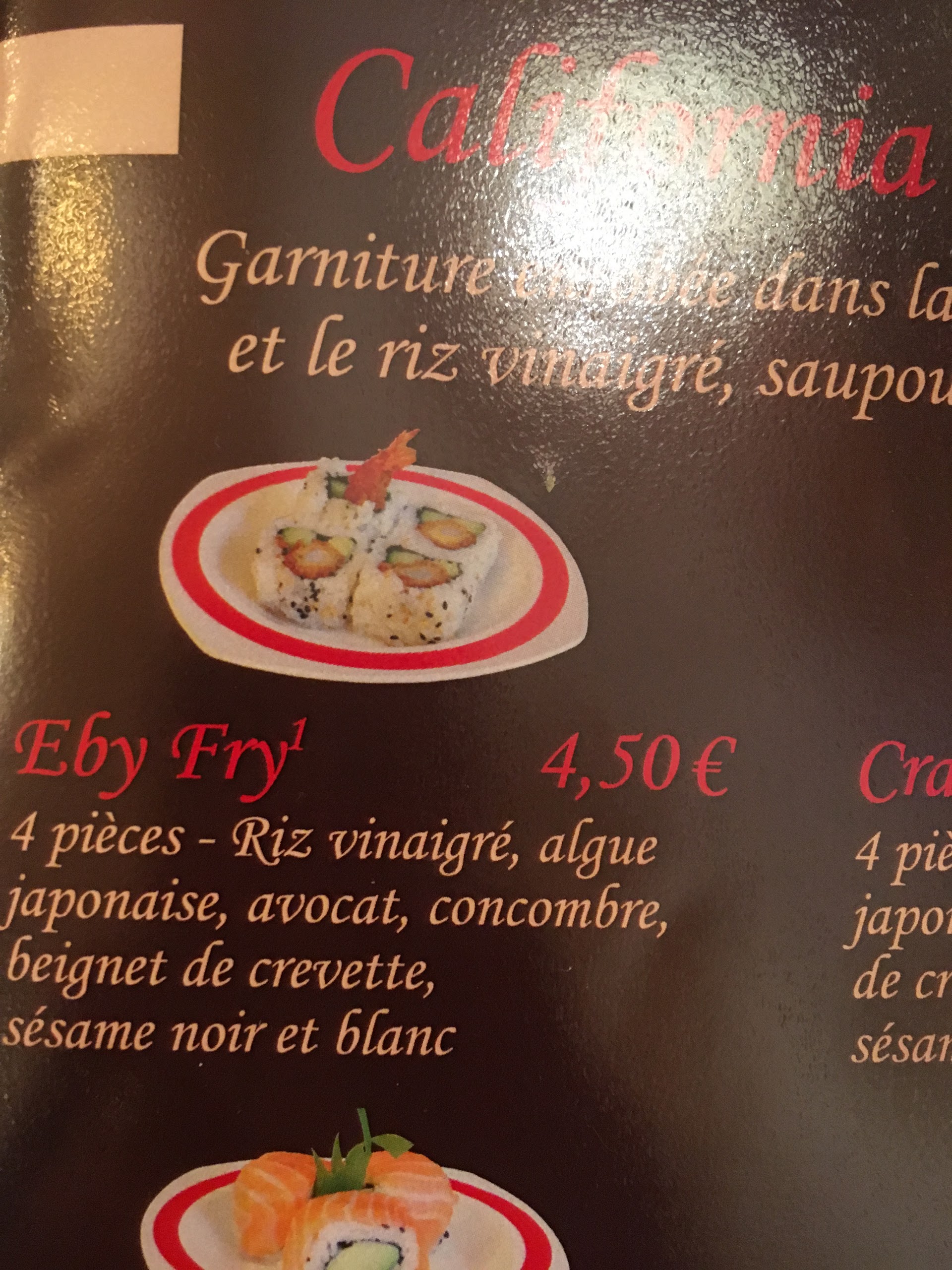Première fois que je me rendais dans ce restaurant. Je suis très satisfait par les sushis et california. La personne qui m a servit était très agréable. Je recommande ce restaurant sur Villefranche.
