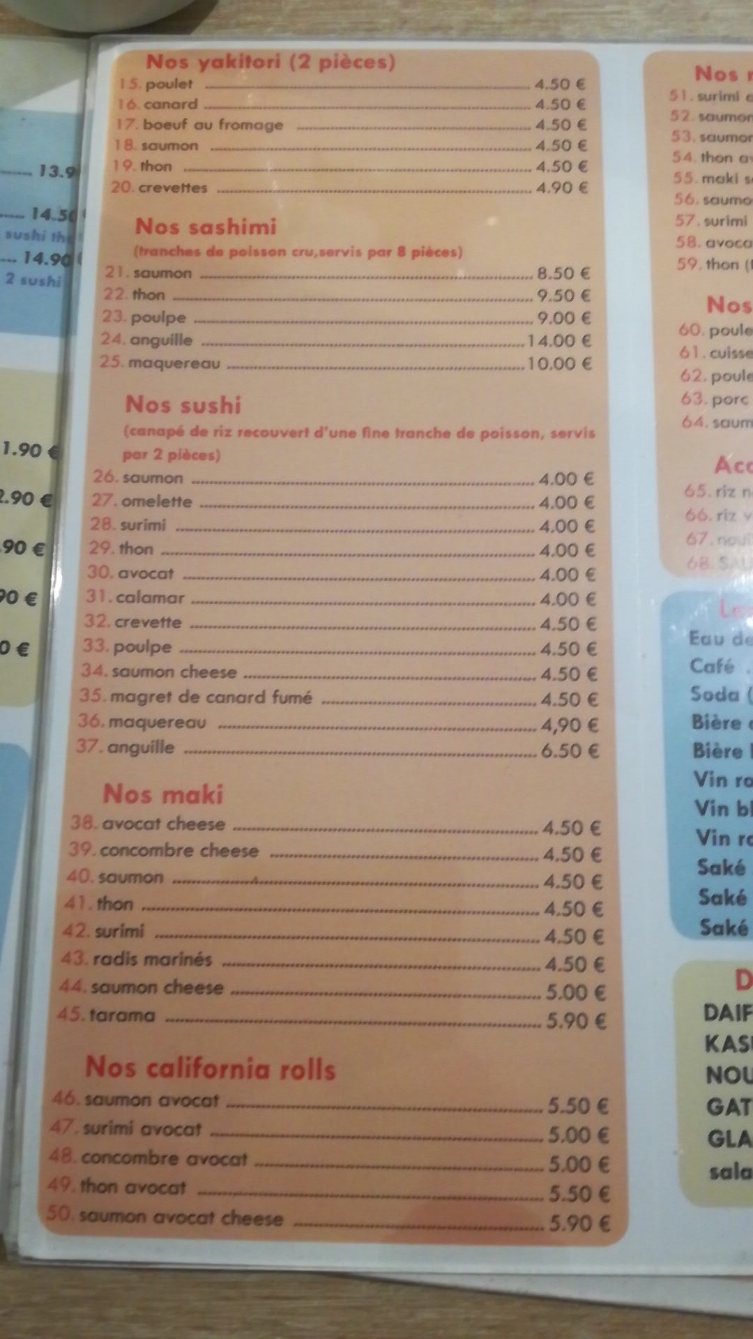 C'est excellent ! La carte propose de nombreuses sortes de sushis, yakitori et californias. On a possibilité d'être livré et je n'ai jamais été déçu !