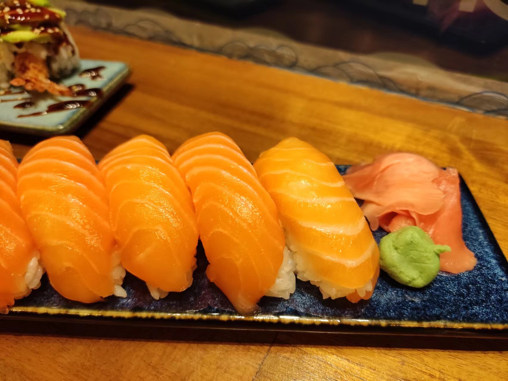 Premier repas il y a quelques jours pour un midi : des sushis copieux, riz gouteux et cuit à la perfection, poisson ultrafrais. Du très très bon ! Ne changez rien !