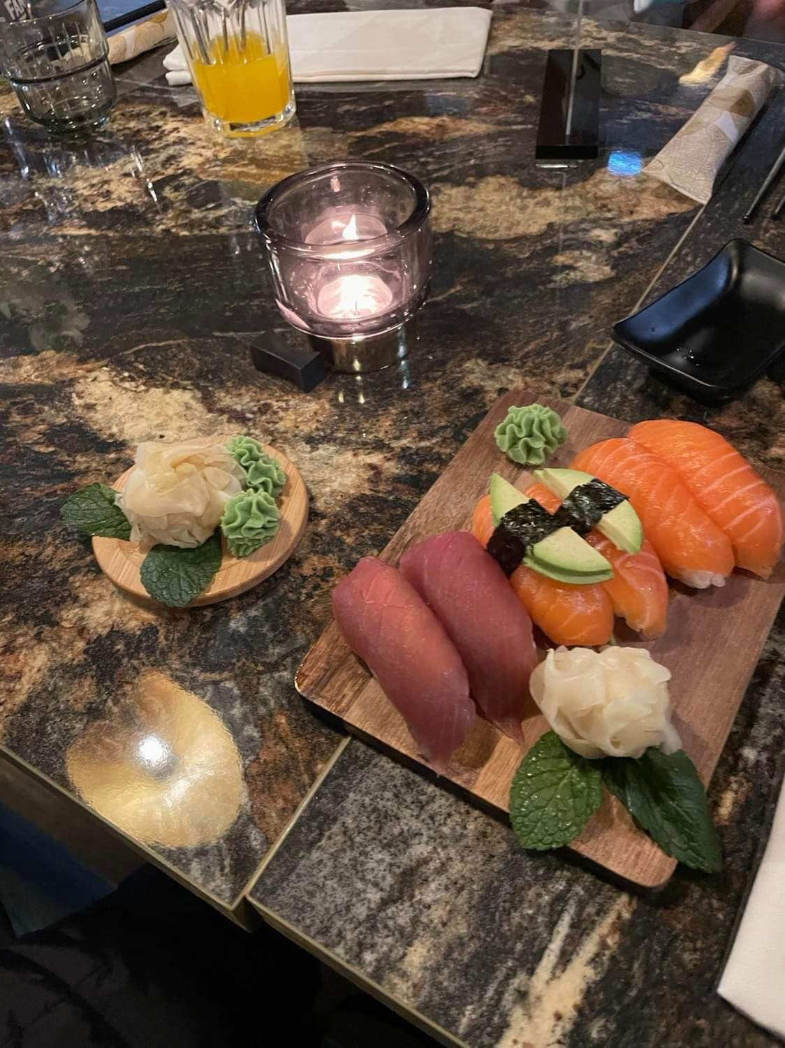 Des sushis de qualité. Nous avons fait confiance au restaurateur qui nous a fait une planche pour nous faire découvrir et c’était très bon. Les meilleurs sushis que j’ai pu manger jusqu’à maintenant. L’intérieur est également jolie! Je recommande à 100% et je reviendrais car ce sera désormais mon restau de référence pour les sushis!