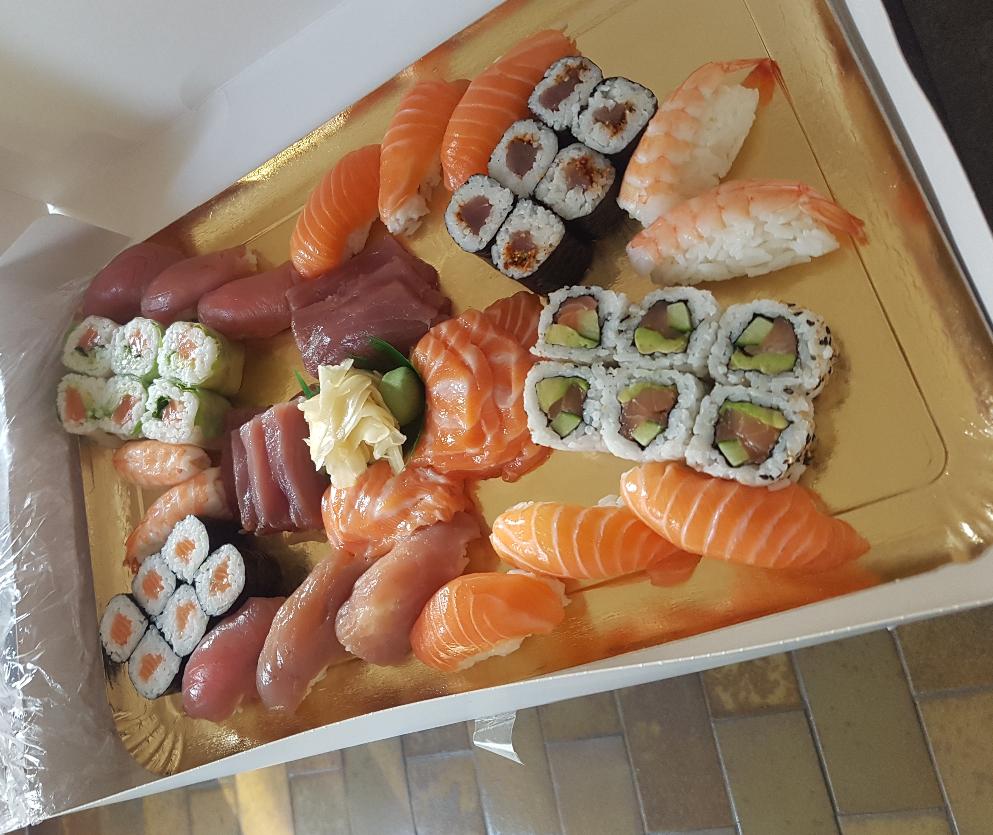 J'ai commandé un plateau doré à 34 pièces. L'ensemble n'est pas mauvais . Mais le riz est un peu trop cuit et pas assez assaisonné. Il y a beaucoup de riz dans les sushis et maki qui les rendent hyper bourratifs. Les sashimi ne sont pas coupés nettement. Et mention déshonnorable pour le maki thon spicy qui est noyé dans le goût de l'épice. En revanche la salade de chou est super bonne!