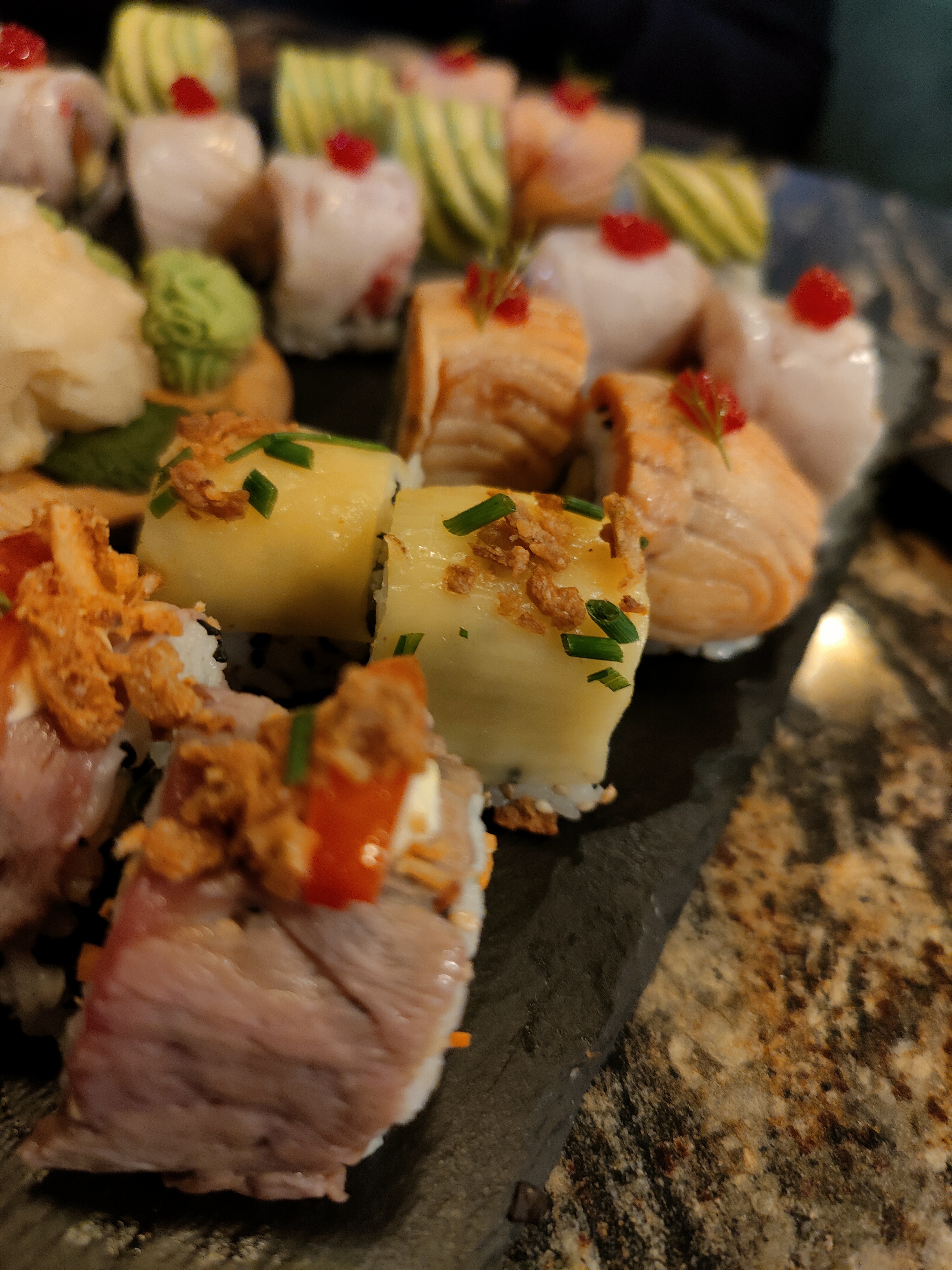 Extrêmement déçue par rapport à il y a quelques mois. On est dans un remake du film « L’aile ou la cuisse » = cuisine en plastique. Jamais mangé des sushis aussi fades. Ne me reverront plus.
