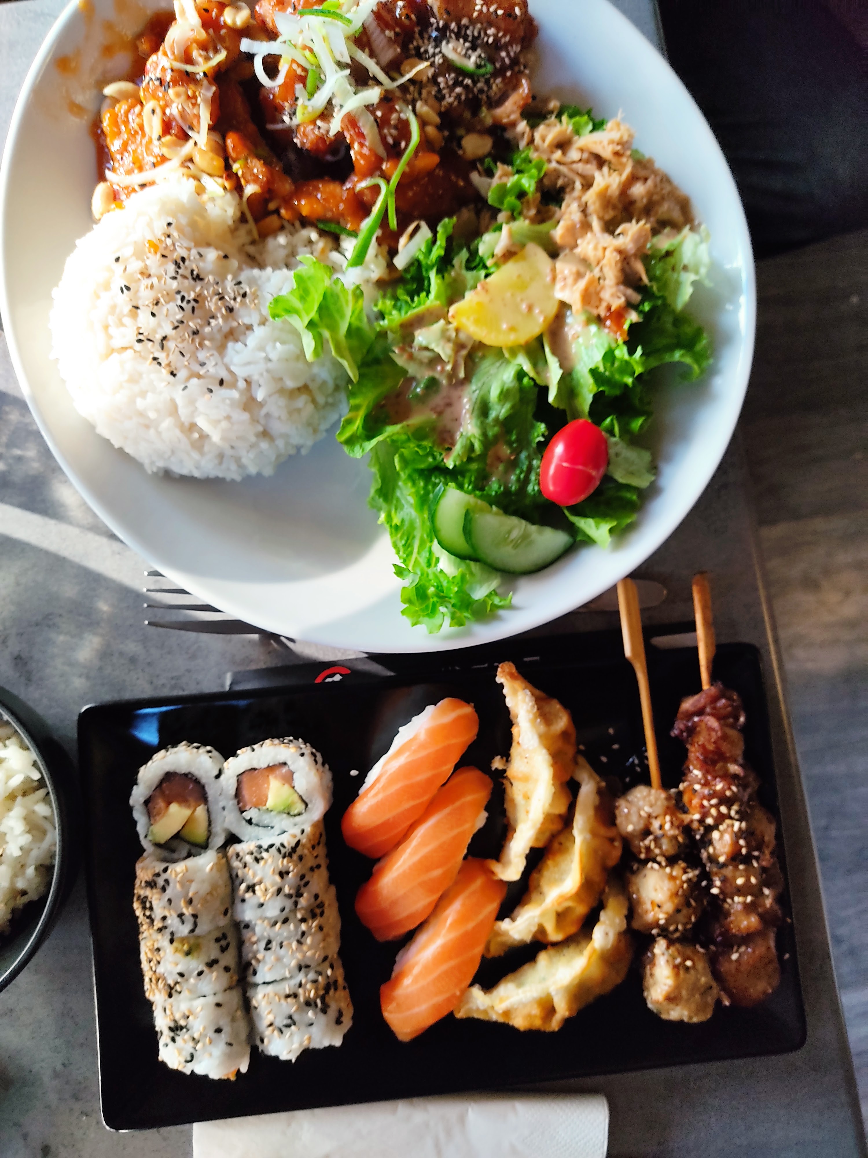Super sushis et nouilles sautées en menu, frais simple et rapide! Bon rapport qualité prix 🌷