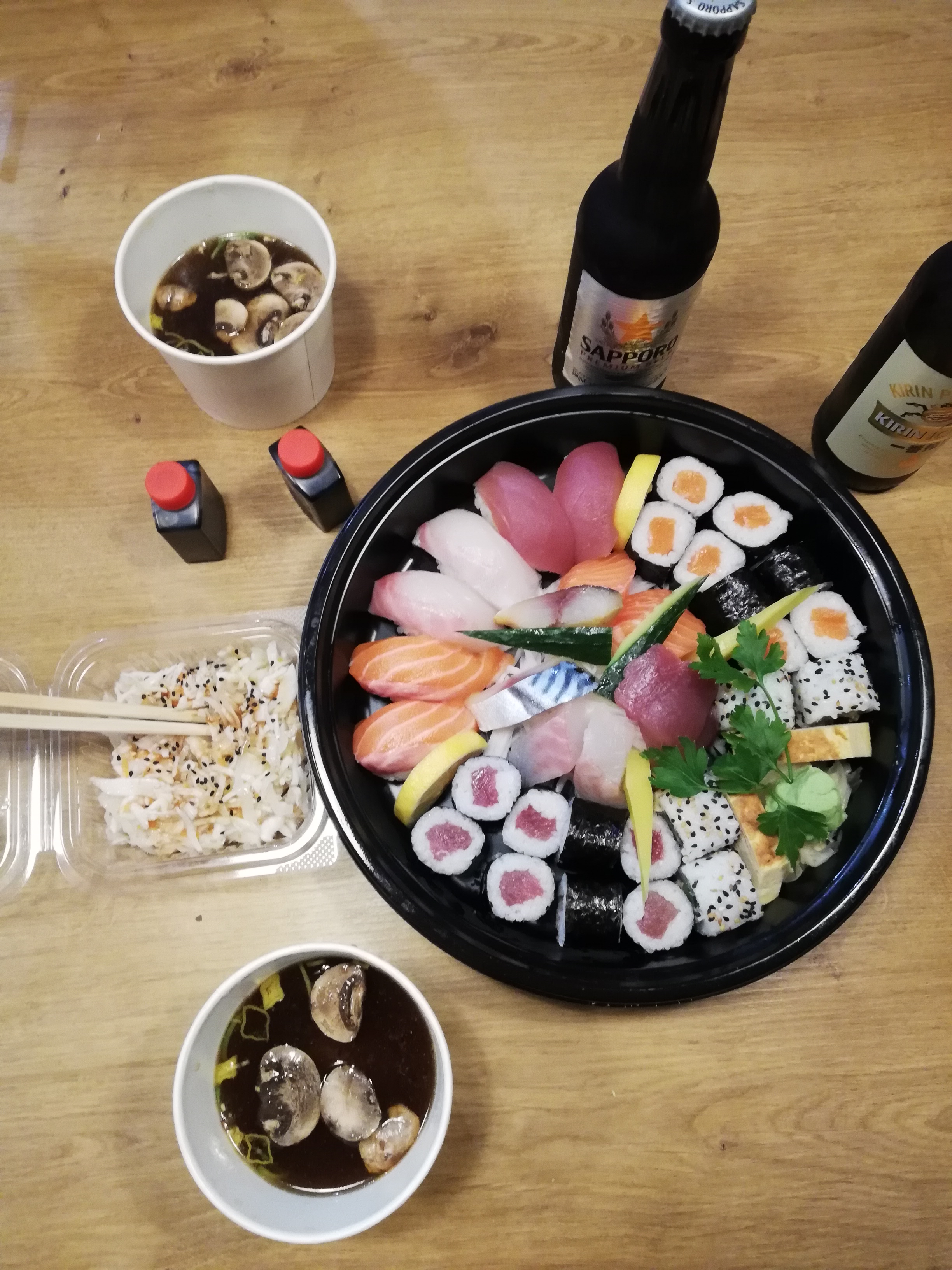 Les sushis sont excellents et l'accueil agréable. Seul bémol, la quantité de plastiques à usage unique qui pourraient, je pense, être remplacés par des emballages en carton plus éco-compatibles.