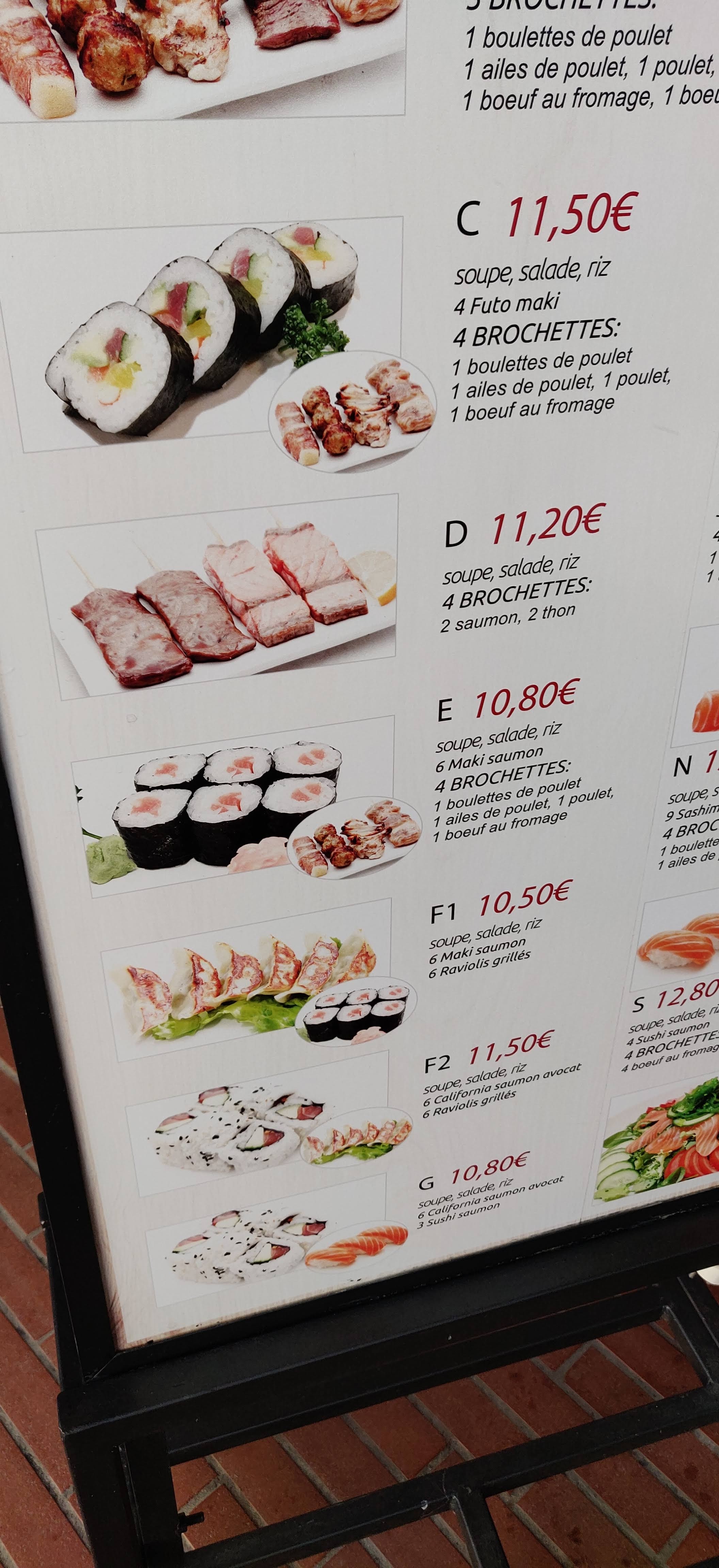 Restaurant composé quasi exclusivement de sushi au demeurant très bon. Le menu duo b voir c est largement suffisant au niveau portion pour 2 personnes. La qualité des plats proposé est bon de même que les brochettes de viandes accompagné de sauce. Personnel correct, sympa mais un peu mollasson pour instant, ce qui n enleve rien aux qualités de ce restaurant pour tout amateurs de sushis.