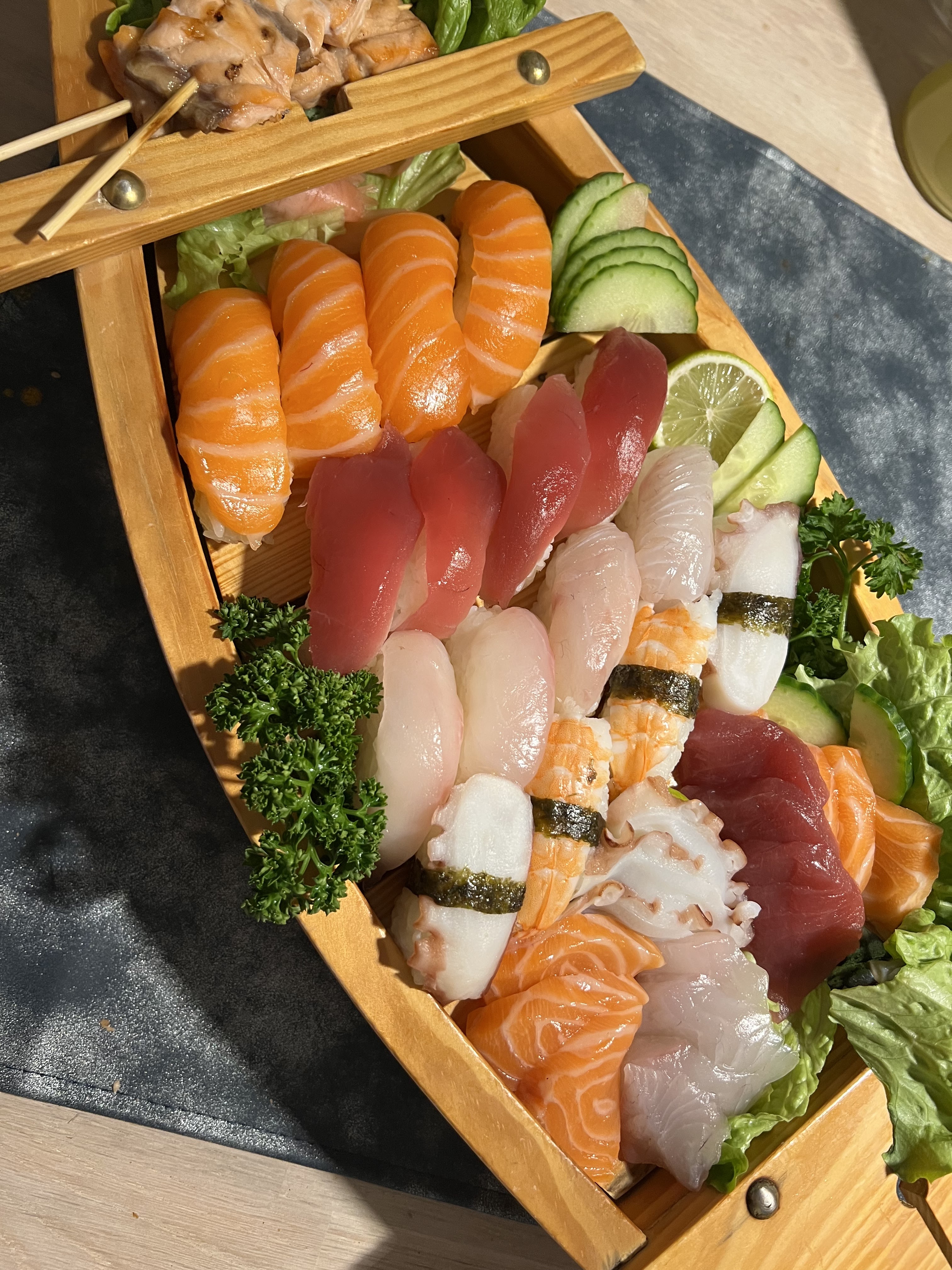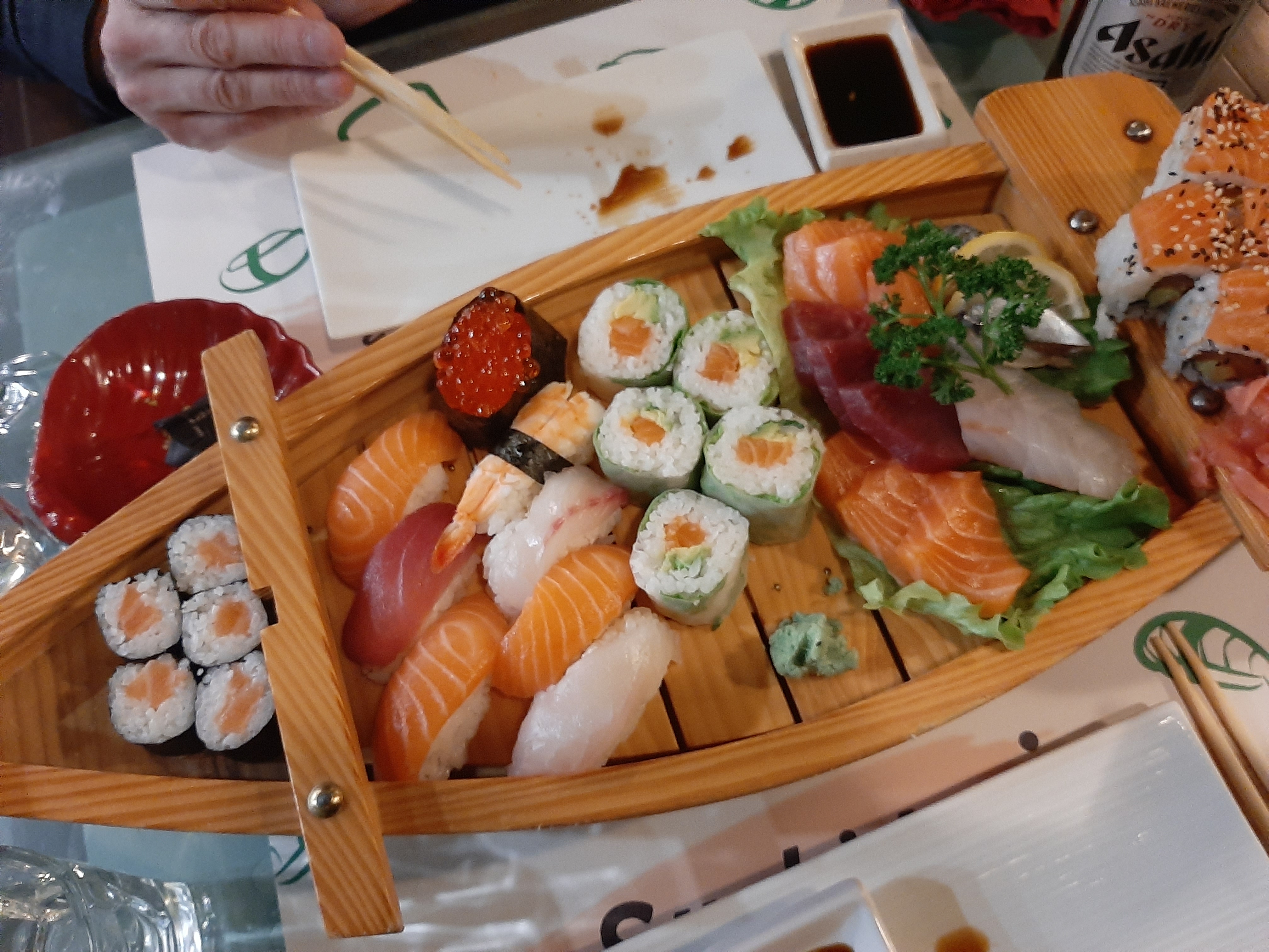 Pour un dîner romantique ! Très bien ,les sushis sont vraiment très très bon et sont disposer sur une jolie barque ,le menu n'est pas cher avec soupe,sushis,brochettes et riz ! Pour 42€ pour 2 personnes nous avons très bien manger! Juste un peu déçu par le riz qui était fade ,sans goût ! Sinon vraiment super nous avons même pu emporter ce que nous avons pas pu finir!