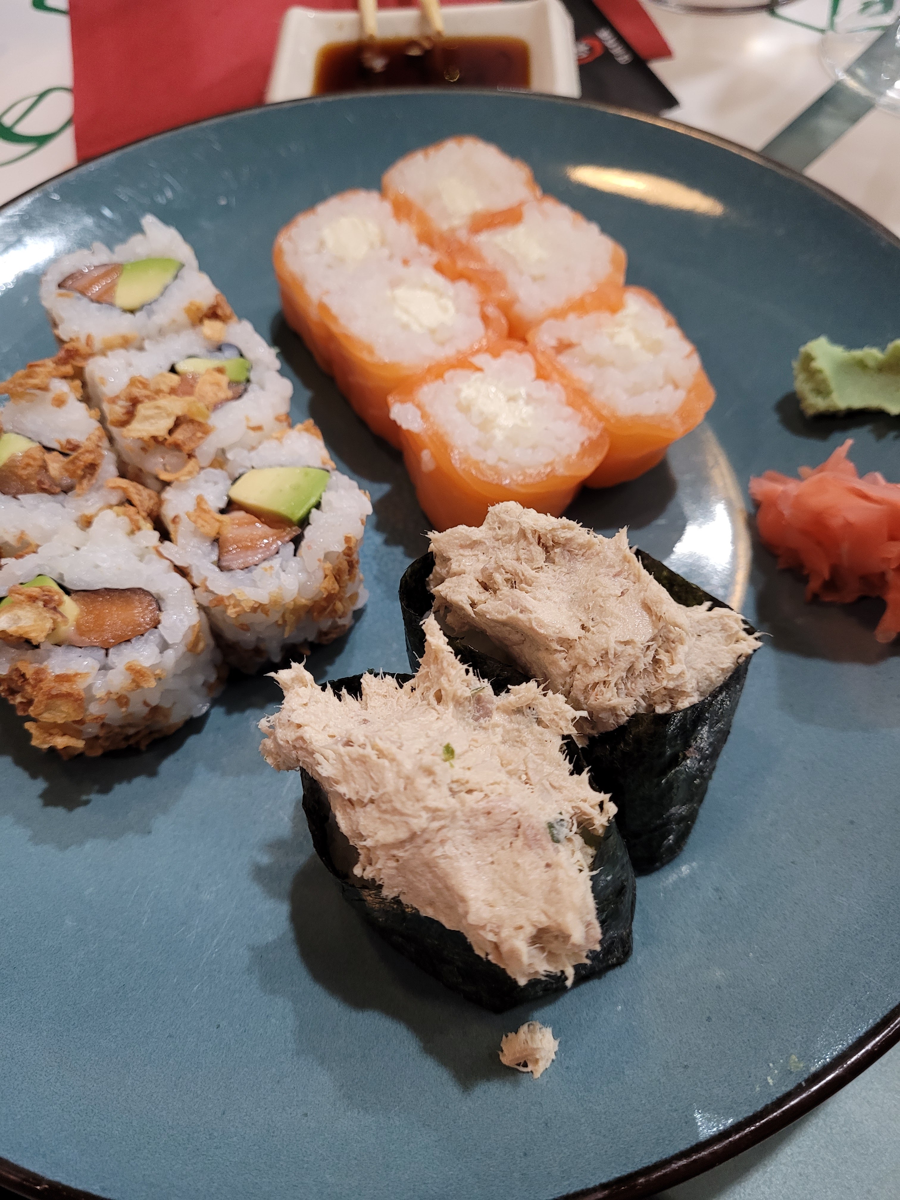 Pas de flexibilité sur le menu enfant, bon c'est dommage mais illes sont dans leur droit. Mais en commandant des maki par 8, et en en recevant 6, on s'entend dire que le chef a coupé par 6 mais que il aurait utilisé la même quantité par 8. Ça commence à être énervant... Les nems ne sont pas bons, trop gras et sans saveurs. Je n'ai pas l'habitude d'être trop exigeant mais là j'ai trouvé que c'était trop