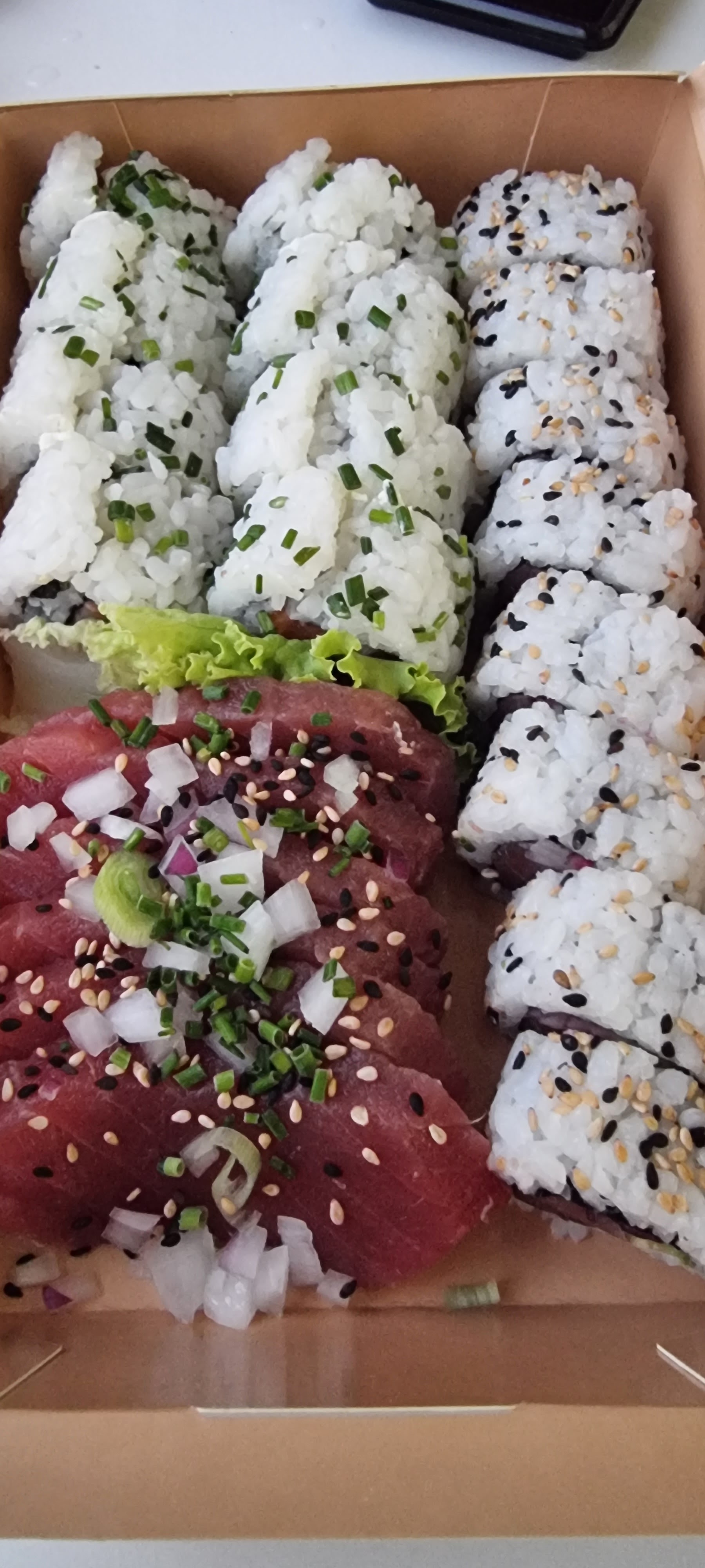 nous avons commandé sur place à emporter, nous les fans de sushi nous pouvons dire que ça fait très longtemps que nous n en avons Pas manger d aussi bon. Enfin de vrais morceaux de poissons généreux sans morceaux durs, du saumon couleur saumon sans moult traits de gras et votre thon... simplement fabuleux et généreux ! En plus on a attendu 5mn notre commande, rien à redire parfait ! 🥰