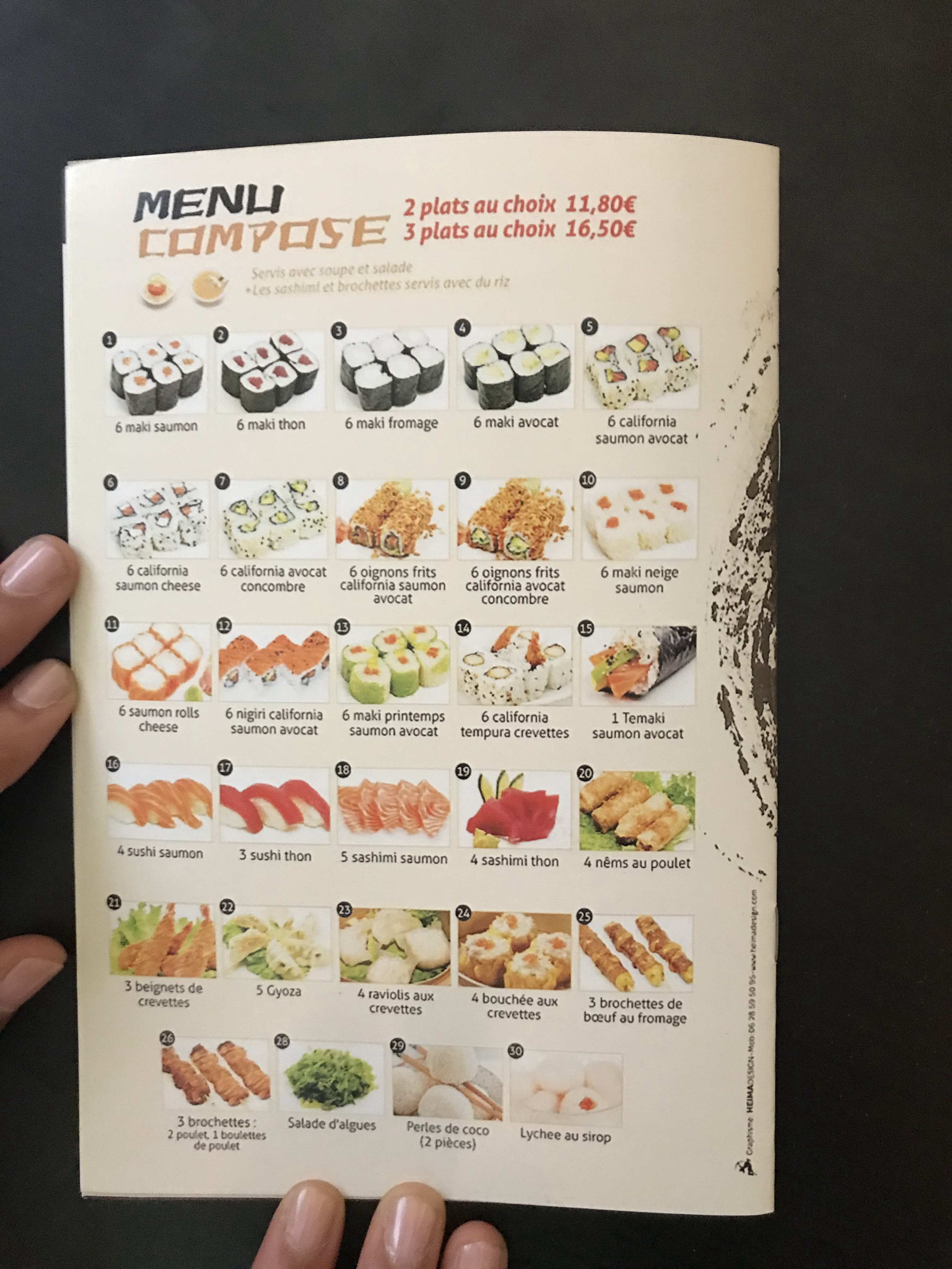 J'ai pris des sushis a emporter. C'était bien ! Fait sur le moment et frais.