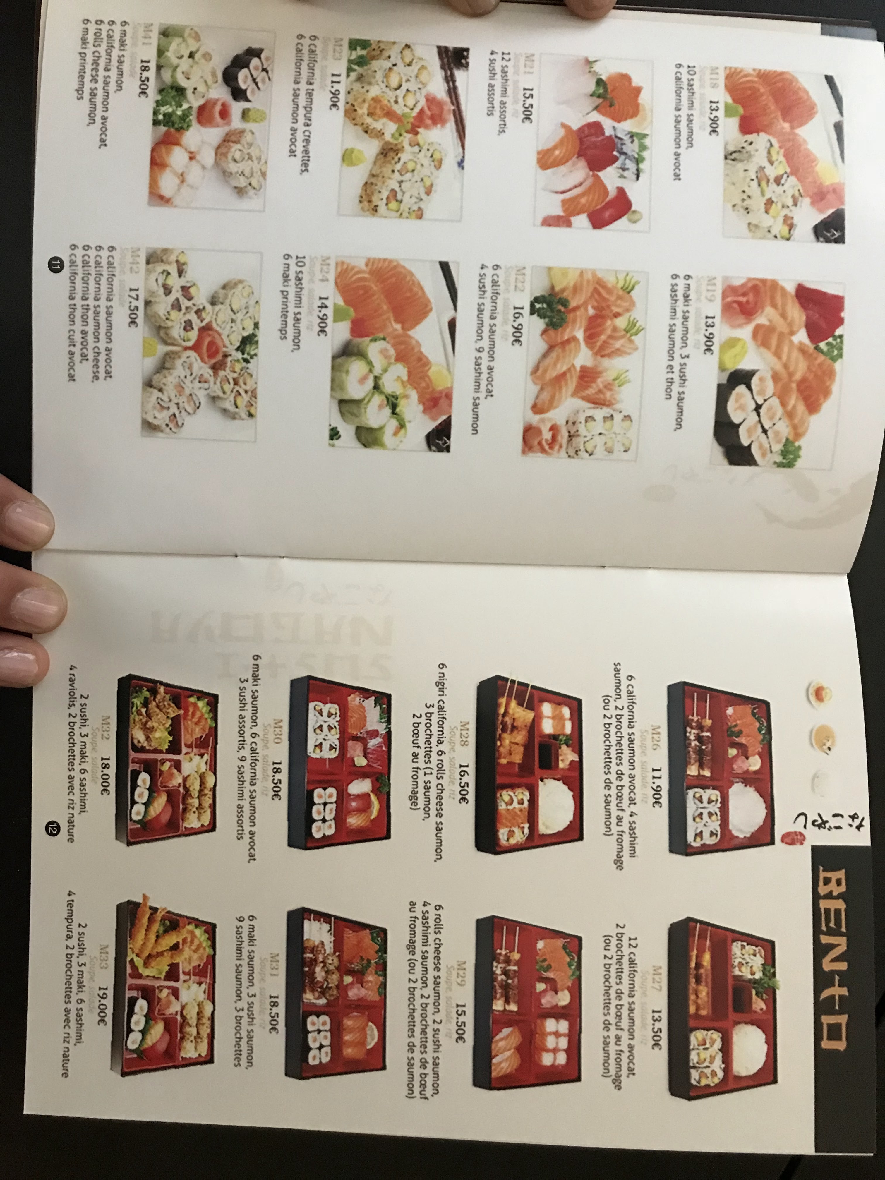 J'ai pris un menu a 12,9 et une boissons dont on m'as pas dit le prix et quelle surprise au moment de payer d'apprendre que le ice tea coute 4 euros donc je n'y remettrais plus les pieds! leurs tous petits sushi la