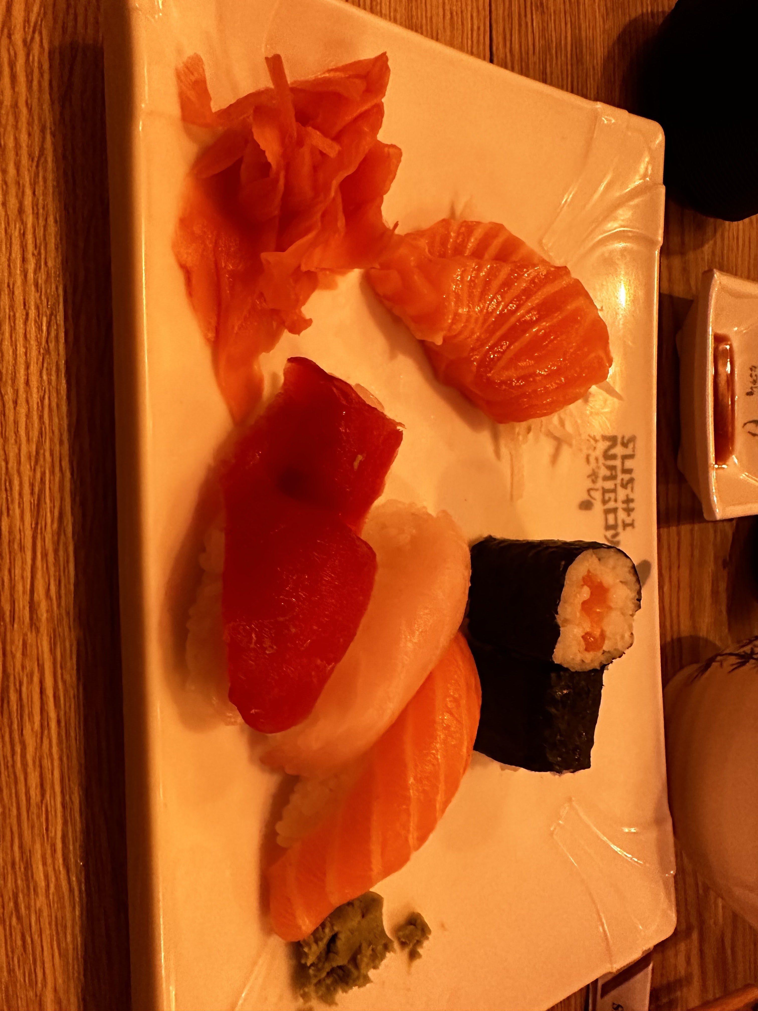 Nous sommes entrés presque affamés alors qu'ils ouvraient pour le dîner avec deux enfants et un ami. Ils étaient sympathiques et nous ont immédiatement proposé du miso et ont été efficaces avec notre commande. Les sushis étaient frais et étaient délicieux ! Les prix de l’eau étaient hors de ce monde, alors insistez sur l’eau du robinet si cela vous convient mdr. Sinon je dis allez-y – les petits pains et les nigiri étaient tous bons !