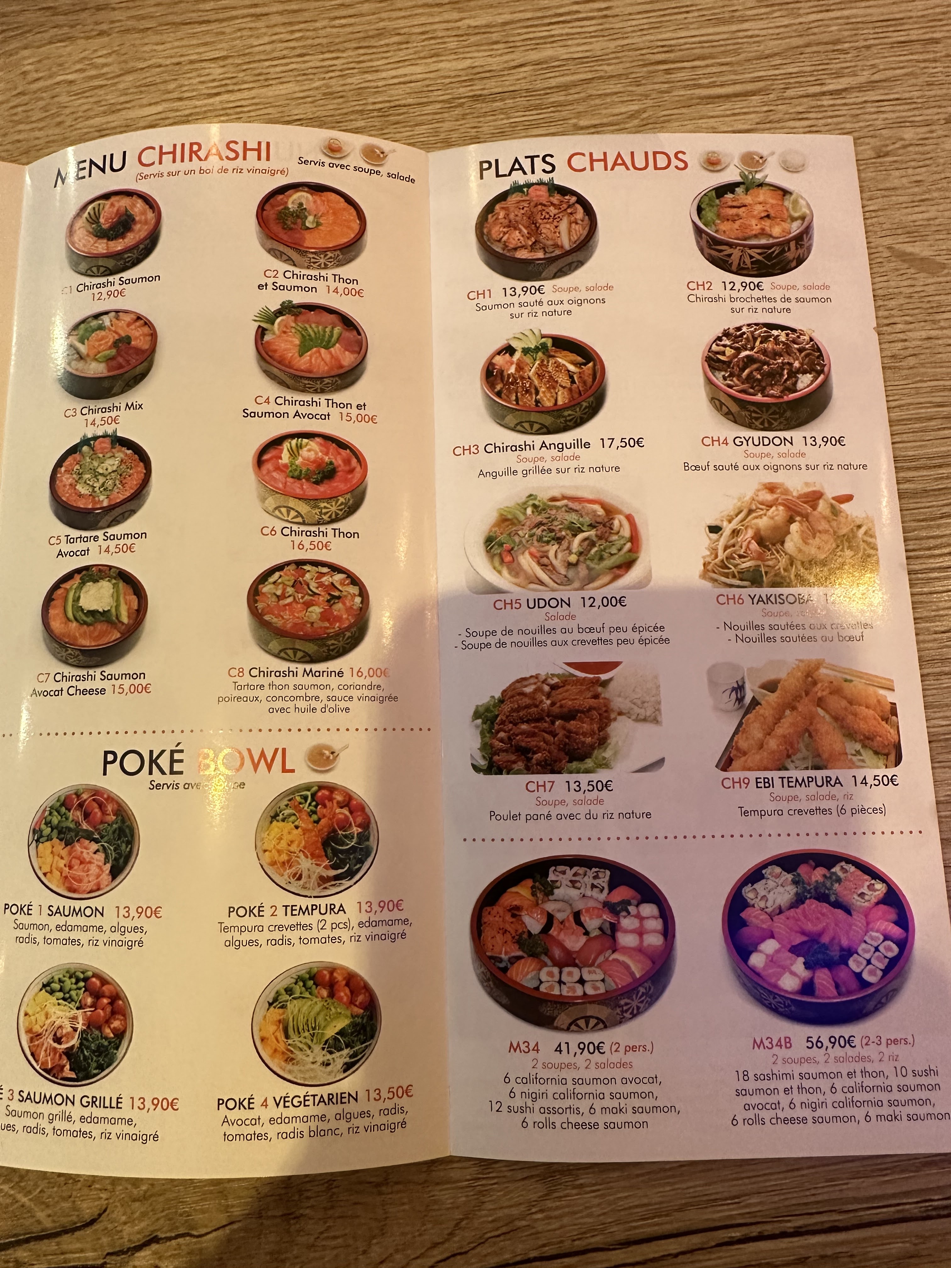 Très déçue par les morceaux de saumon sur le chirachi. Très fins, très petits, et peu nombreux, mais bons. Soupe miso correcte sans plus. Le riz était plutôt bien cuit et assaisonné par contre. Le service était très bien, rien à dire. Suffisamment de places assises même si ça doit être serré quand il y a du monde.