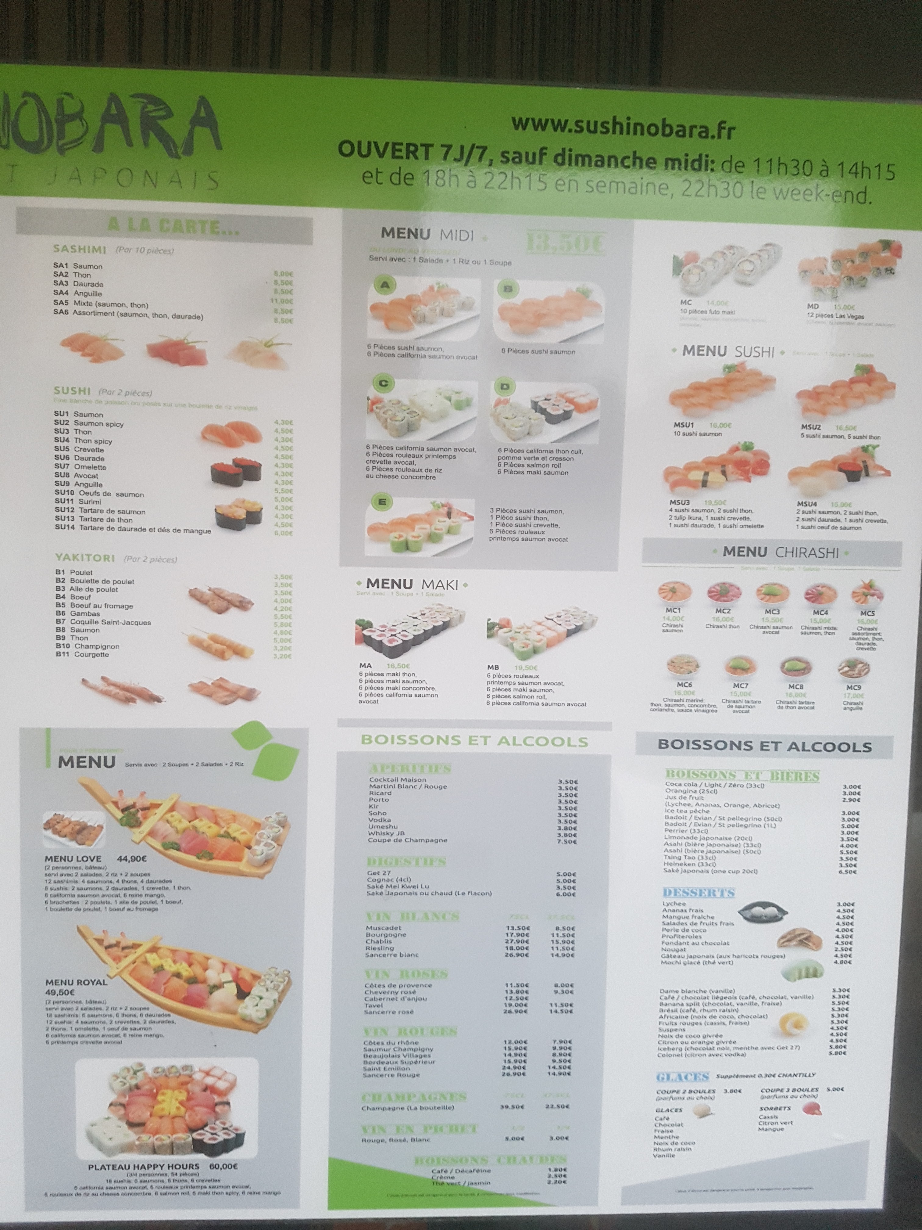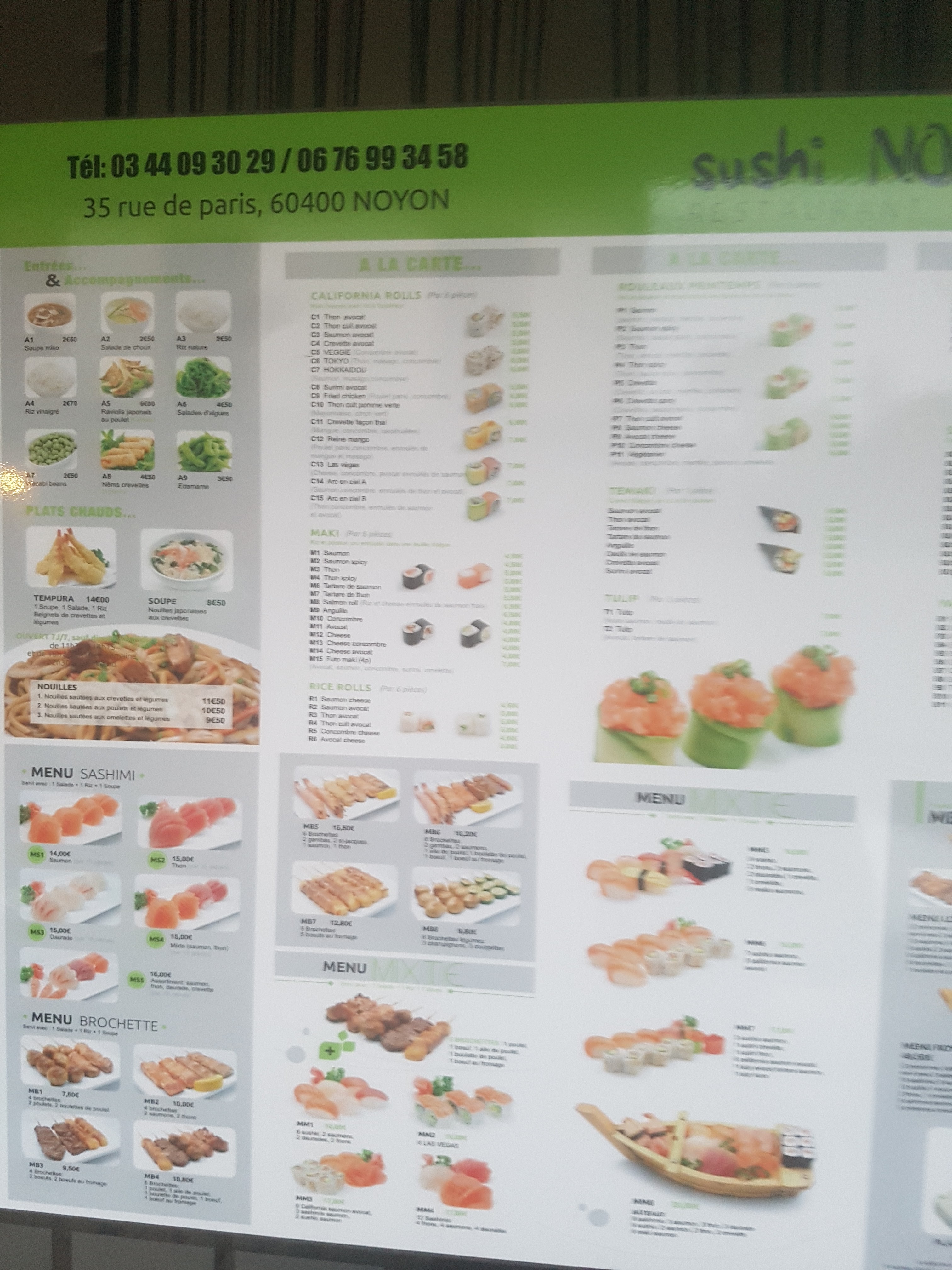 Commande uniquement: Très bon niveau poissons, mais je trouve que le ris n'est pas assez vinaigré, c est vraiment dommage. Cependant tout est frais. Accueil agréable au téléphone.