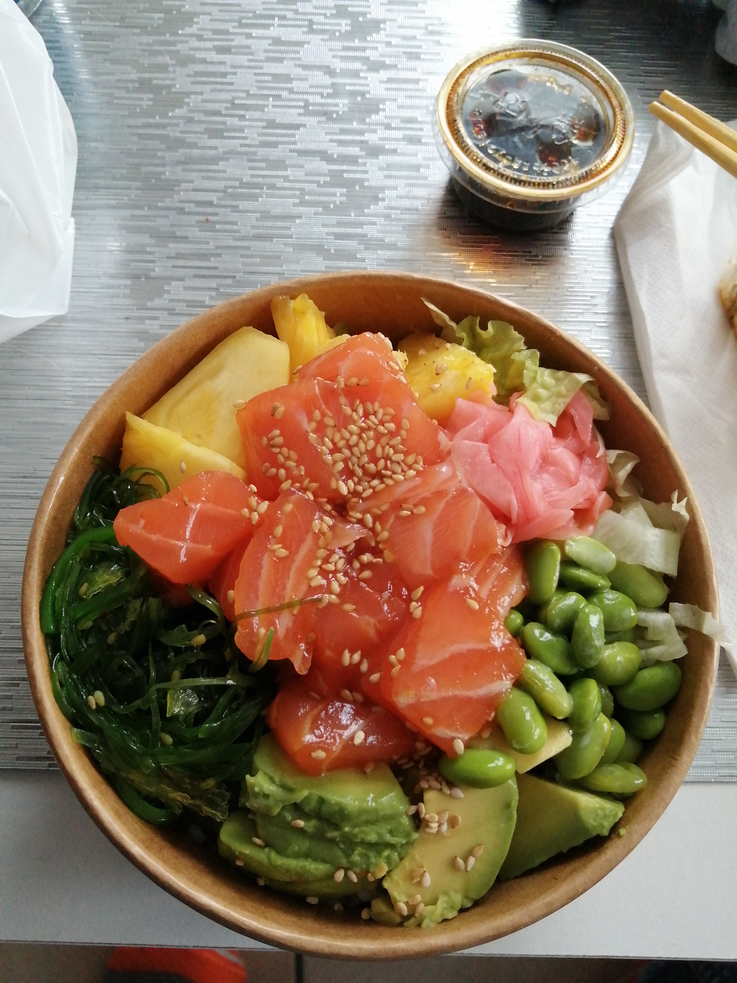 [Edit 25.11: Un peu déçue sur cette dernière commande, j'ai pris des sashimis de dorade qui ressemble plus à du carpaccio de poisson. Le prix est extrêmement élevé pour la quantité de poisson.] Super bon ! Pris un poke bowl à emporter ce midi, tout était très bon, généreux, diversifié, bien assaisonné. Qualité /prix au top !