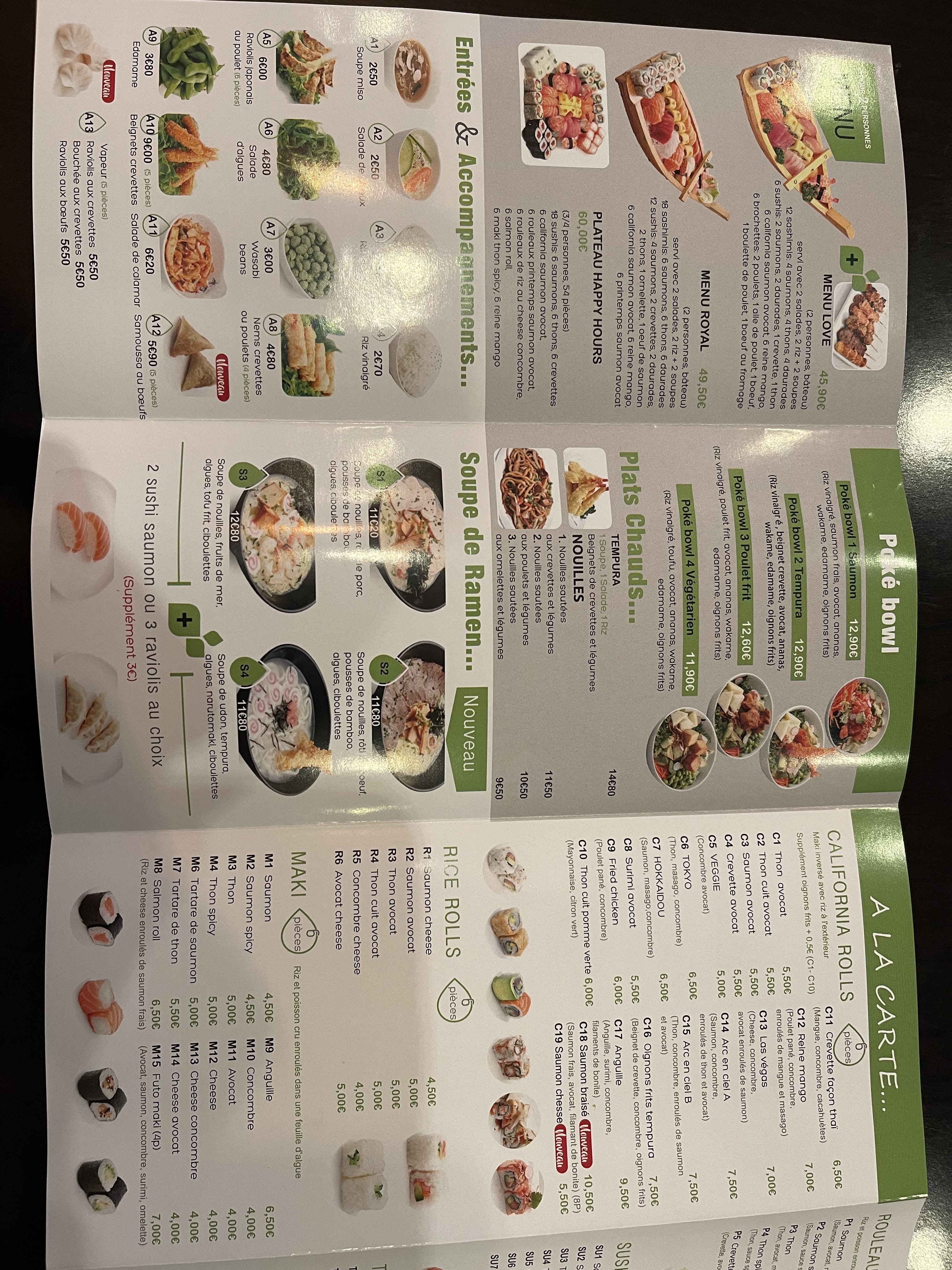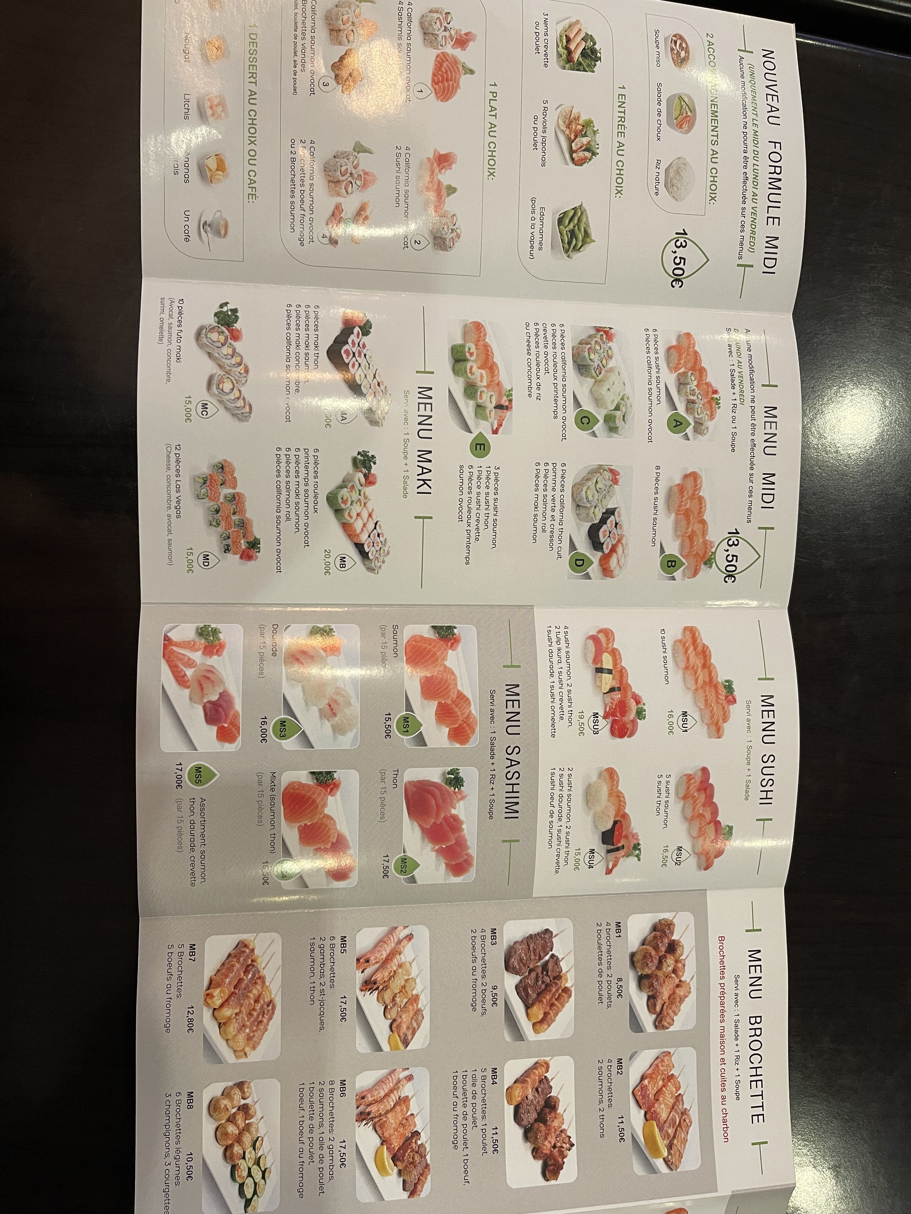 Je n'avais jamais essayé je dois reconnaître que les produits sont très frais et que c'est bien exécutés J'ai opté pour une formule à emporter EXCELLENT ! Un régal c'est sûr la prochaine fois je réserve une table. Concernant les tarifs tous les amateurs de cuisine Japonaise savent que c'est assez élevé mais là je trouve que c'est correct vue la qualité est la fraîcheur je recommande