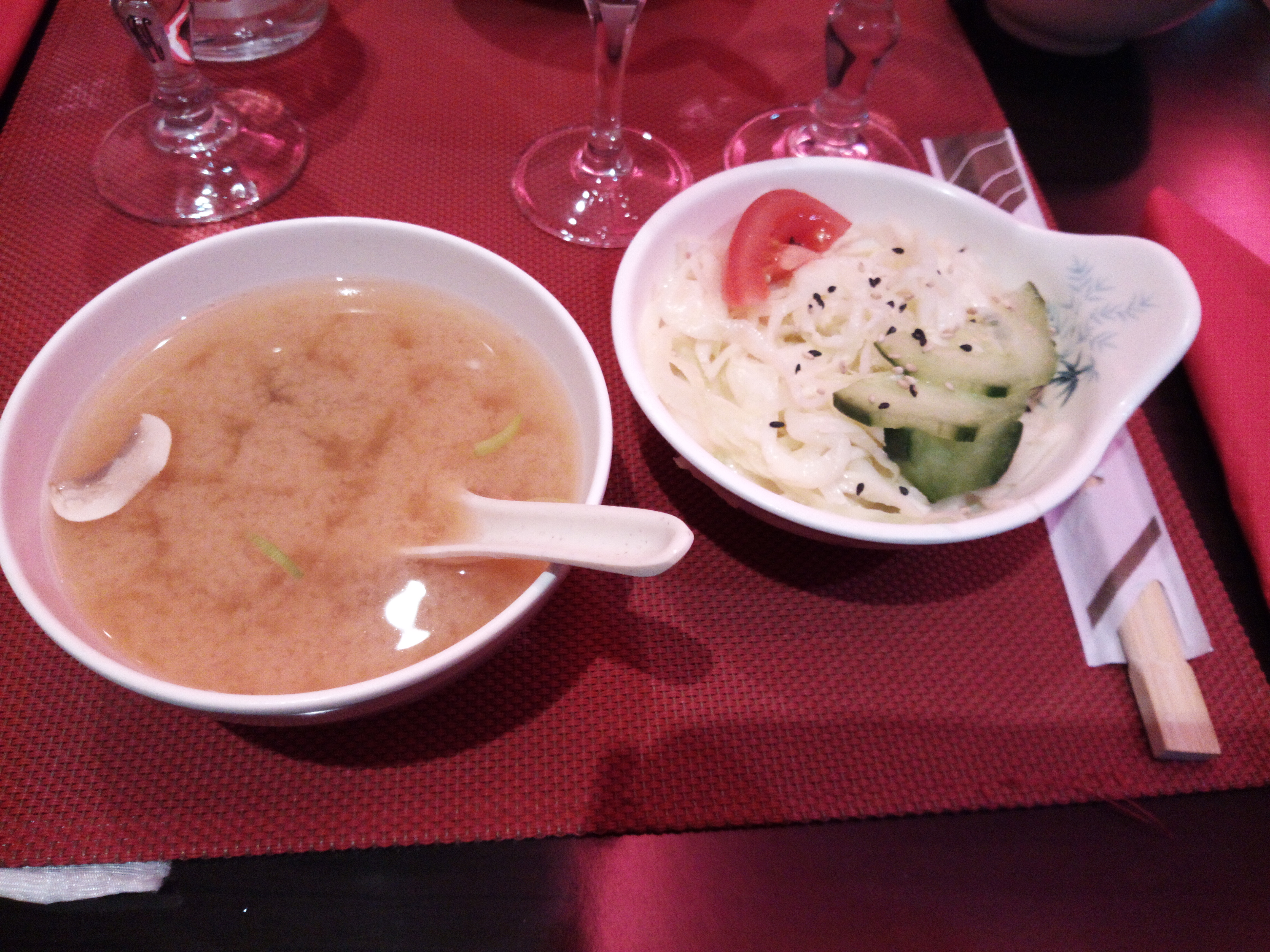 Nous avons essayé beaucoup de restaurant japonais mais nous revenons toujours ici. Déjà c’est agréable d’avoir toujours soupe ET salade avec les menus et non OU comme dans certains endroits. Les sushis ... sont très bons, rien à redire ! Recommande +