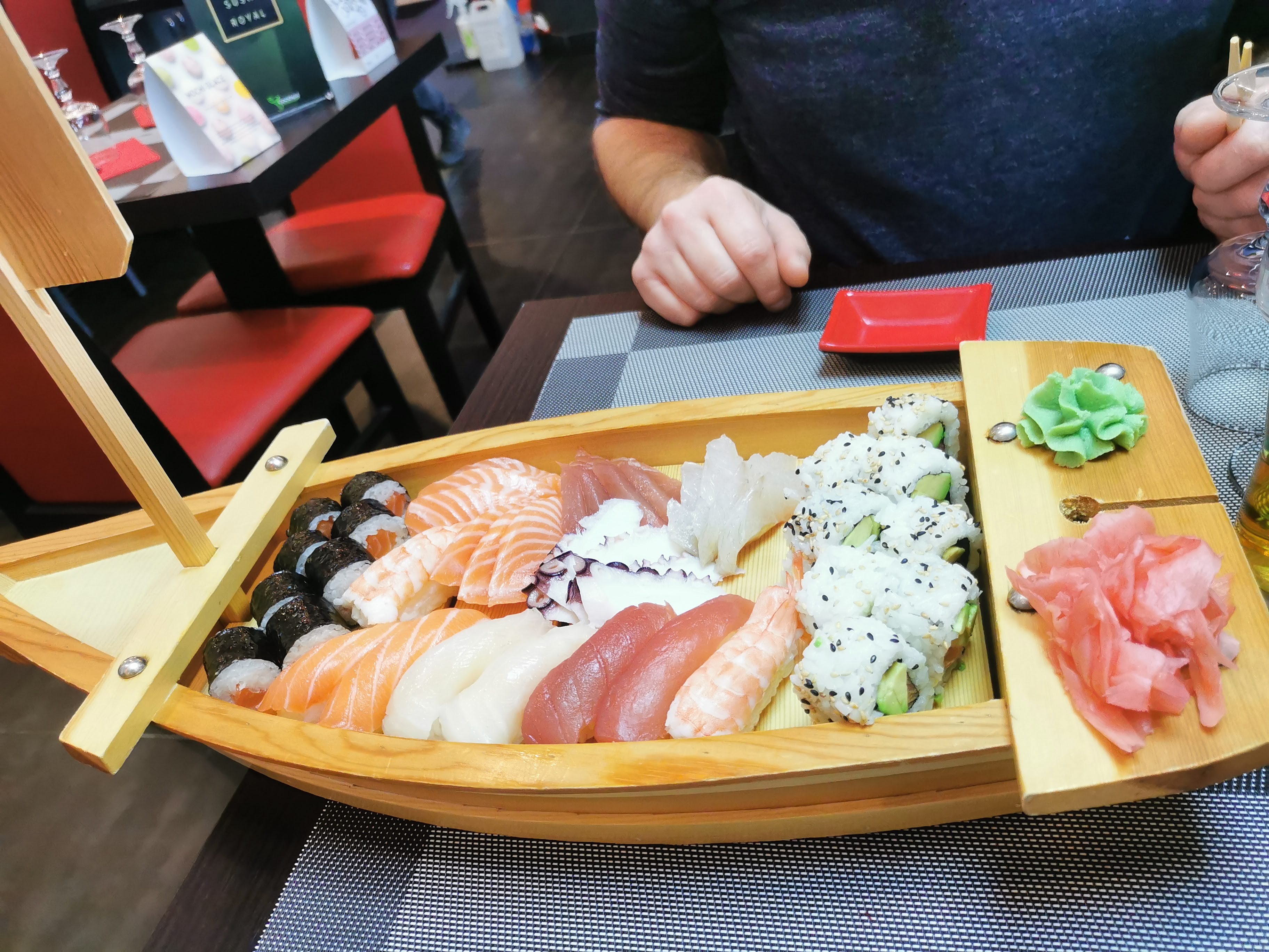 accueil correct, lieu assez chaleureux, choix énorme des menu, sushi maki etc. Poisson cru très frais, super sushi et sashimi, seul petit bémol c'est que j'avais commander un menu mixte et ils ont oublier mes brochettes qui sont arrivée 45 minutes plus tard mais bon ce restau vient juste d'ouvrir donc je suppose que ca sont des petit choses a régler. Je revient certainement