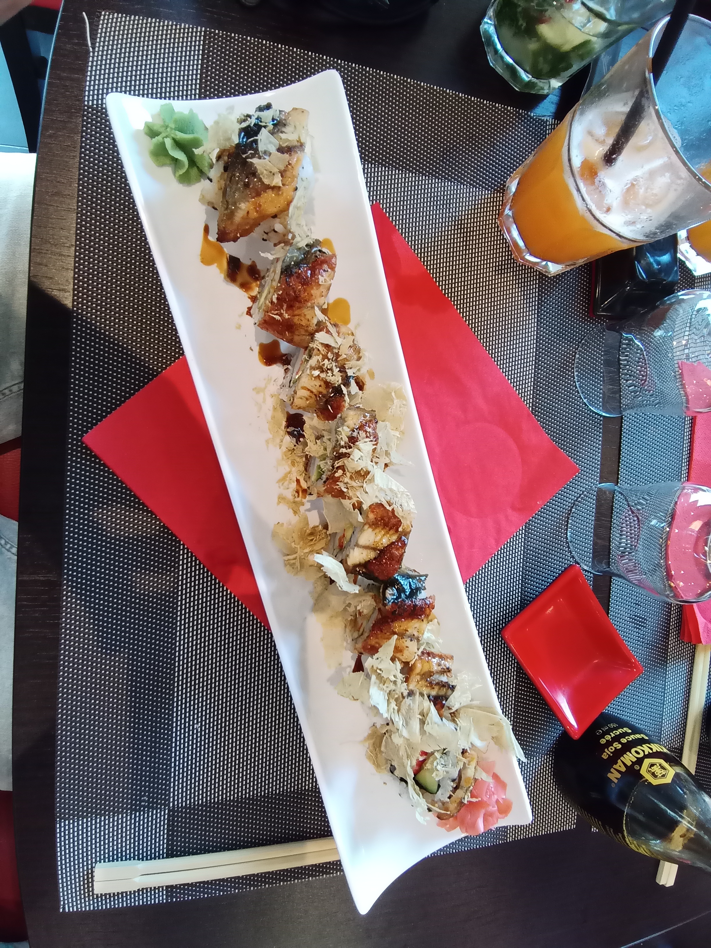 J'ai beaucoup aimé. La bouffe étais bonne mais je me suis pas renseigné et j'ai pris un grand coup de wasabi crient que c'était du guacamole. C'etais chaud 😂😂