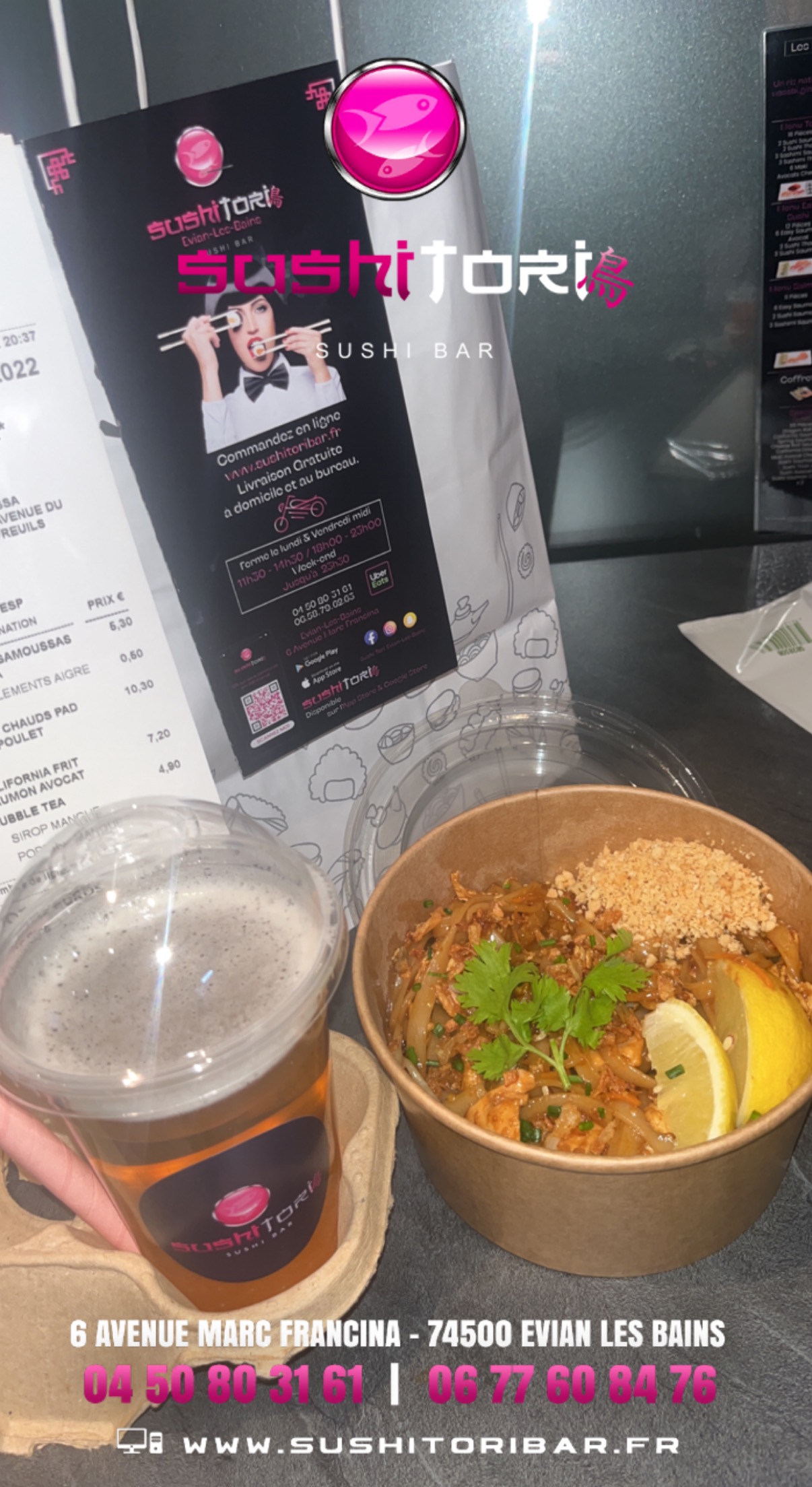Bonsoir, Pour infos nous avons eu aucune commande de sushi aujourd’hui. De plus aucune fille fait partis de l’équipe sushi tori evian. Êtes vous sûr d’avoir passée commande chez sushi tori evian les bains ?