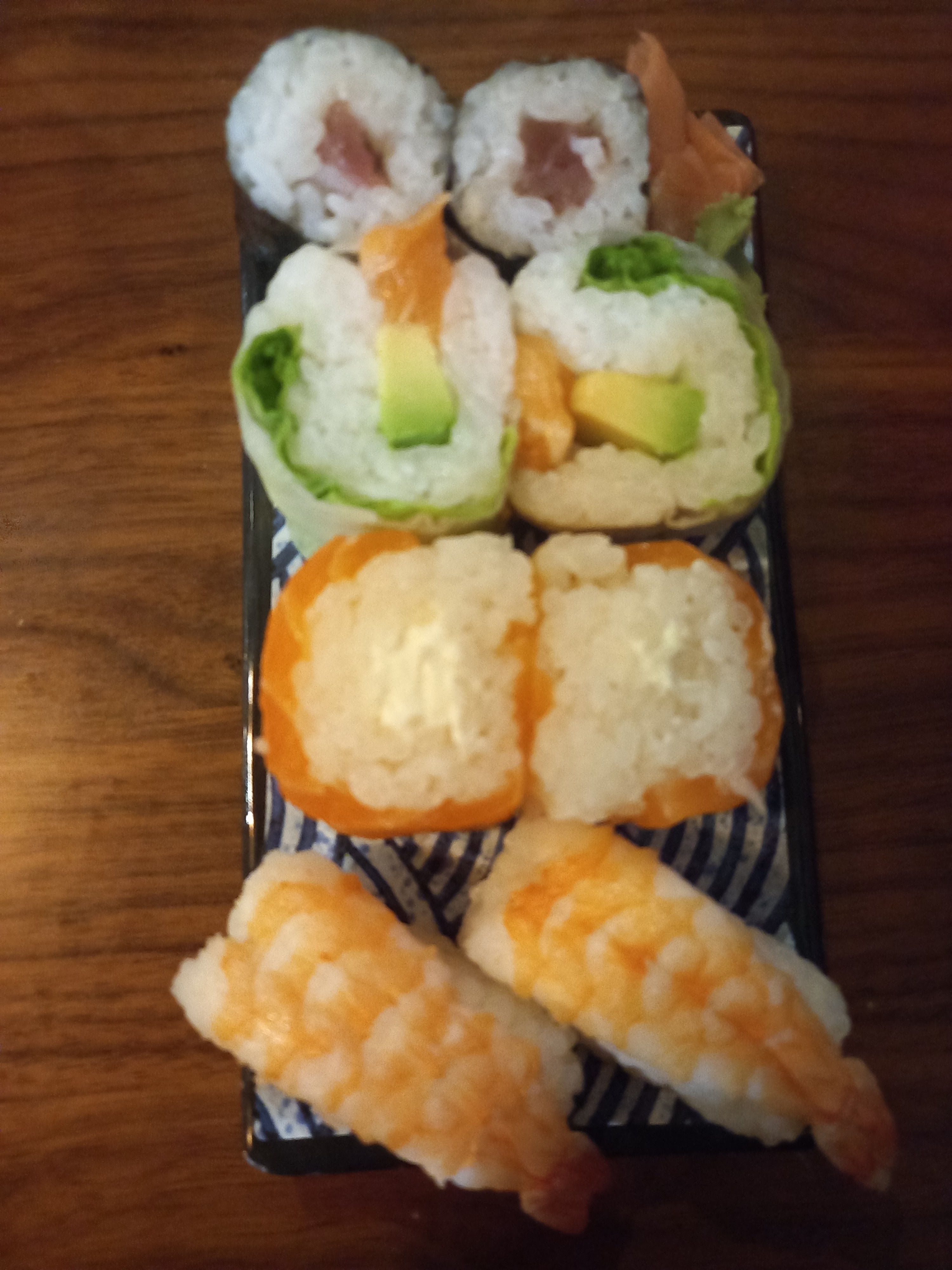 J'ai fait un click and collect, lorsque je suis venue pour récupérer ma commande elle n'était pas prête, j'ai du attendre quelques minutes, mais rien de trop long. Les sushis, les nems et la soupe étaient bonnes. Personnel agréable et accueillant.