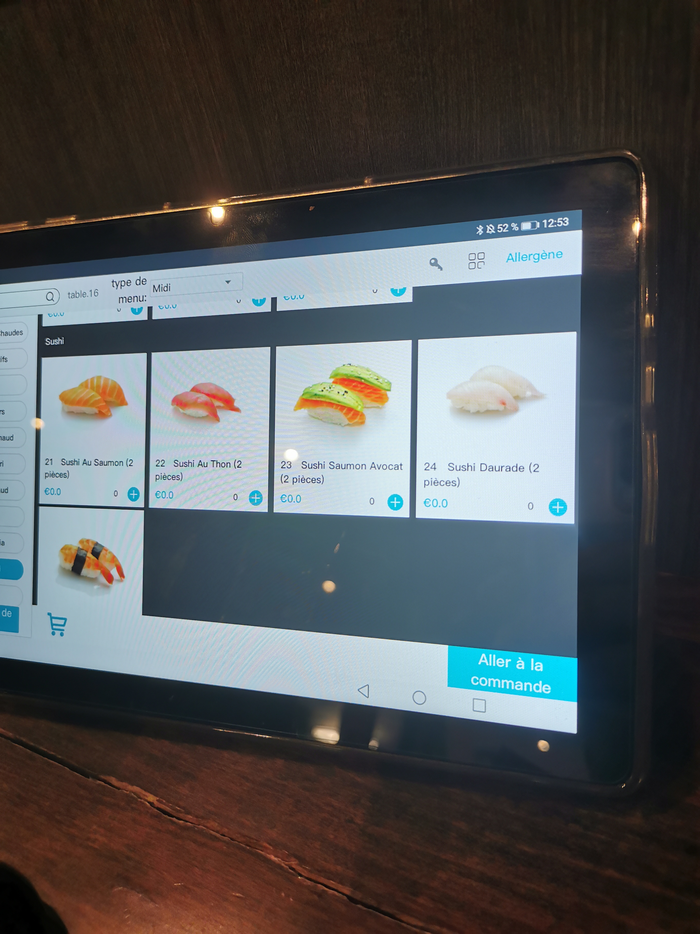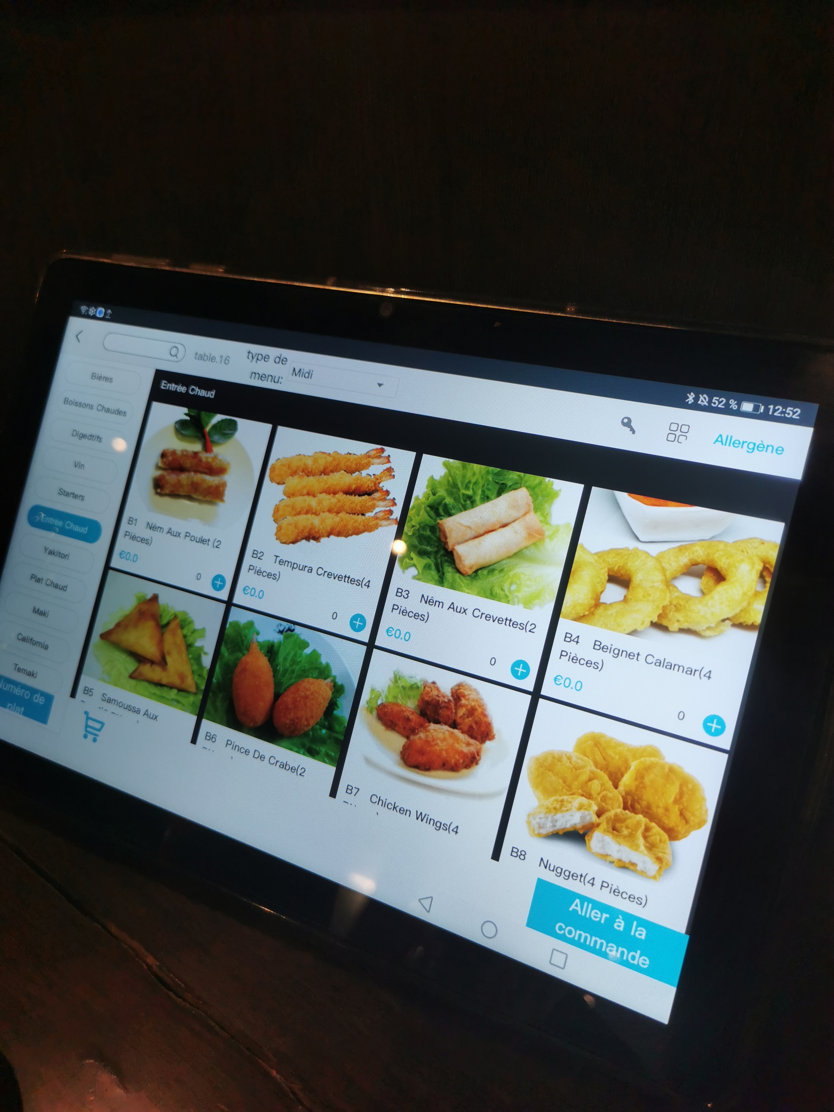 Menu et commande sur tablette. Service rapide et personnel sympa. Quelques petits réglages et améliorations sur la présentation de certains plats même si tout était très bon. Tarifs correctes, à juger par vous même.
