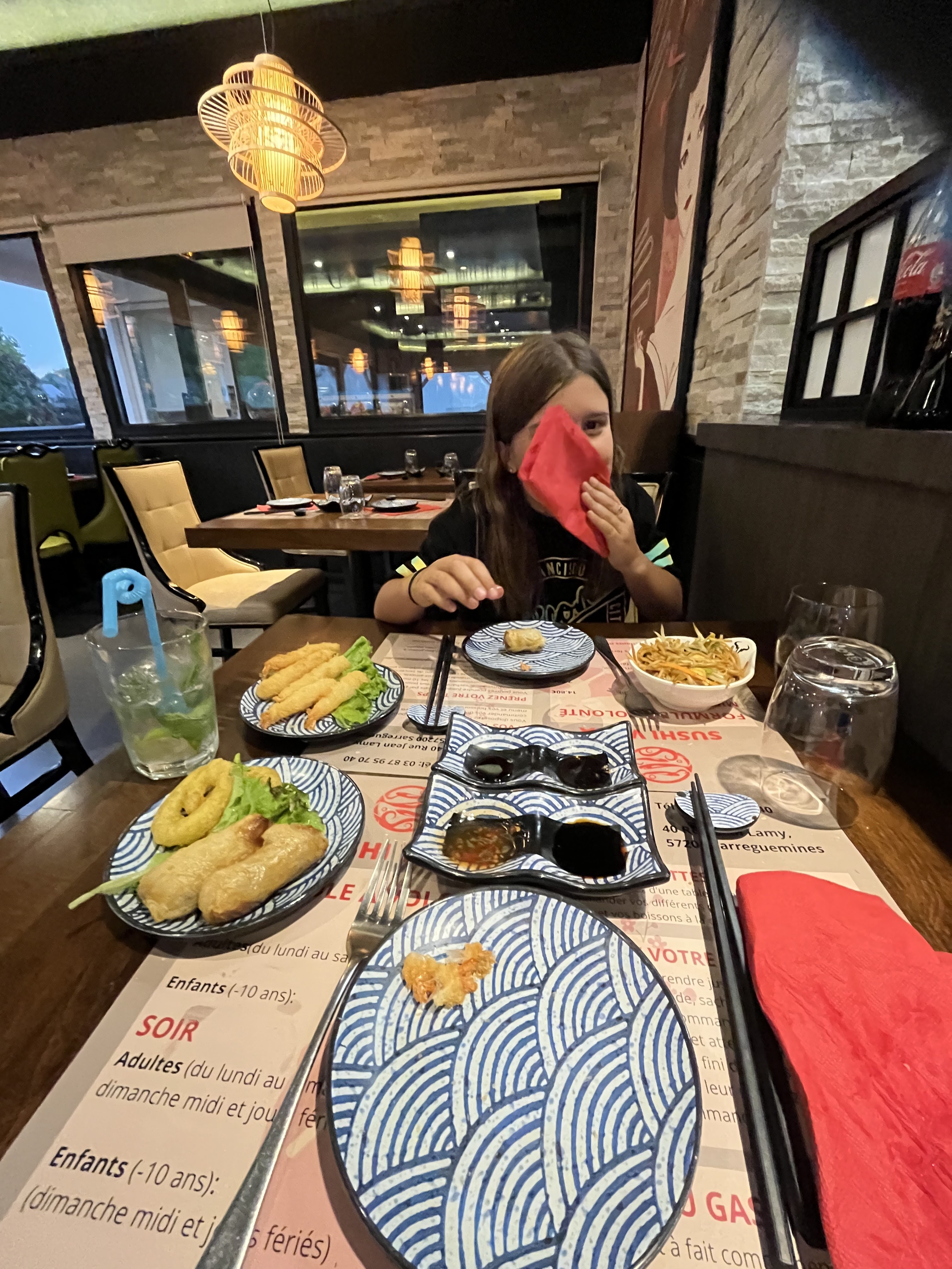 Les serveurs se donnent du mal pour aller vite et faire bien. J’ai trouvé la nourriture sans plus. Les desserts industriels et le reste aussi. Riz sushi trop cuit, dommage. Le lieu est bondé et bruyant donc si vous cherchez une ambiance plus intimiste ce ne sera pas trop pour vous. Bon point: les chèques vacances sont acceptés.