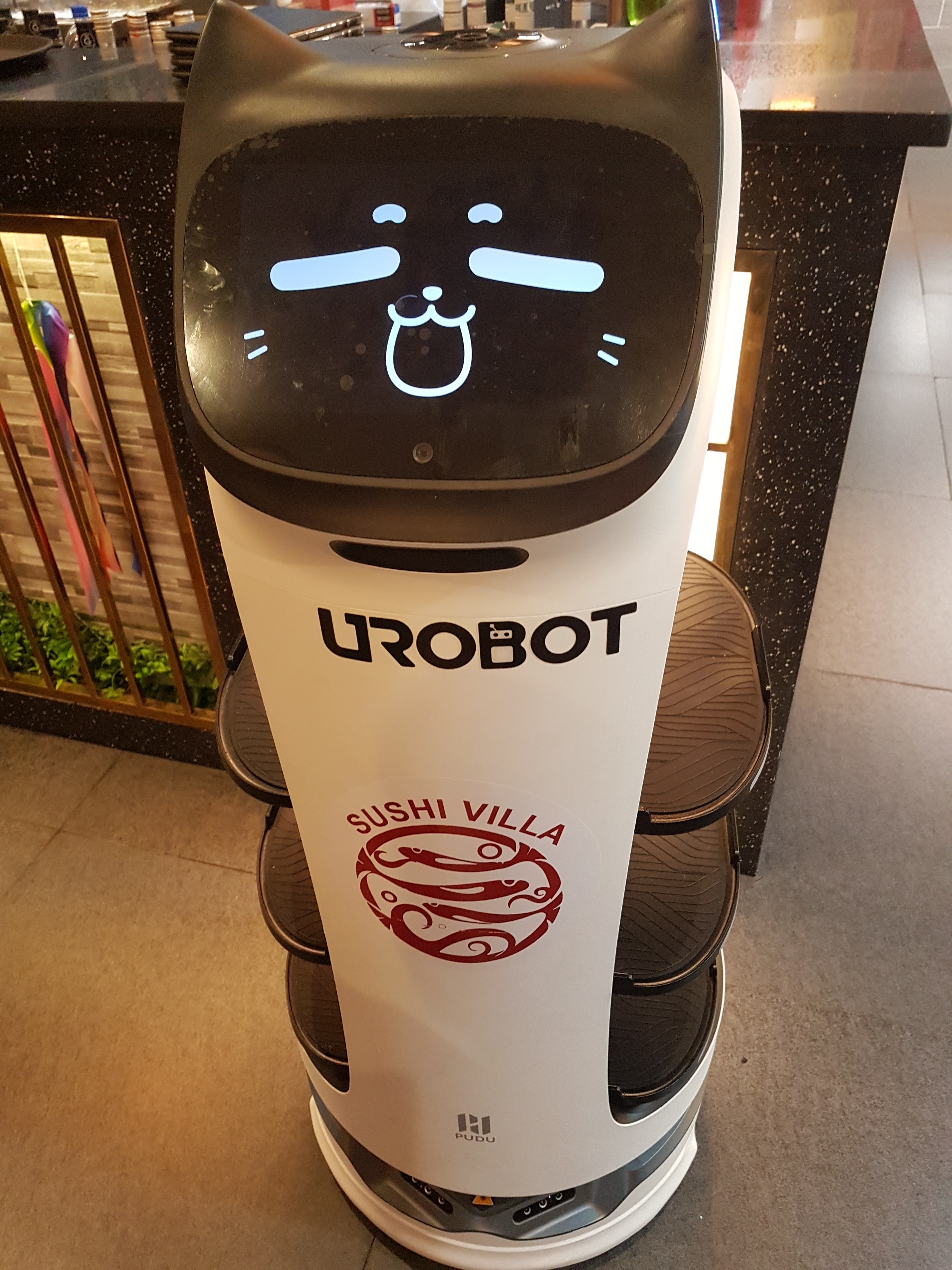 Restaurant japonais, très correct, la cuisine est bonne, il y a un ou deux robot qui vous amène les boissons et les plats si vous n'êtes pas trop nombreux. Nous étions huit, il nous a amené les apéros, le reste nous à été servi. Vous commandez les plats(belles variétés)sur une tablette et on vient vous servir, c'est à volonté, vous pouvez commander 5 plats par personne toutes les 10 minutes. Les prix sont très correct. À midi ce samedi, nous avons payé 18,50€ par personne hors boissons. Personnellement, Cette façon de servir, me paraît plus hygiénique que le buffet ou vous vous servez et où tout le monde touche les ustensiles pour se servir.