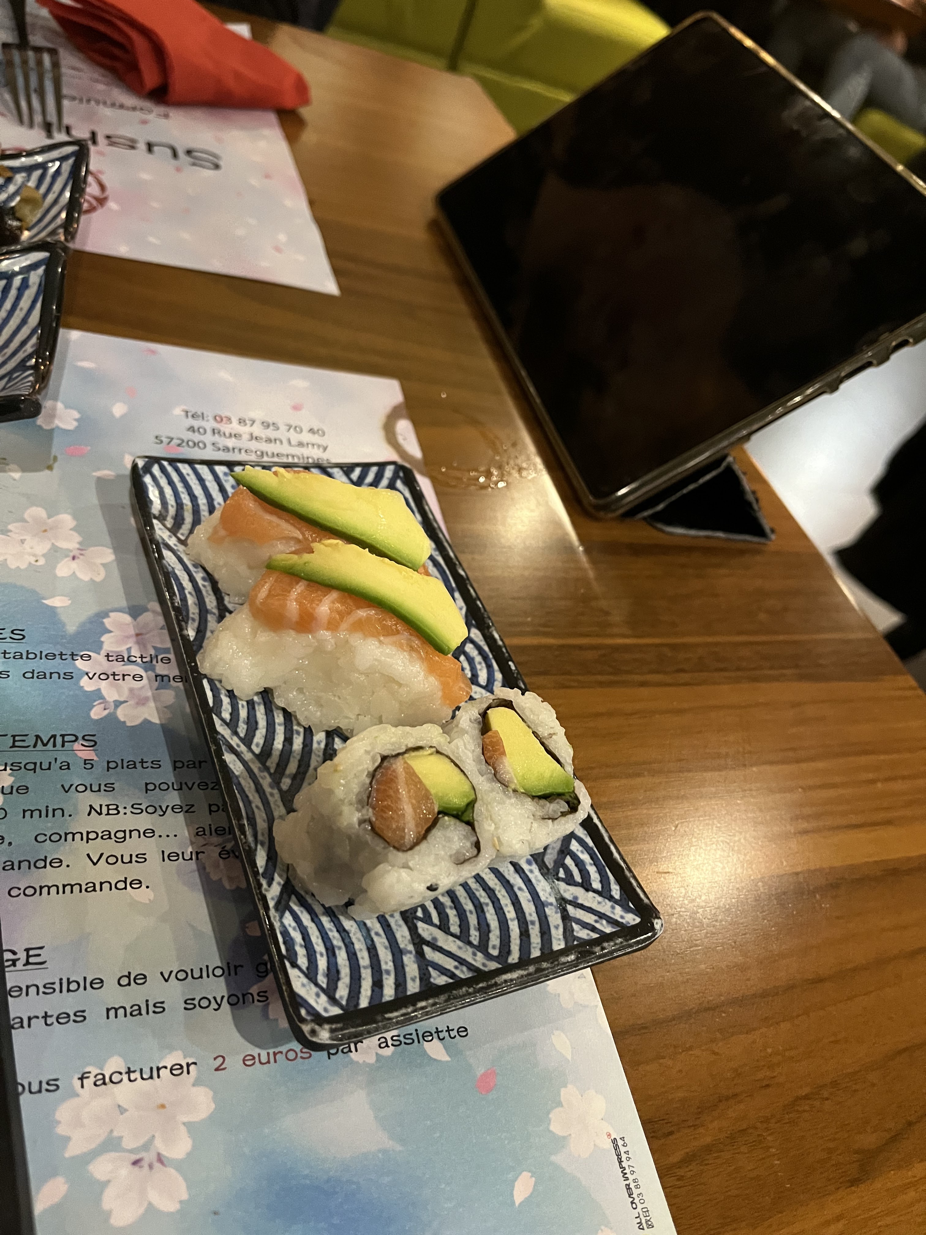 Venu un midi entre collègues pour découvrir , nous avons tous était agréablement surpris ! La carte comprise dans la formule est garnis . La tablette est un vrai atout ! Vous pouvez passer un agréable moment à table sans avoir à vous levez toutes les 10 minutes ! La solution anti gaspillage (5 plats/personne) est efficace mais à mon goût un peu contraignante pour des grandes tables 😉. Étant un gros mangeur de sushi Maki etc , j’en ai eu pour mon argent les pièces sont plus que correct et bien fraîche ! Pour moi il n’y a pas débat en terme de « buffet à volonté » c’est le plus interessant sur Sarreguemines . Je vous souhaite un bonne continuation, en espérant qu’il n’est pas là même sort que les restaurants précédemment installés dans ce local 💪