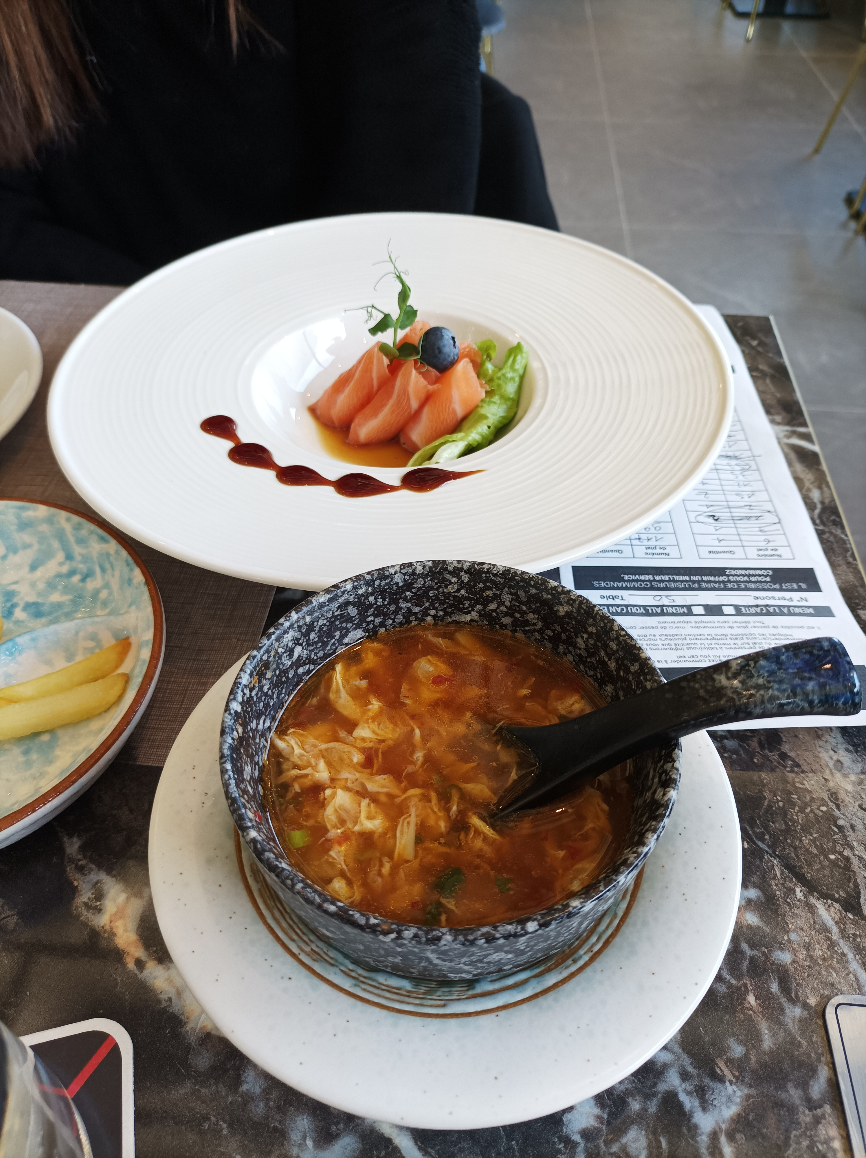Très belle espace. La nourriture est super bonne on sélectionne les plats à table et on est servi à table 😍 il ne reste plus qu'à se laisser choyé.