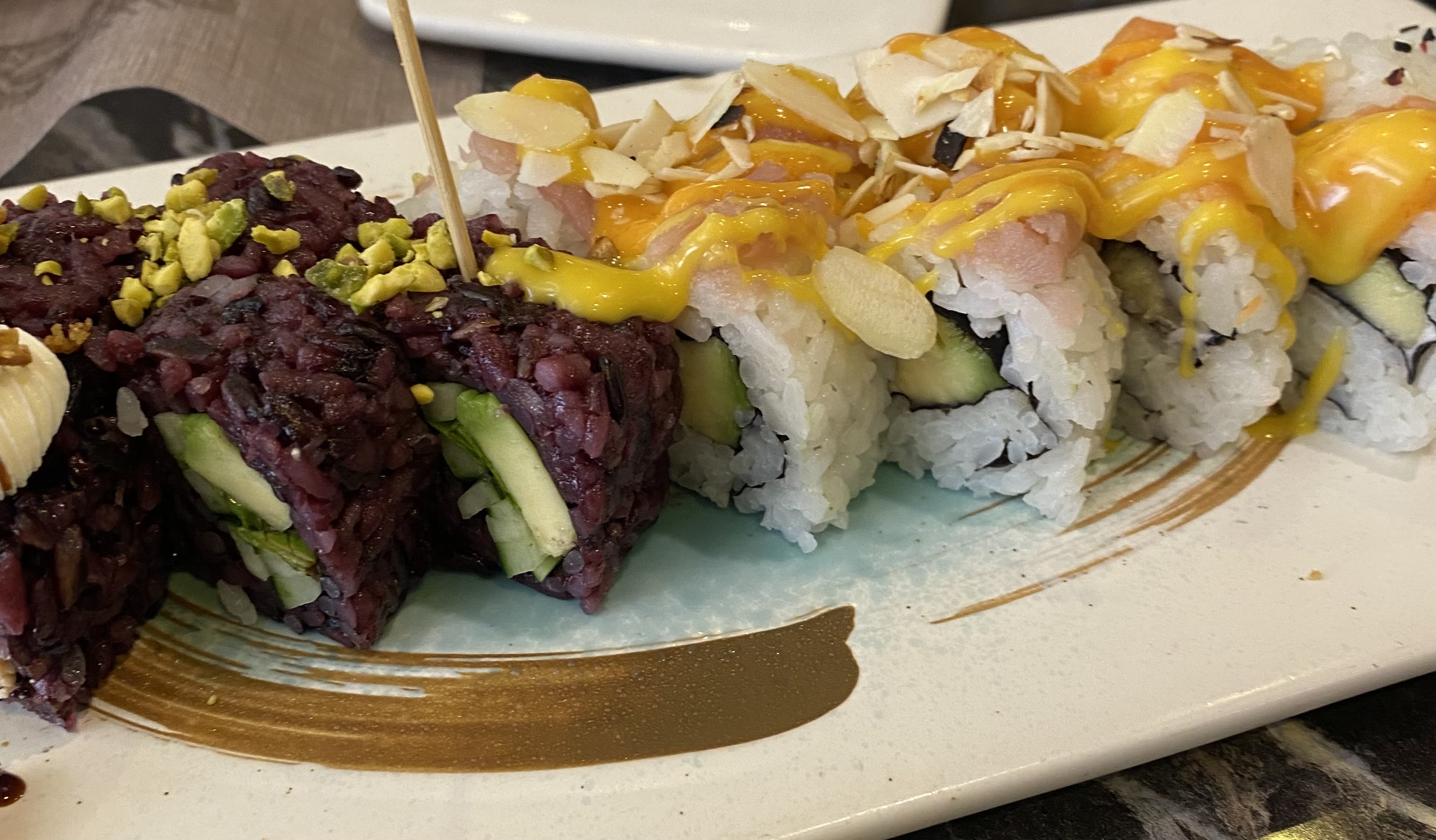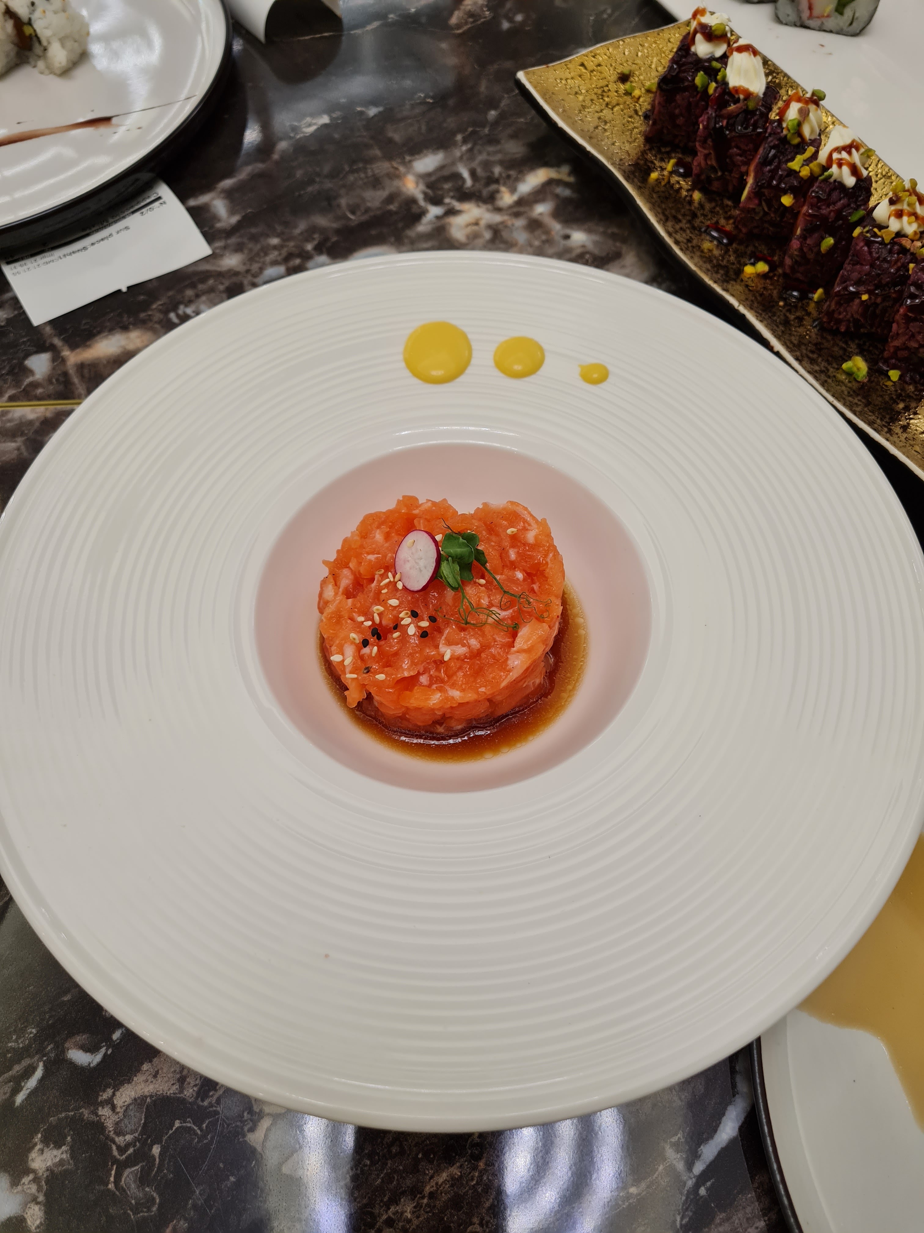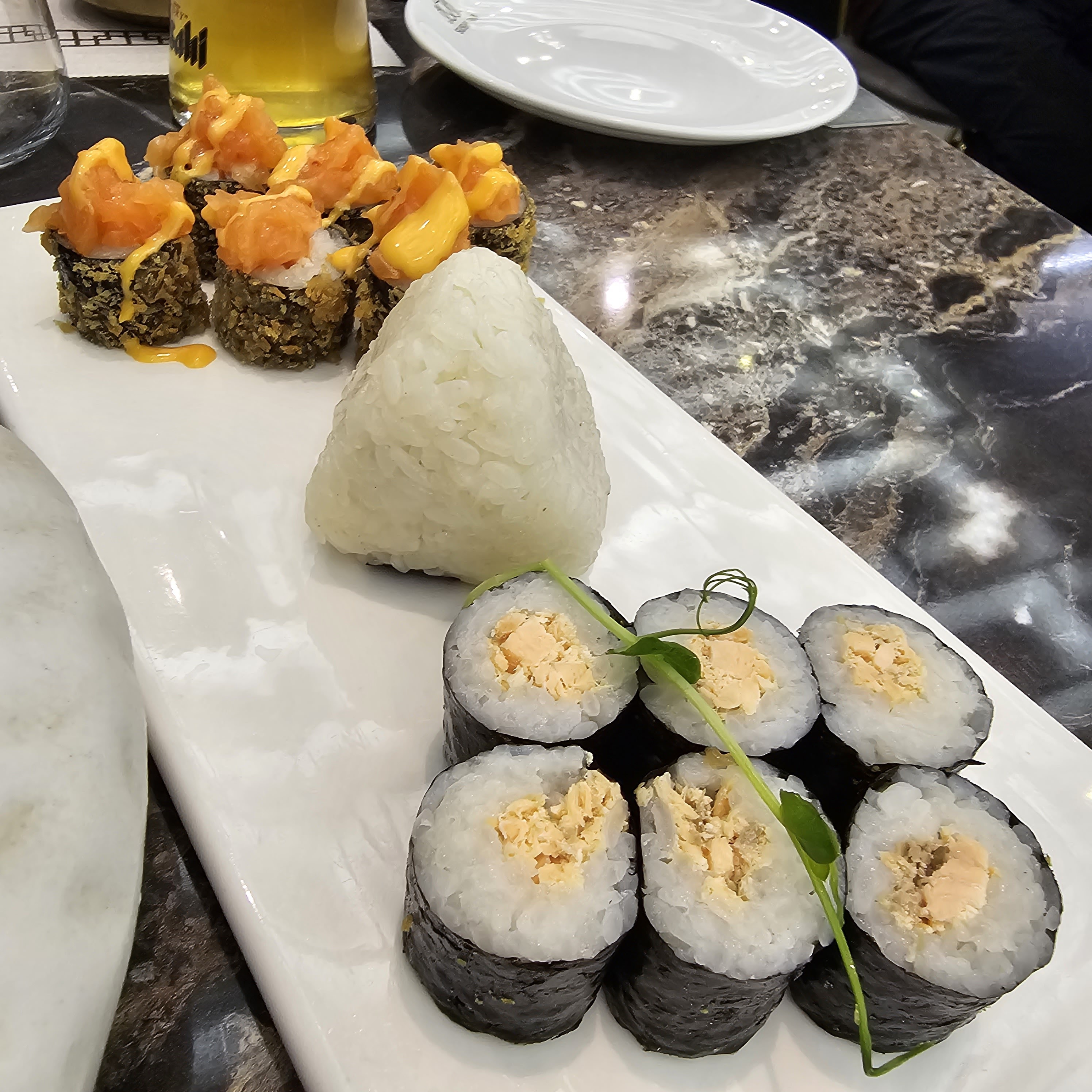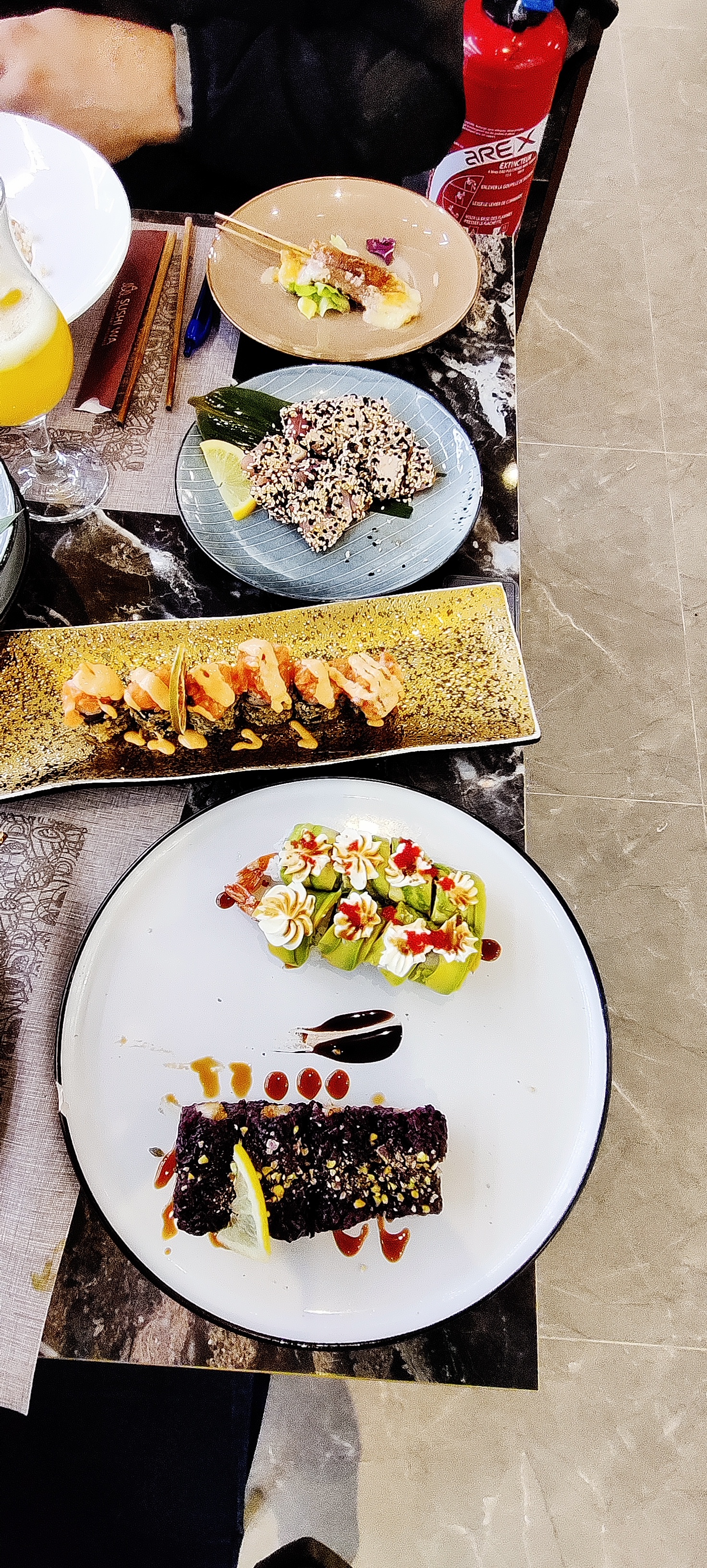 Superbe établissement !! Tout d'abord avec la décoration et son agencement. Une variété de tables permet de venir seul ou en grand groupe autour de tables ronde. Ensuite (et l'essentiel pour un restaurant) les produits, la variété est admirable avec une centaine de plats proposés et de qualité avec de la fraicheur produit. Le personnel est très agréable et le service efficace. Je vous recommande vivement cet établissement. En photo mon coup de cœur des sushis avec de la mangue.