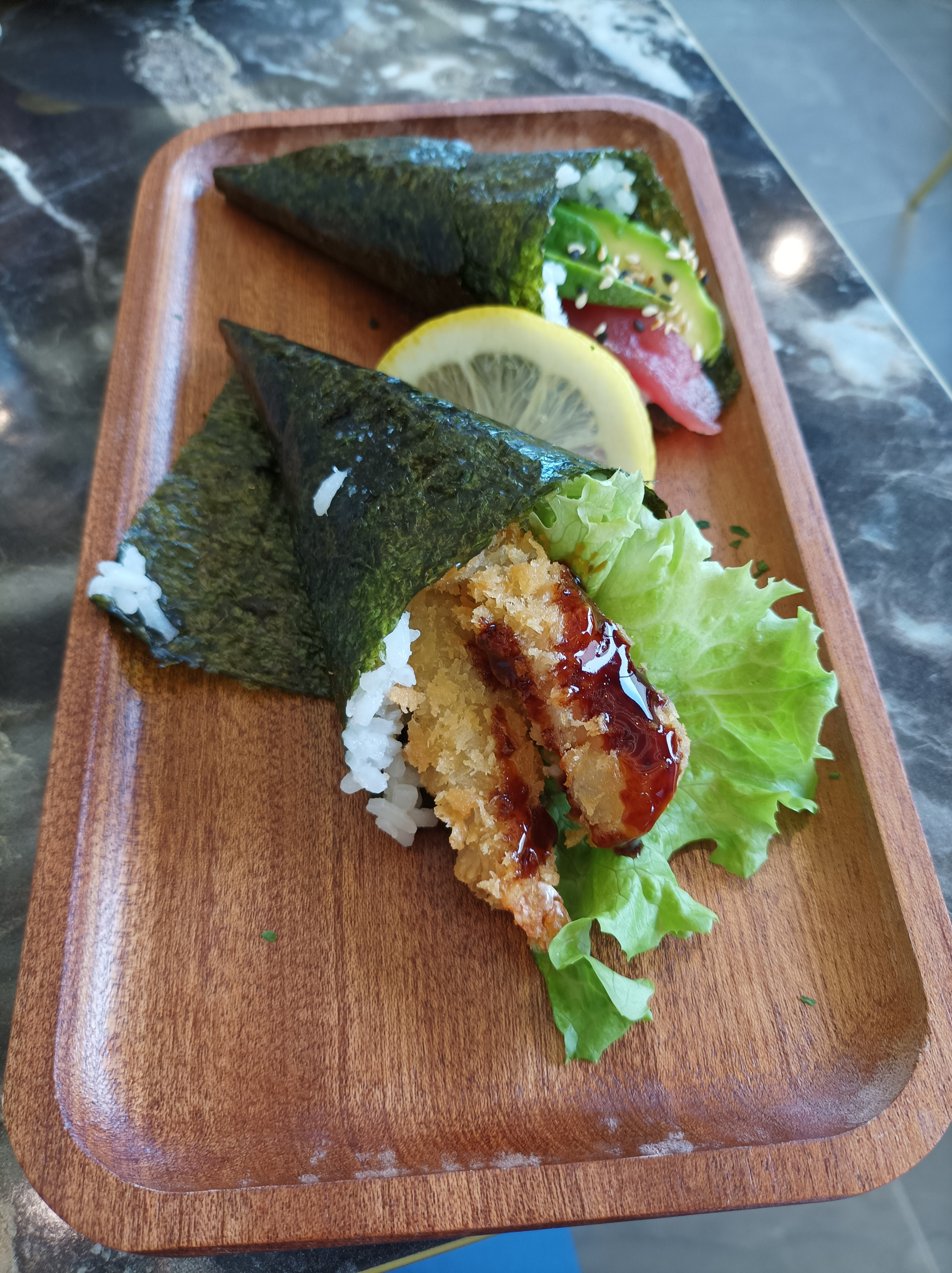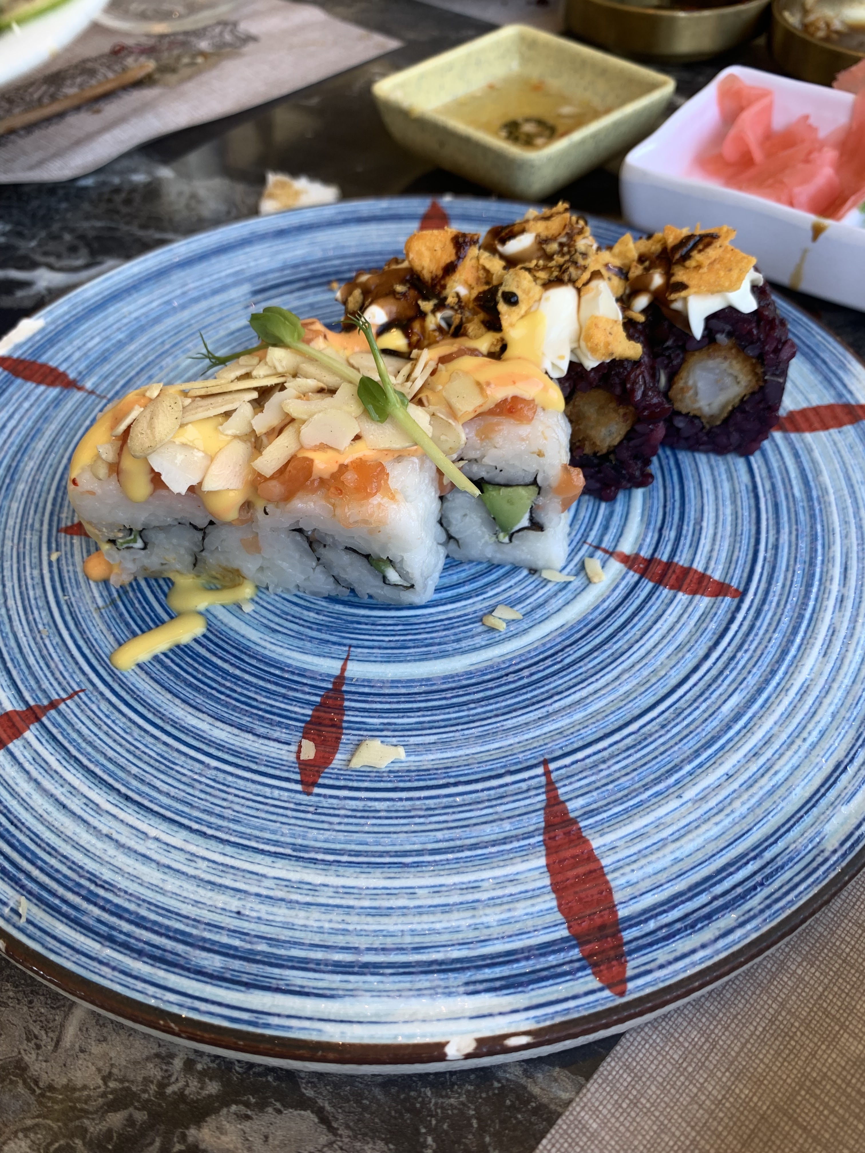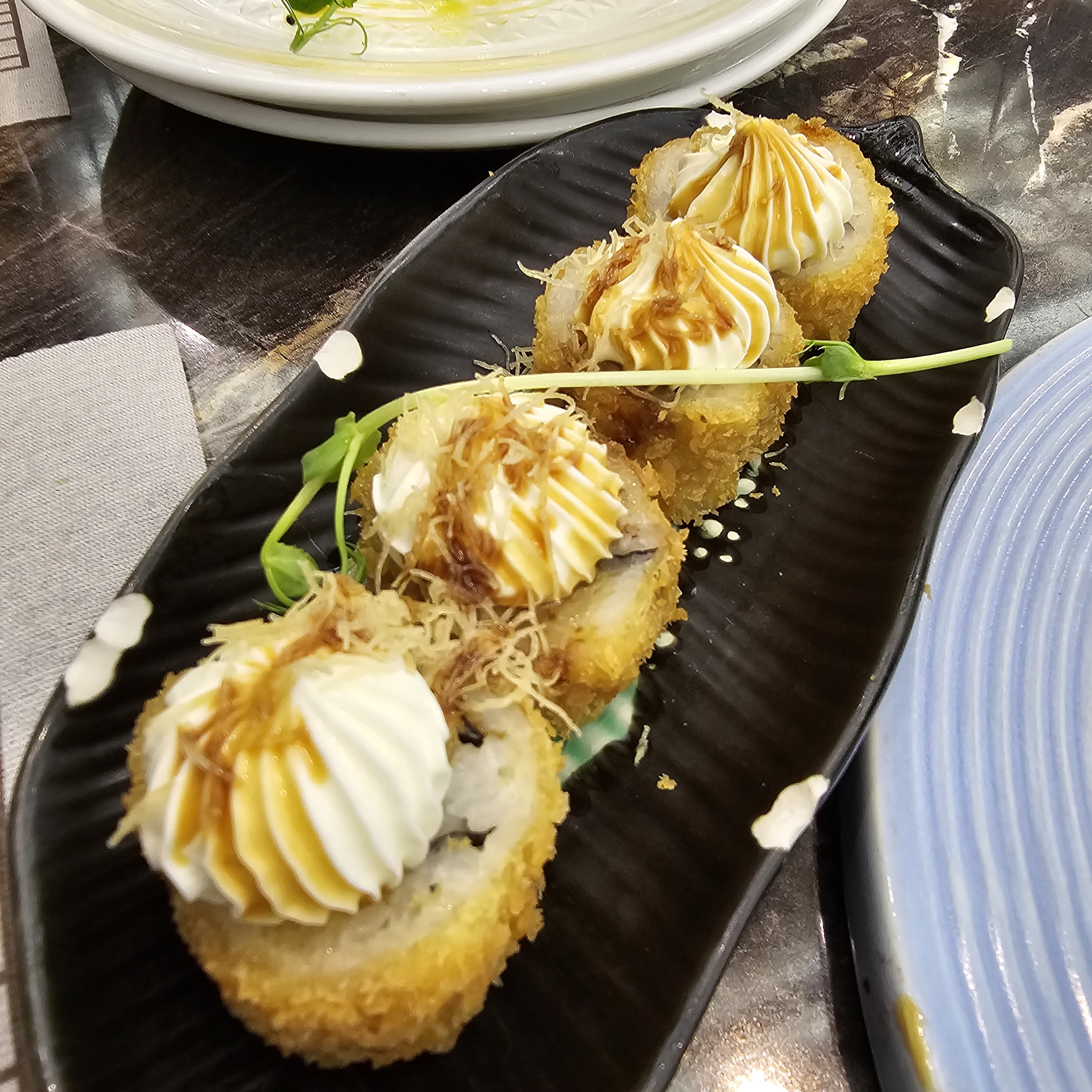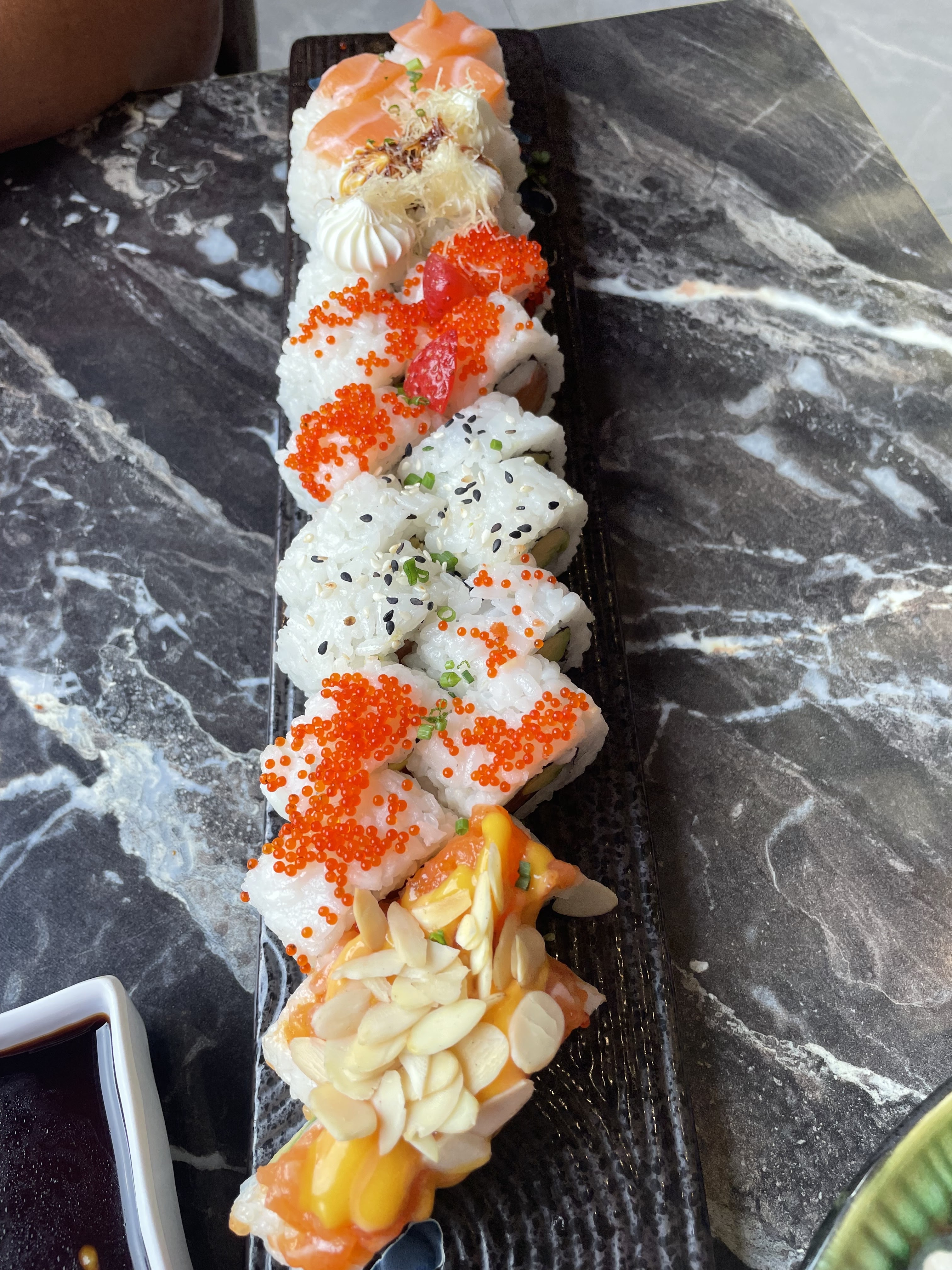 Superbe établissement !! Tout d'abord avec la décoration et son agencement. Une variété de tables permet de venir seul ou en grand groupe autour de tables ronde. Ensuite (et l'essentiel pour un restaurant) les produits, la variété est admirable avec une centaine de plats proposés et de qualité avec de la fraicheur produit. Le personnel est très agréable et le service efficace. Je vous recommande vivement cet établissement. En photo mon coup de cœur des sushis avec de la mangue.