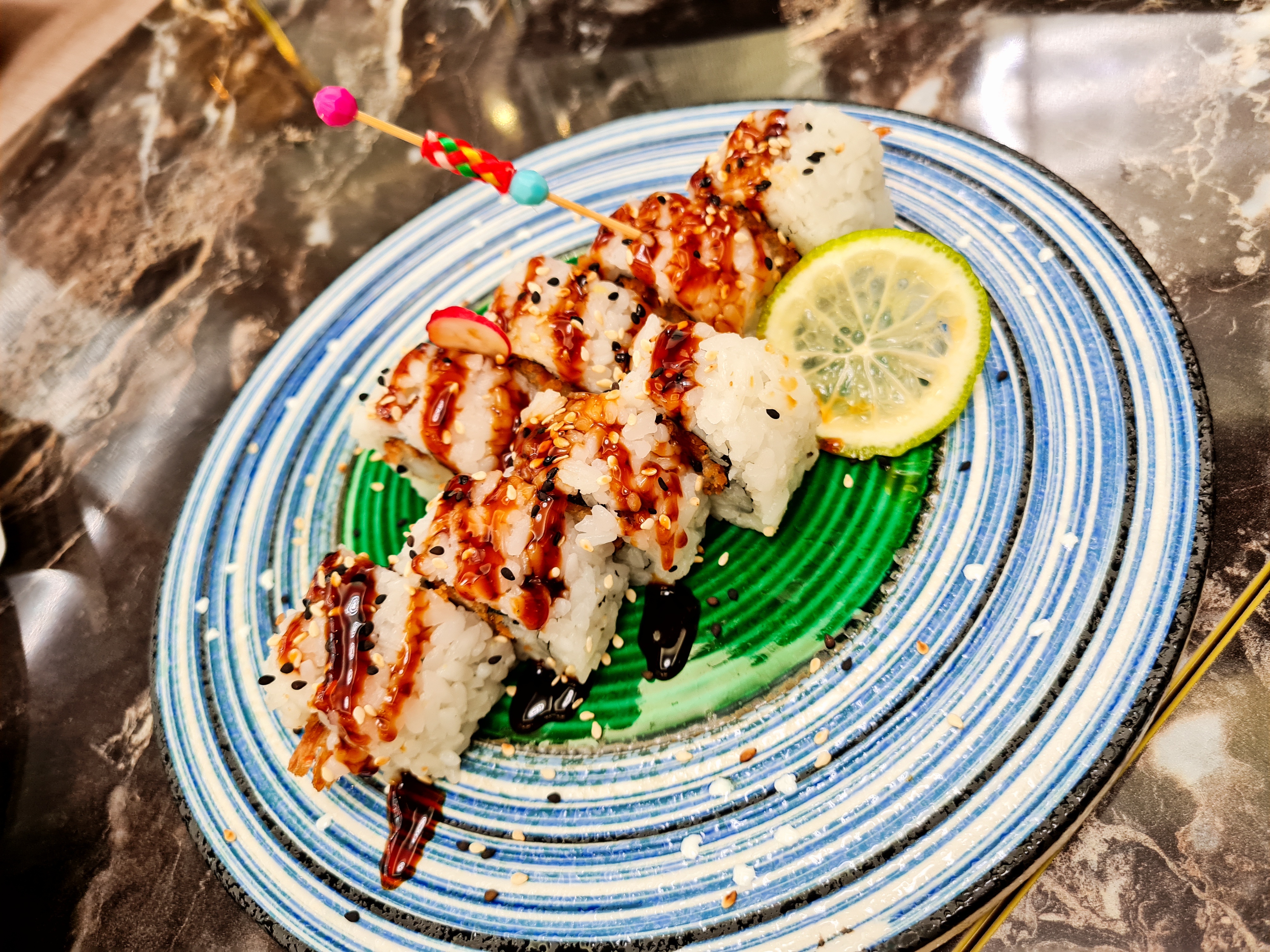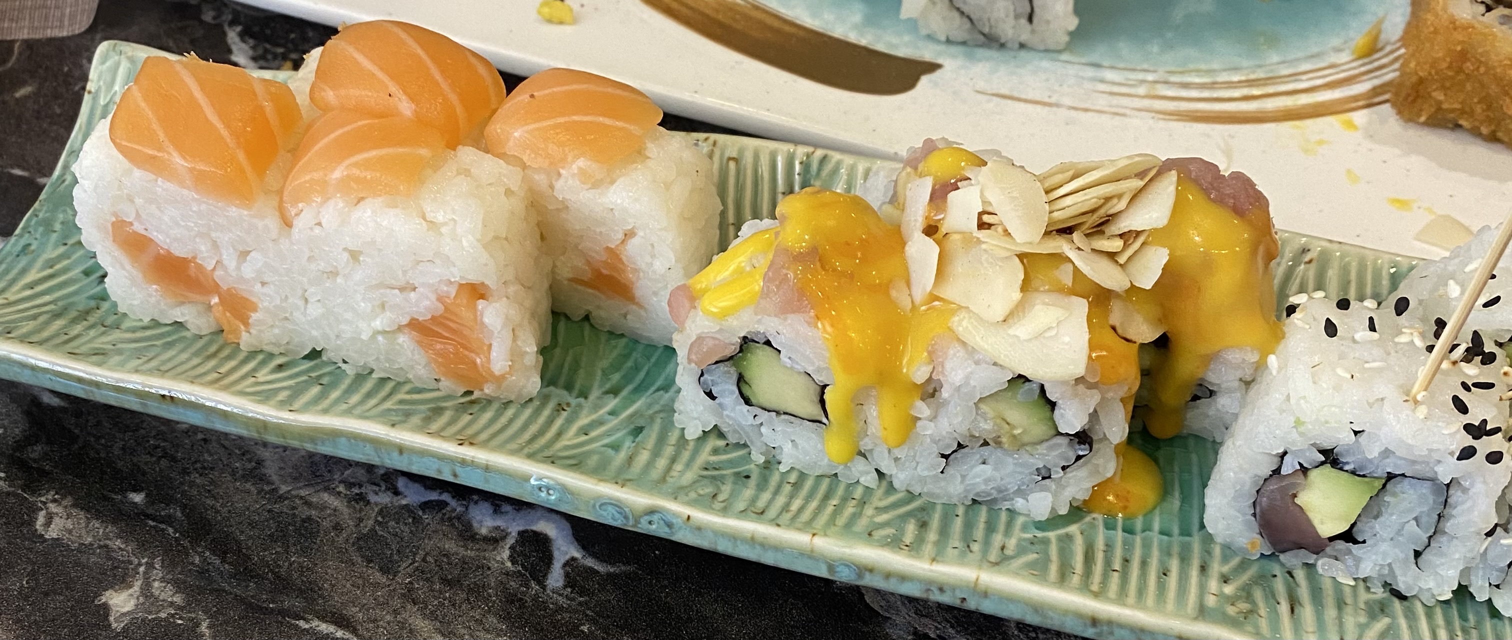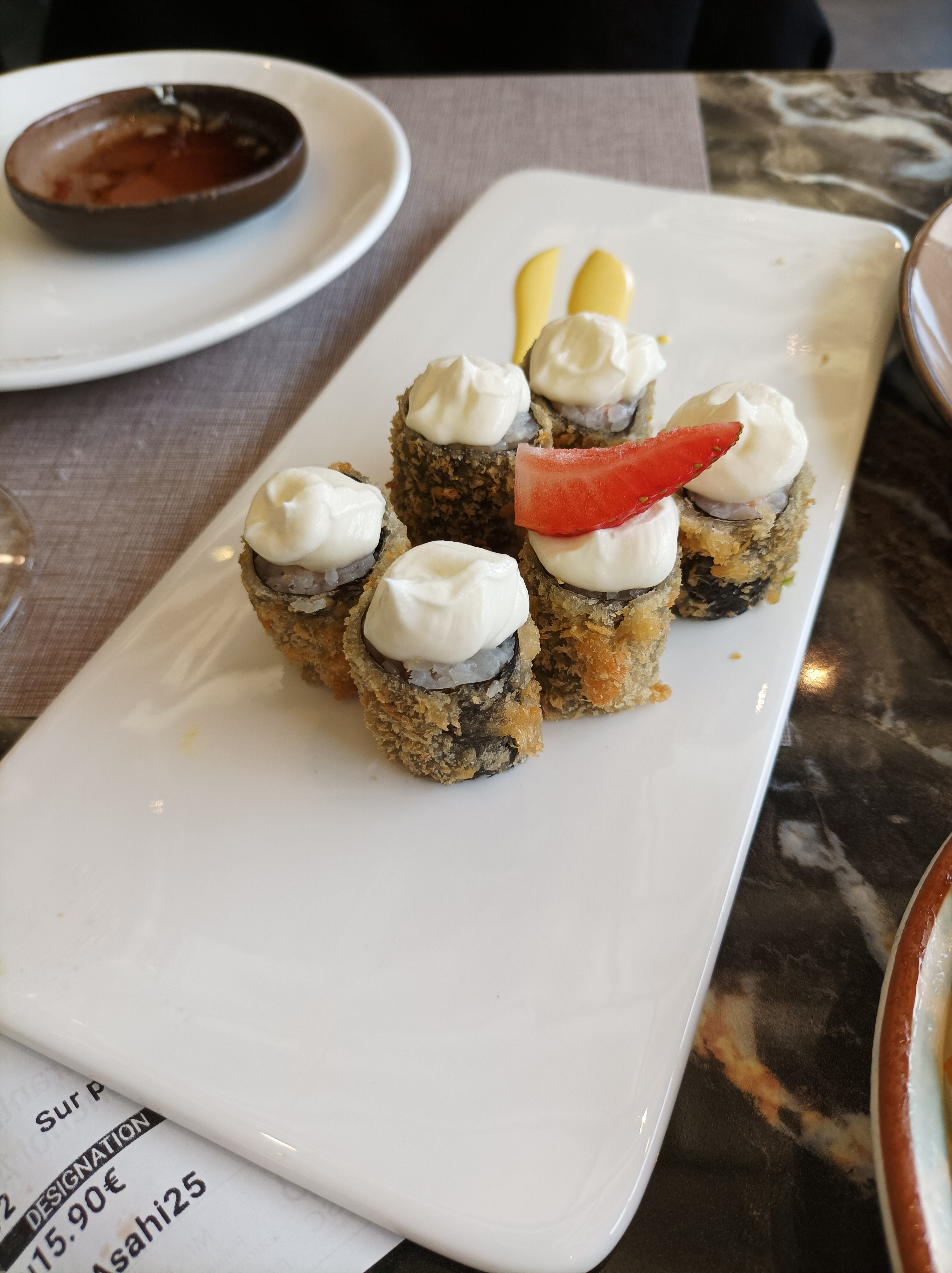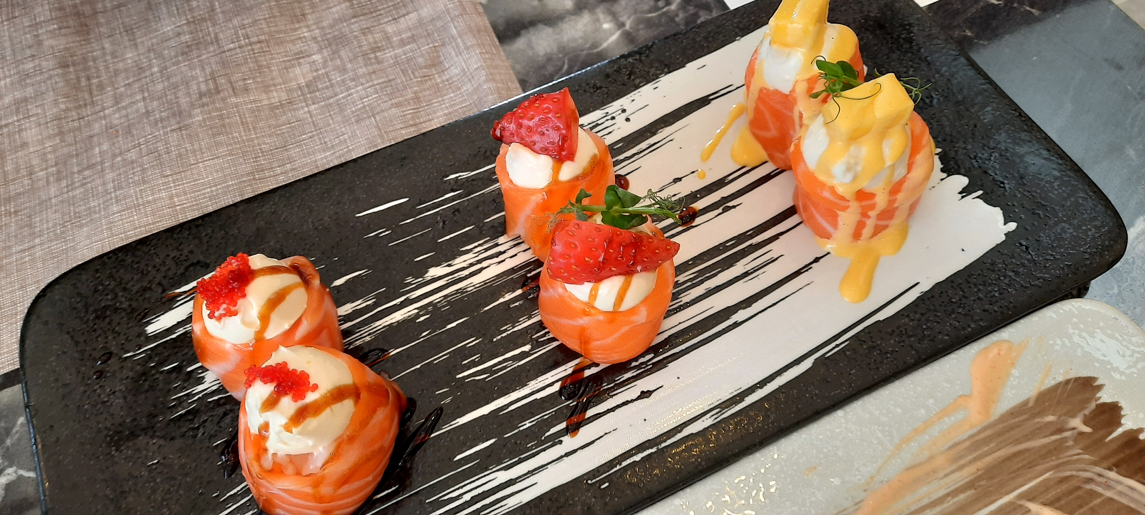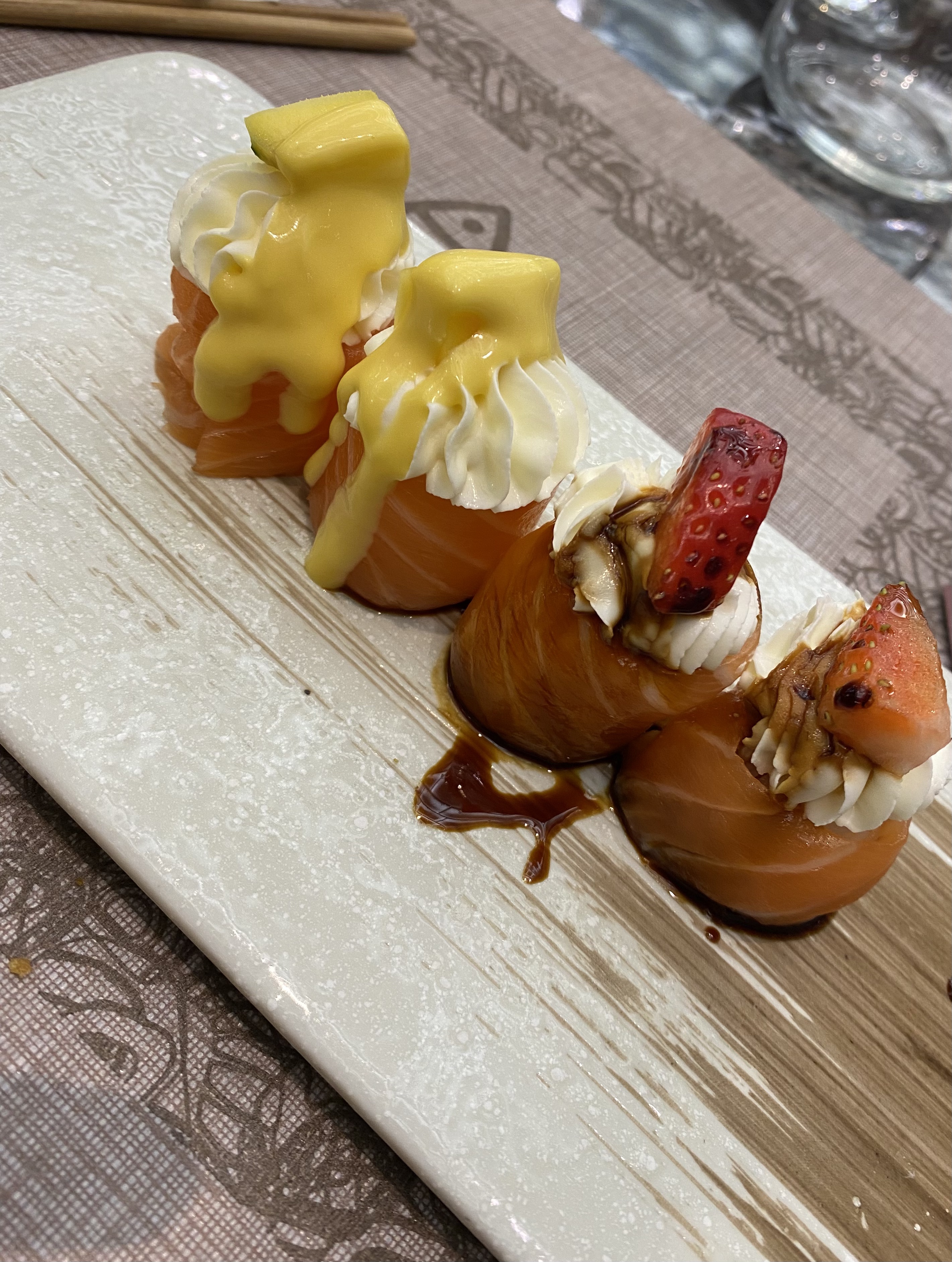 Physalis de décoration pourri, recettes qui changent selon le chef, sushi noyés sous la sauce cheesy pour donner du style et tarifs a la limite du vol: Fuyez