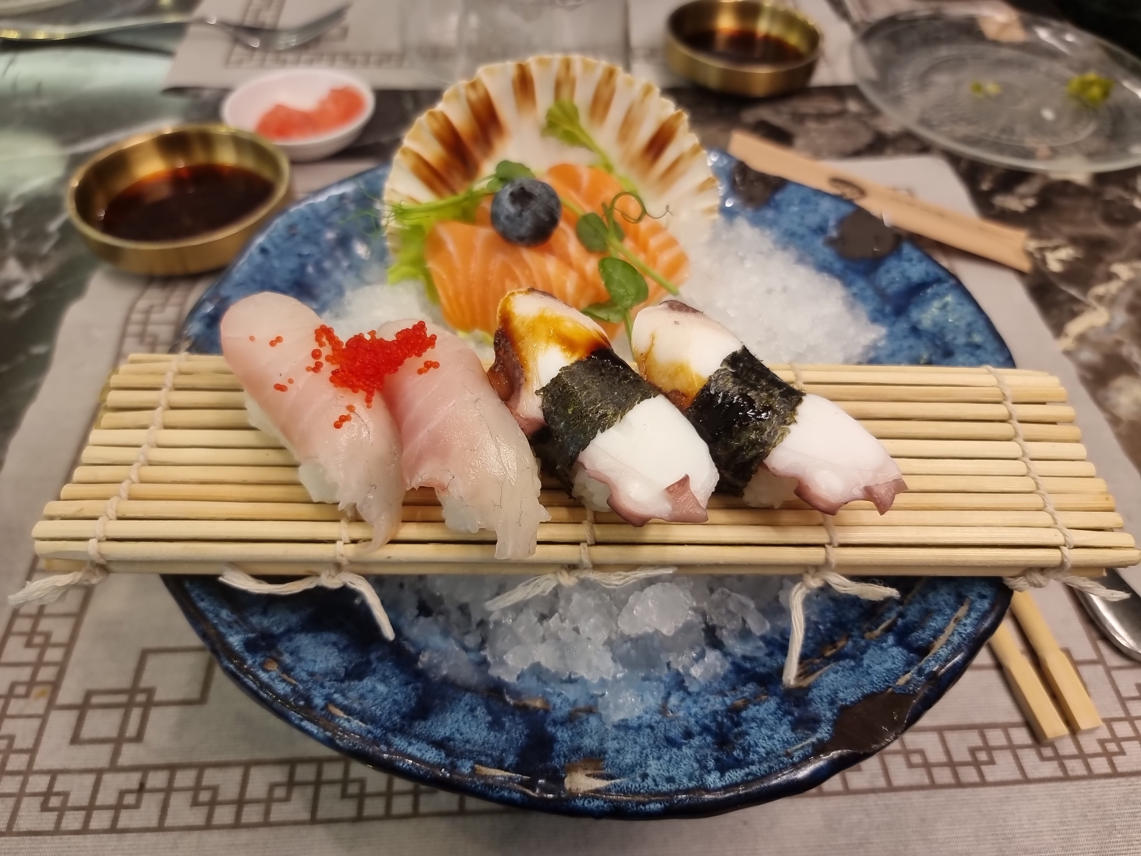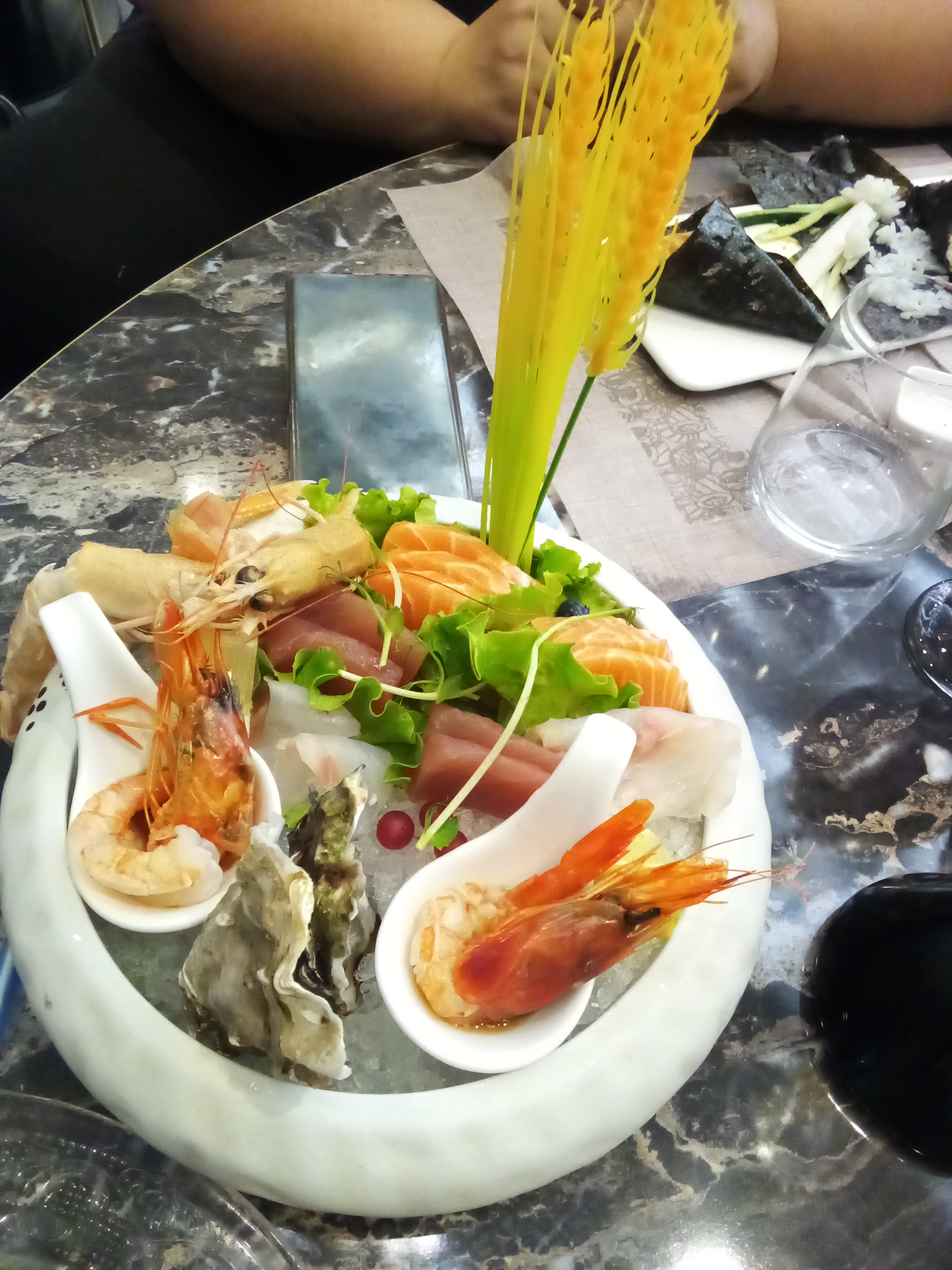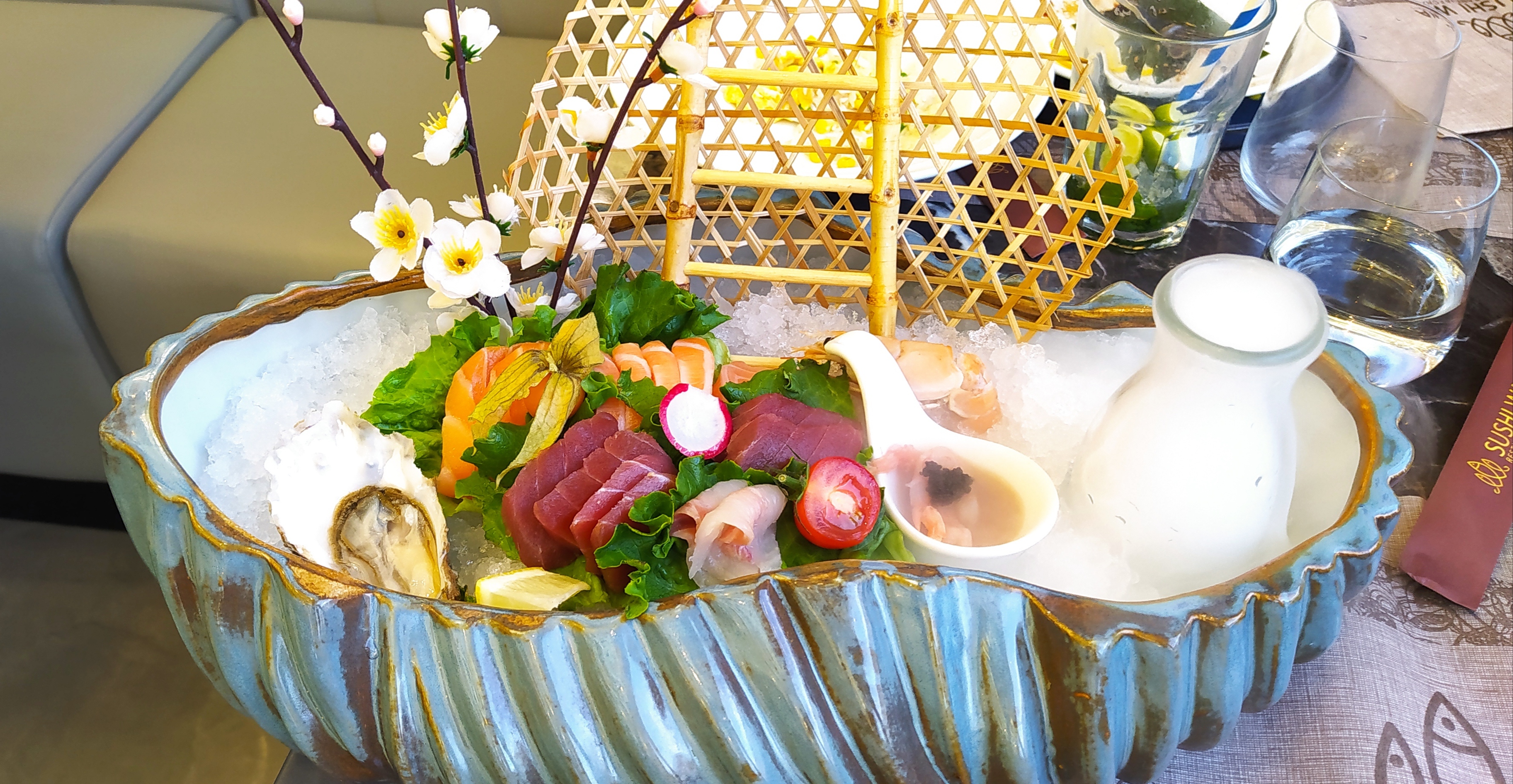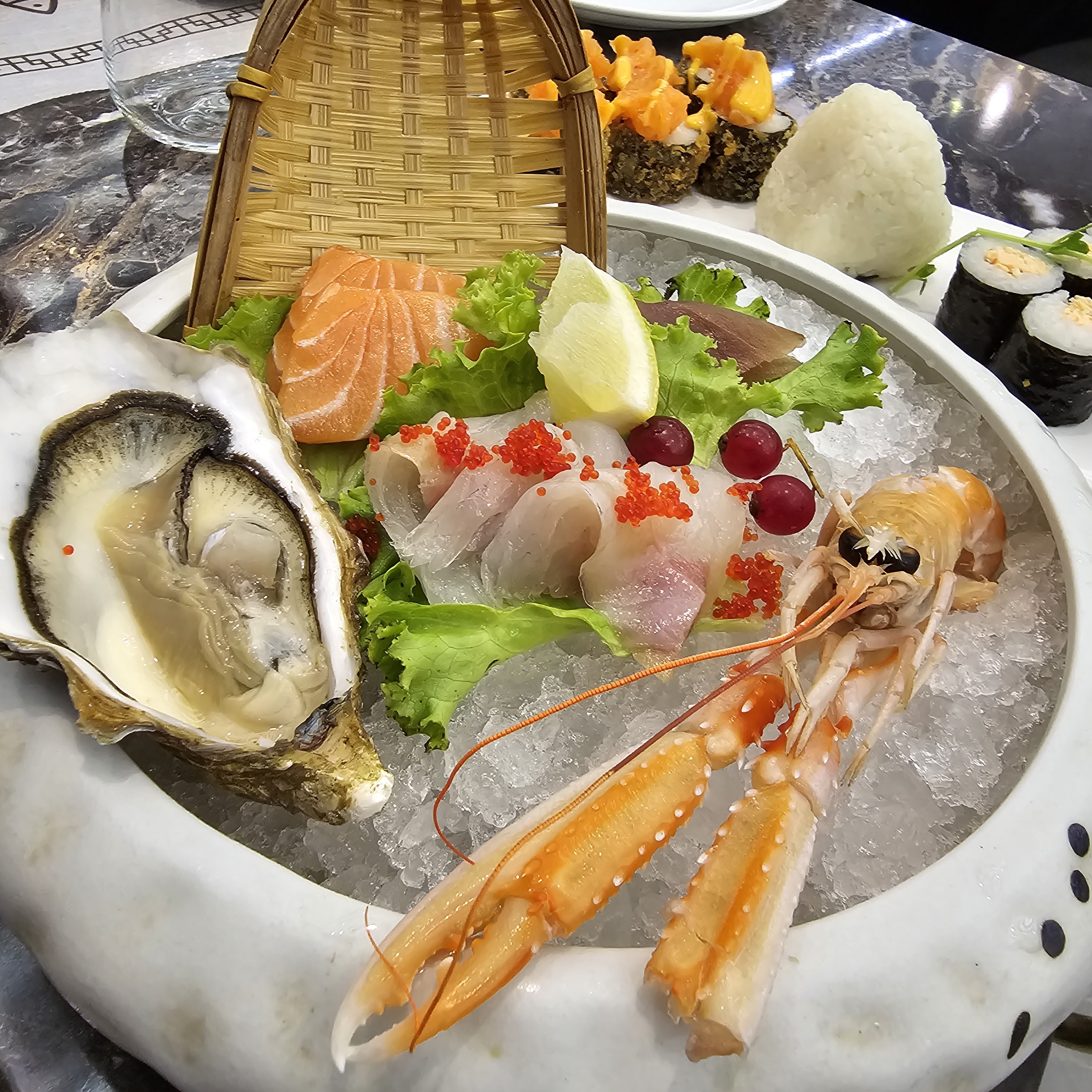 Éclaté. Les entrées chaudes arrivent froide, elle ne sont probablement pas assez décongelées. Le goût des sushis instagram est vraiment pas bon. Les chips aux crevettes sortent tout droit du placard de mamie de Noël dernier. Tel Christophe Colomb en quête d'aventure j'ai testé le carpacciao de bœuf, quel ne fût pas ma surprise quand une tranche de bœuf séché avec un sauce mangue est arrivé. PS c'était pas si terrible mais on ne peut pas appeler ça un carpaccio. Je n'ai pas osé aller plus loin dans l'expérience...