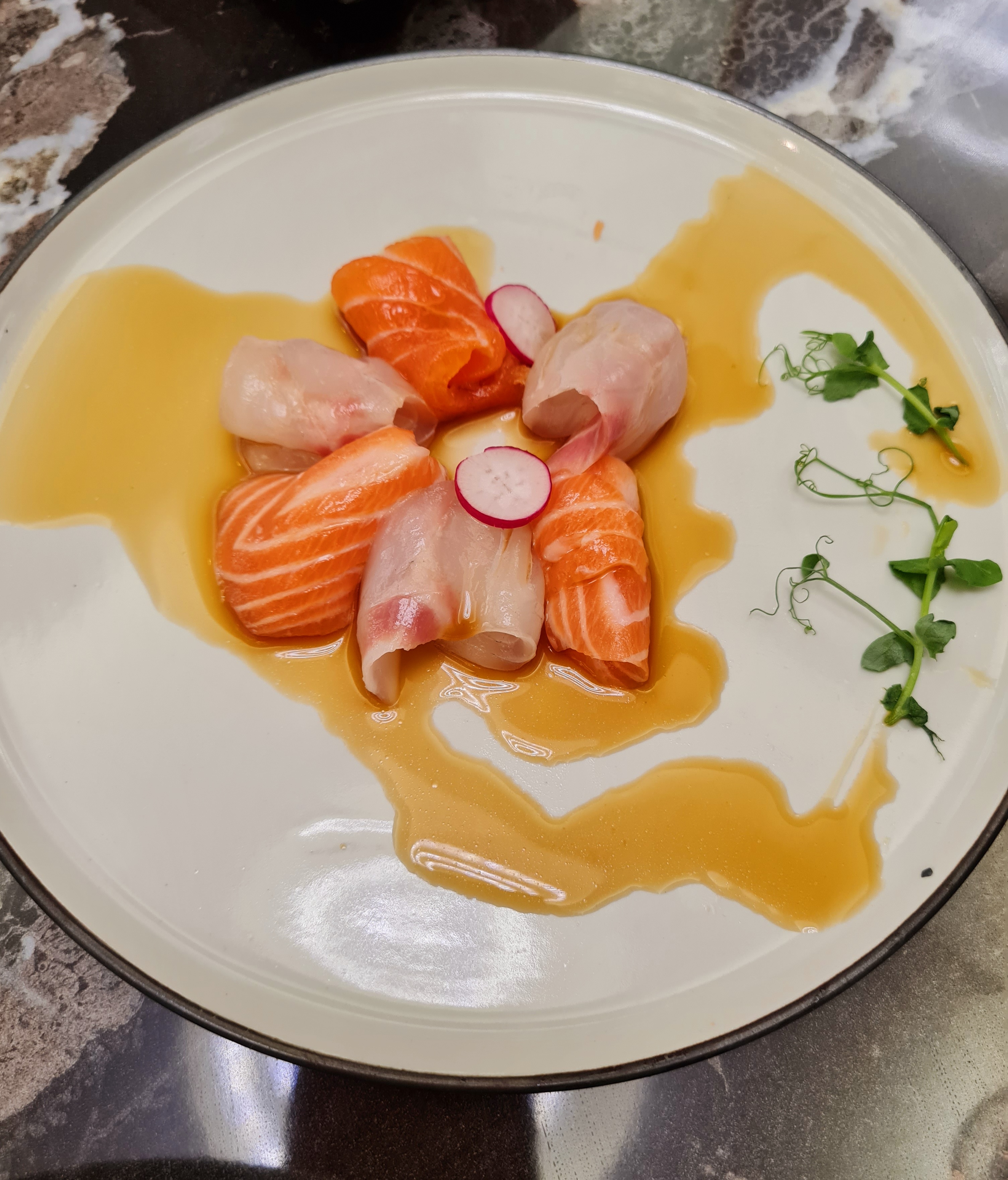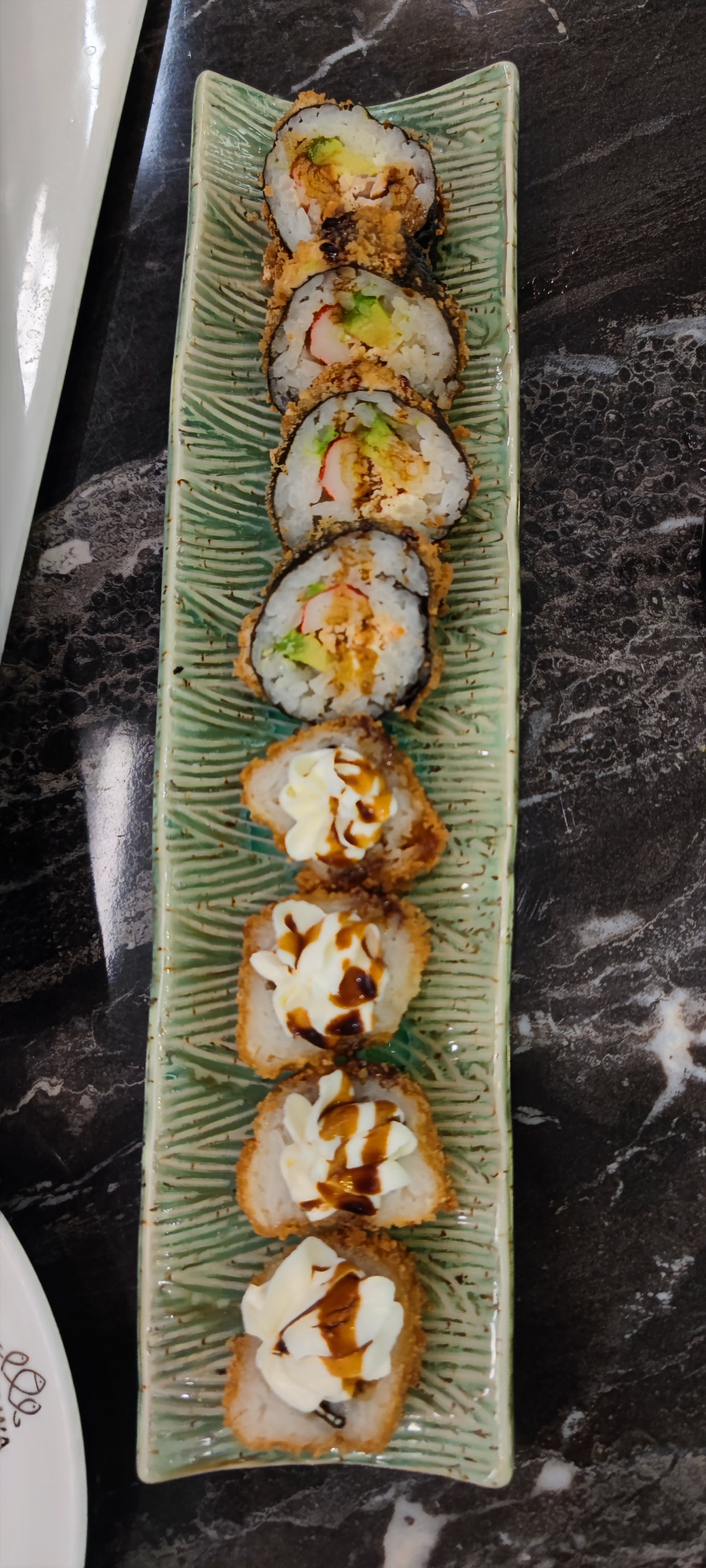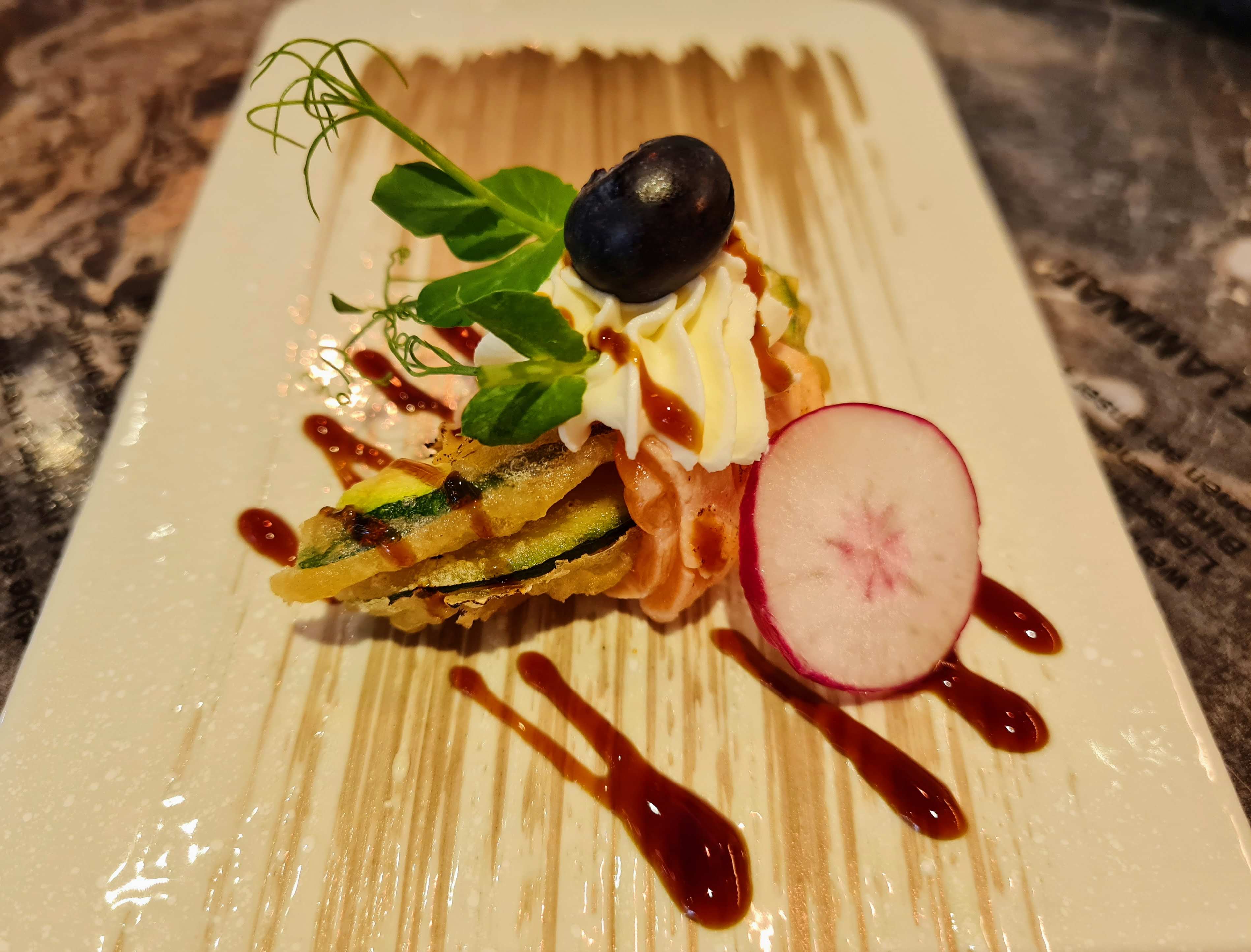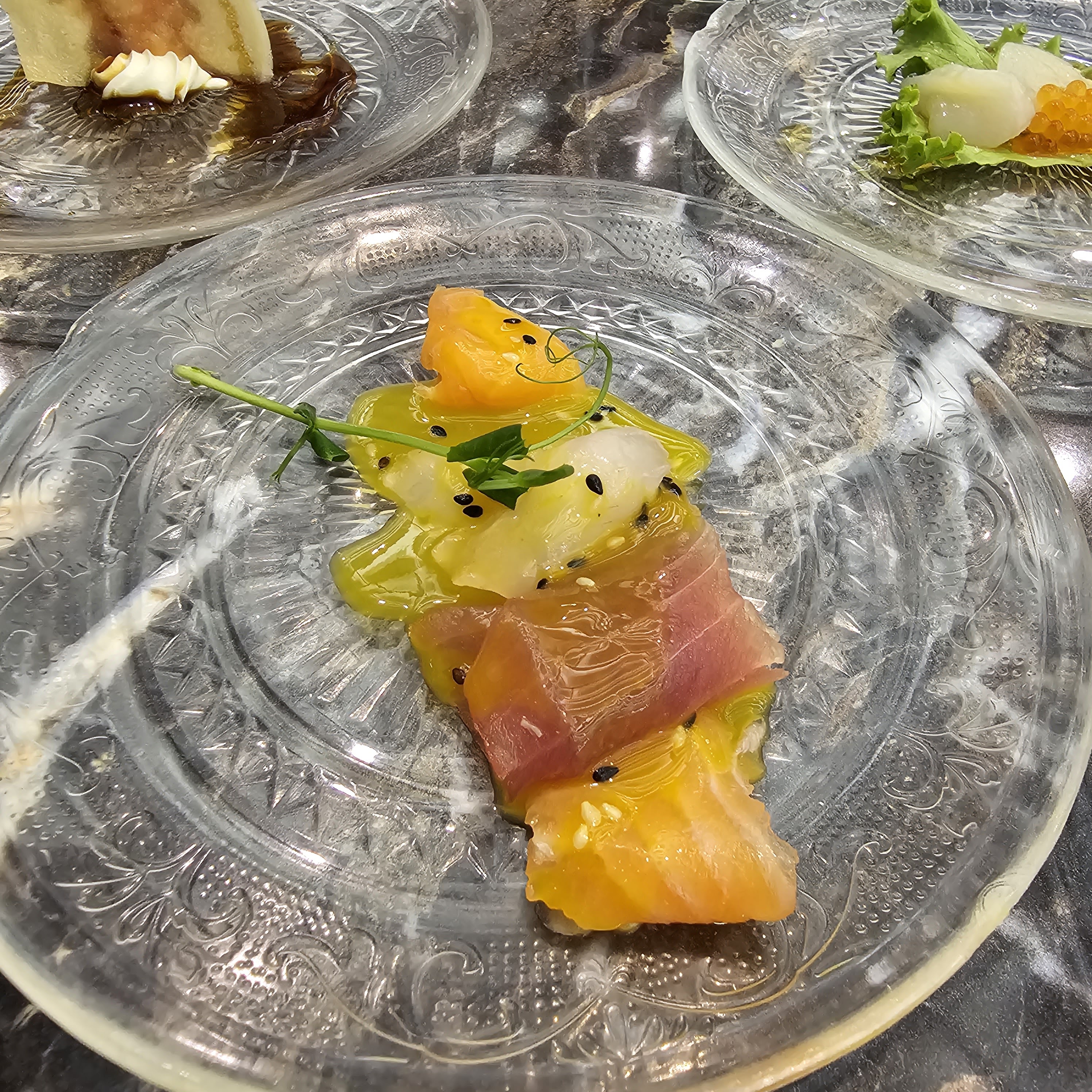 Éclaté. Les entrées chaudes arrivent froide, elle ne sont probablement pas assez décongelées. Le goût des sushis instagram est vraiment pas bon. Les chips aux crevettes sortent tout droit du placard de mamie de Noël dernier. Tel Christophe Colomb en quête d'aventure j'ai testé le carpacciao de bœuf, quel ne fût pas ma surprise quand une tranche de bœuf séché avec un sauce mangue est arrivé. PS c'était pas si terrible mais on ne peut pas appeler ça un carpaccio. Je n'ai pas osé aller plus loin dans l'expérience...