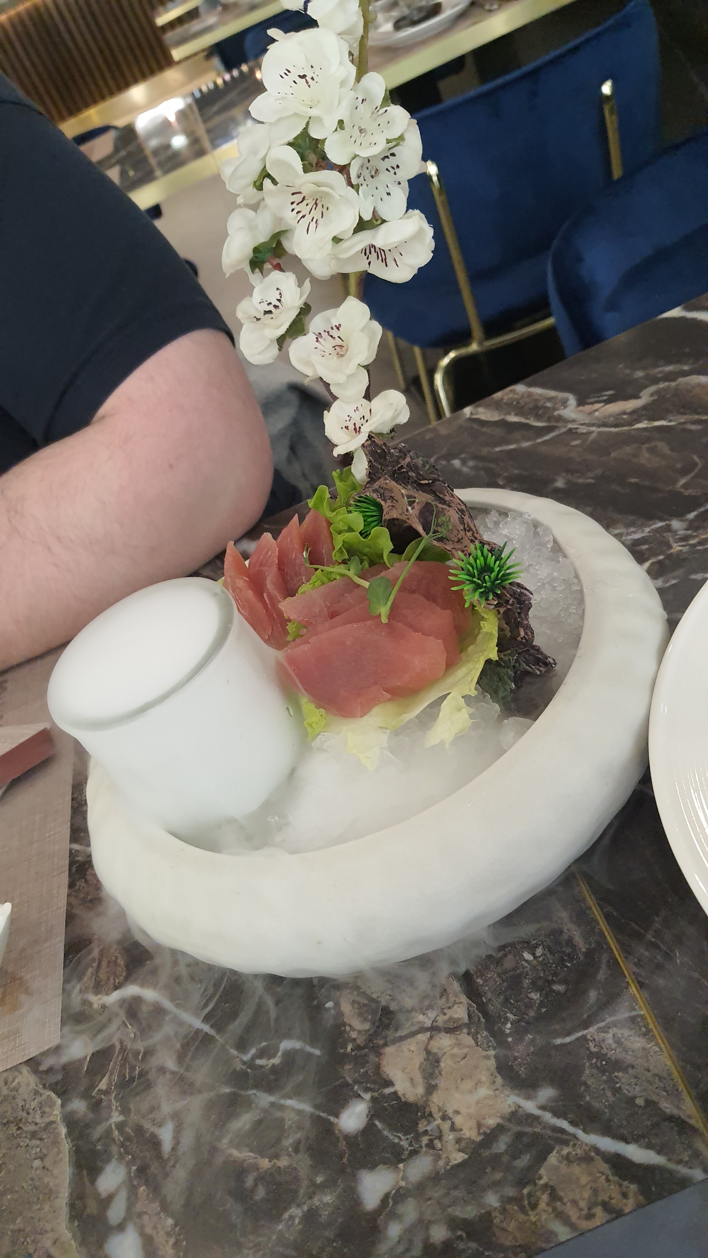 Nous sommes venus pour la 2ème fois dans ce restaurant entre amis. Avis assez mitigé car contrairement à la première fois, beaucoup d’attente entre les plats, il manquait des plats commandés.. Les plats servis en principe chaud étaient froids.. Ce que l’on a commandé ne correspondait pas vraiment aux photos.. Beaucoup de monde dans la salle de restaurant et nous avons remarqué que les serveurs ne sont clairement pas assez pour servir autant de clients.. dommage pour le prix car le restaurant est tres beau!