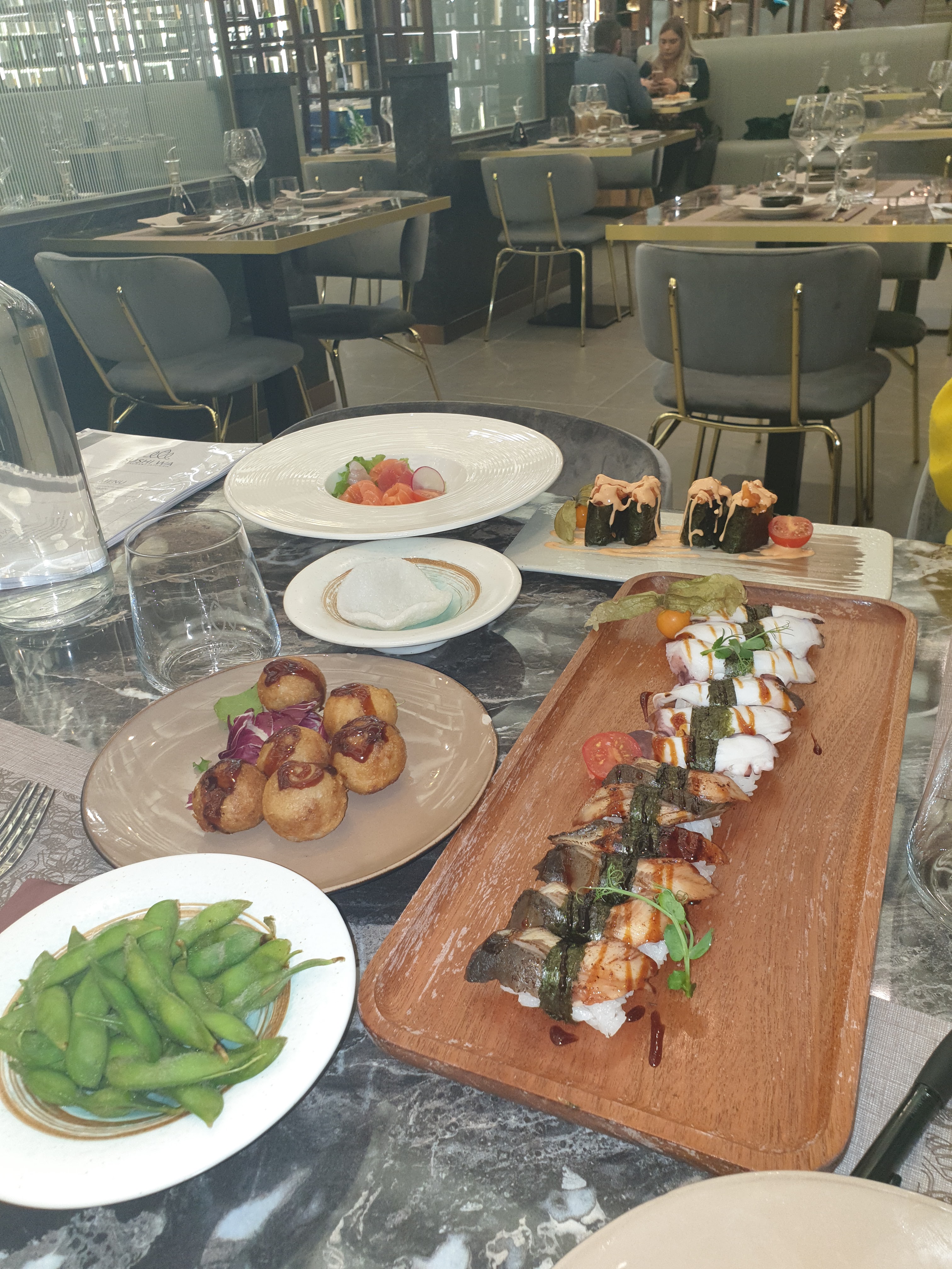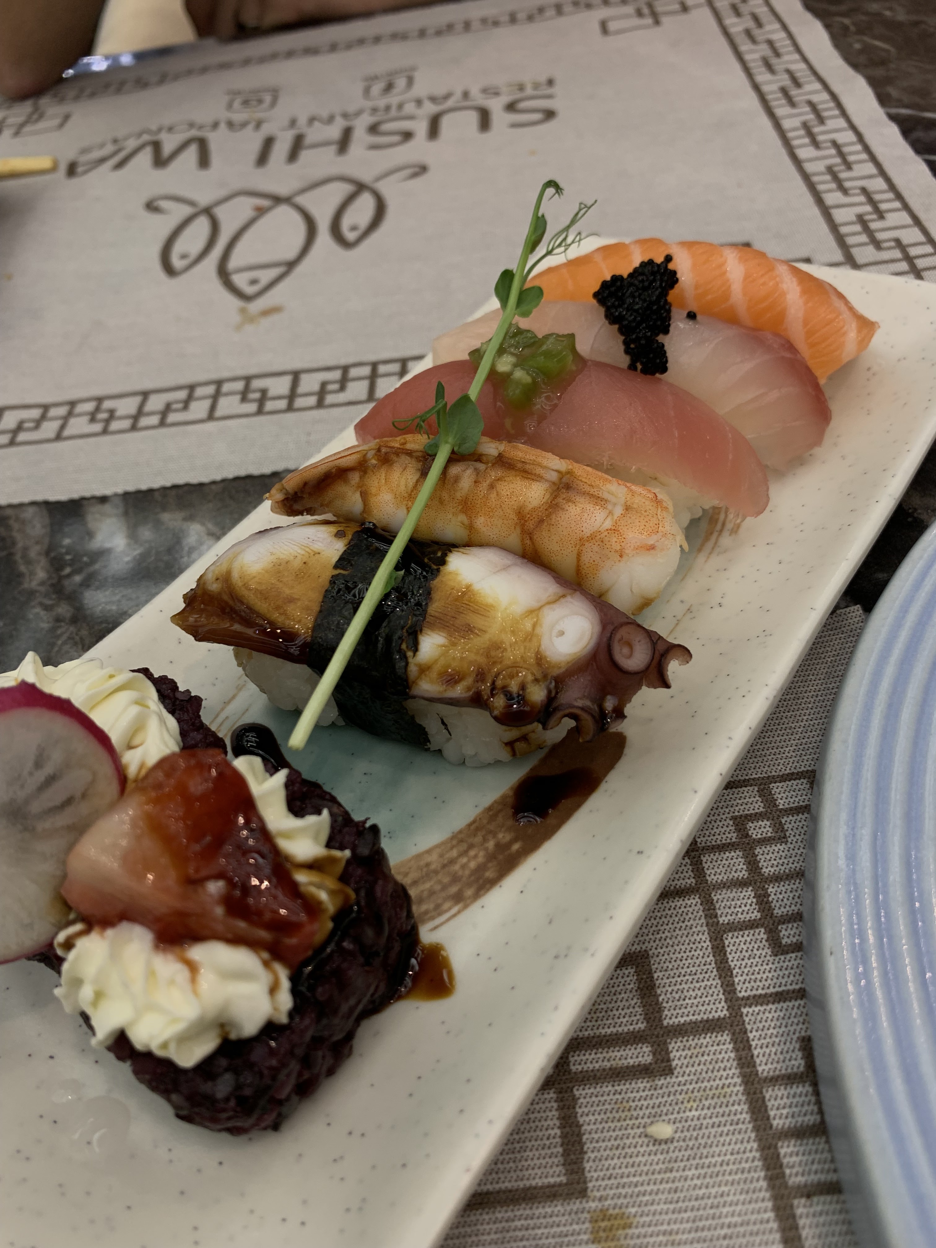 Ravie de notre première visite chez Sushi Wa. La formule à volonté permet de goûter un peu à tout bien que la carte ayant tellement de choix, que nous avons choisi des plats que nous n’avions jamais testé ailleurs. La salle est magnifique, tout le monde est accueillant et les plats sont dressés avec beaucoup de goût. Nous vous conseillons de vous y arrêter pour tester.