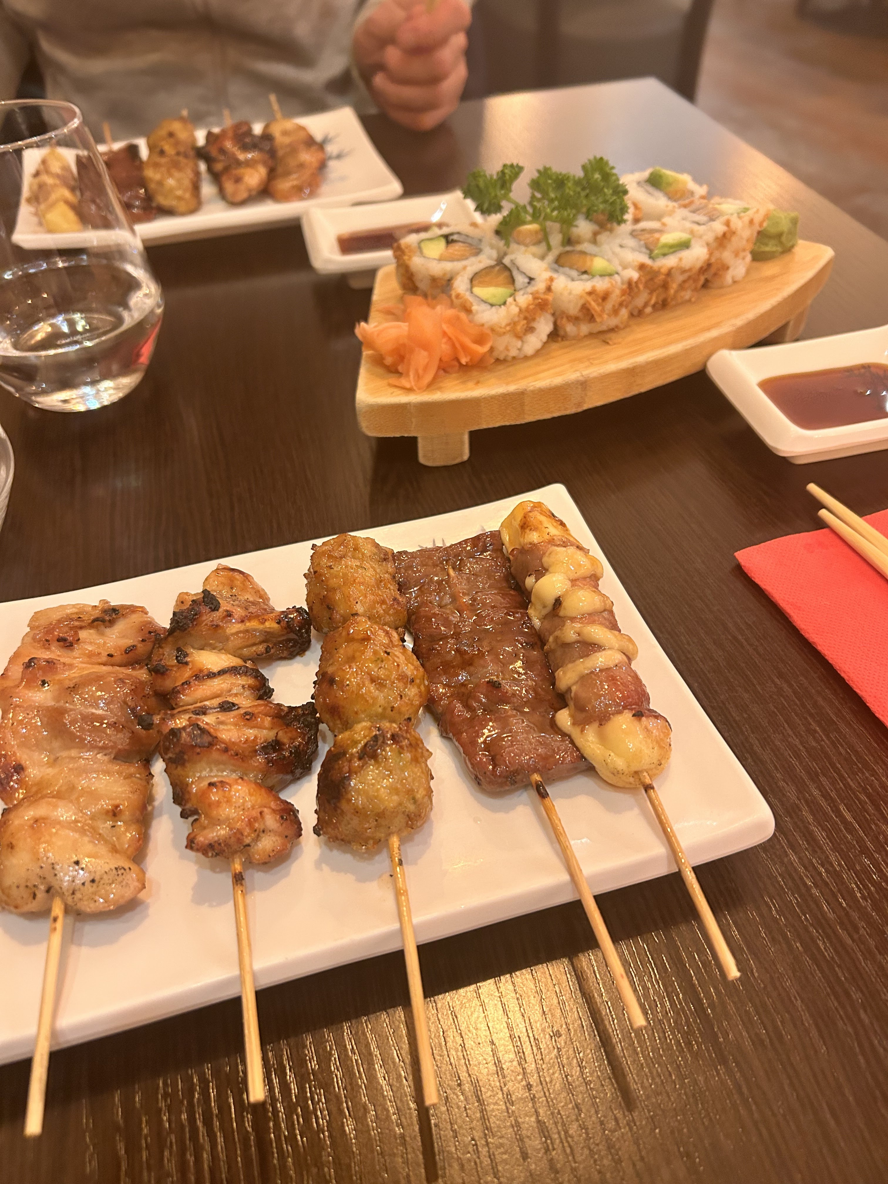 Le resto parait petit lorsqu'on arrive et qu'on le voit de l’extérieur mais en fait c'est plutôt grand, la salle est très en longueur. Accueil très bon, service aussi. Sushi, maki étaient très bien, idem pour l'entrée, les brochettes étaient toutes bien aussi a l'exception de celle au boeuf : viande très élastique et sèche. Bref, si j'y retournerai ? Oui