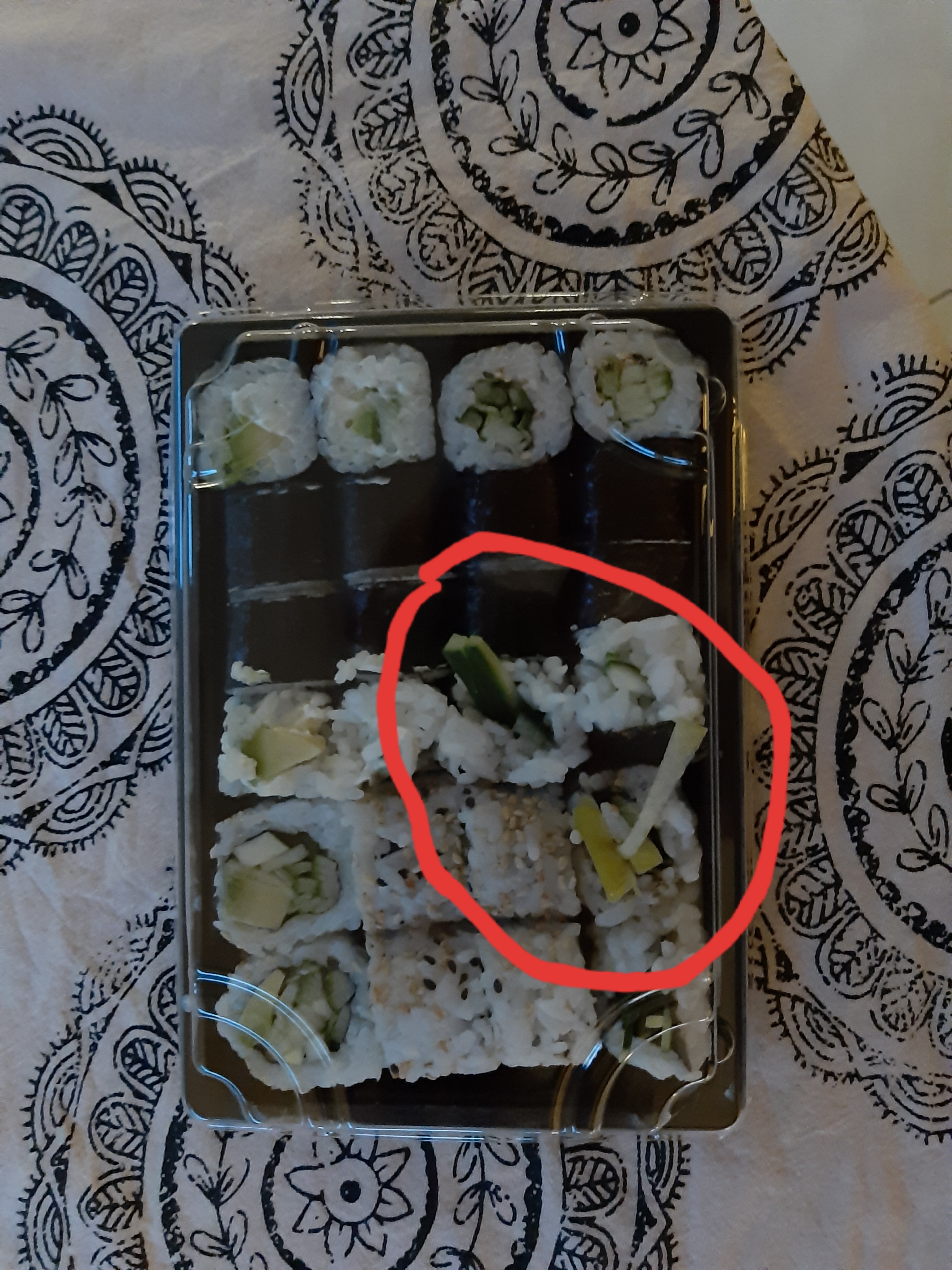 Première déception. 30 mn de retard malgré une commande effectuée dans les temps. Panique au restaurant. Riz des sushis trop tiède. Fromage frais oublié.