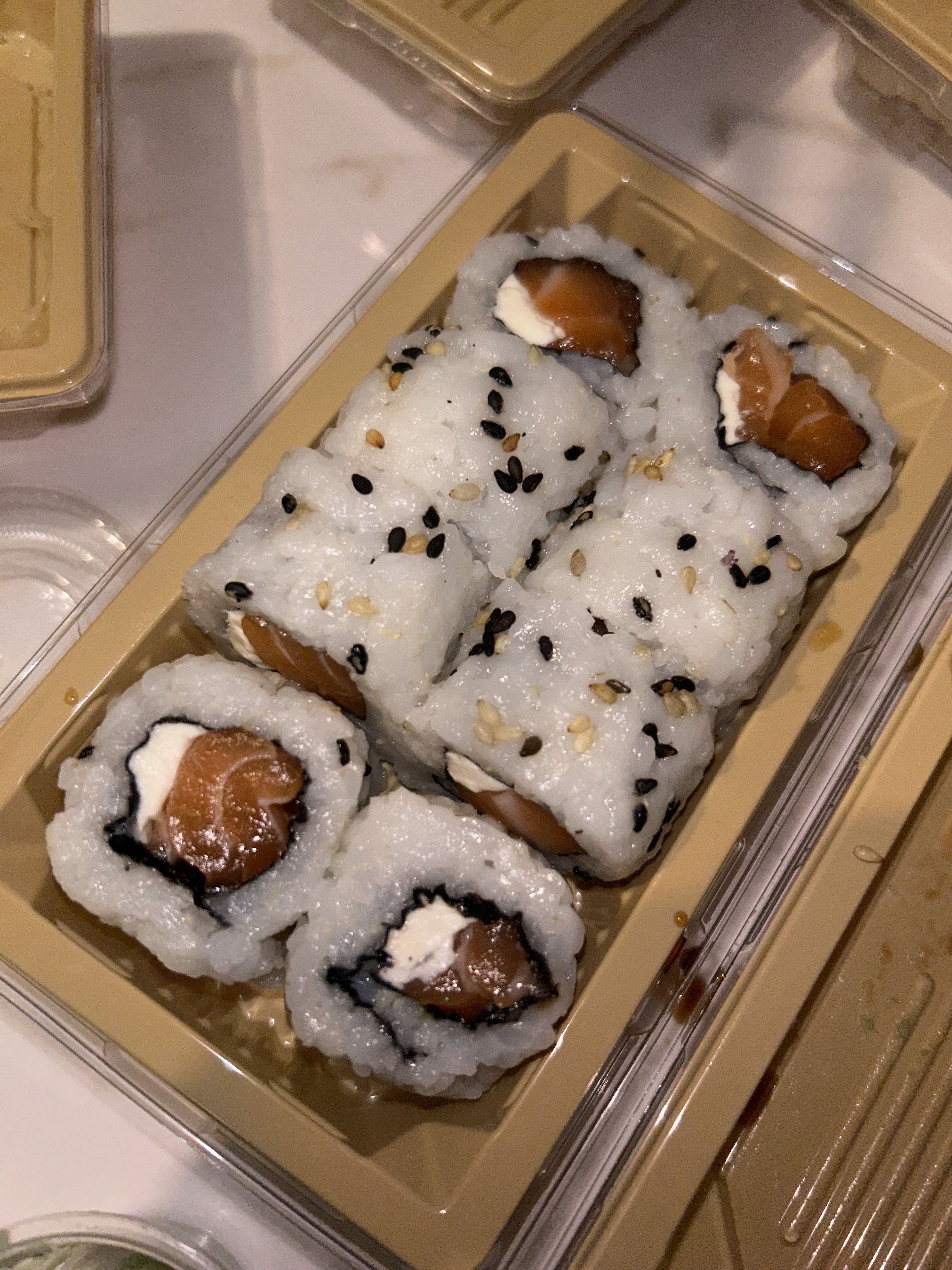 Vraiment mitigée, les california sont assez petits, le riz est beaucoup trop cuit on dirai de la purée en bouche et je pèse mes mots sur ça Retard de livraison de 30 minutes + 15 minutes au téléphone avec le livreur pour qu’il trouve l’adresse……