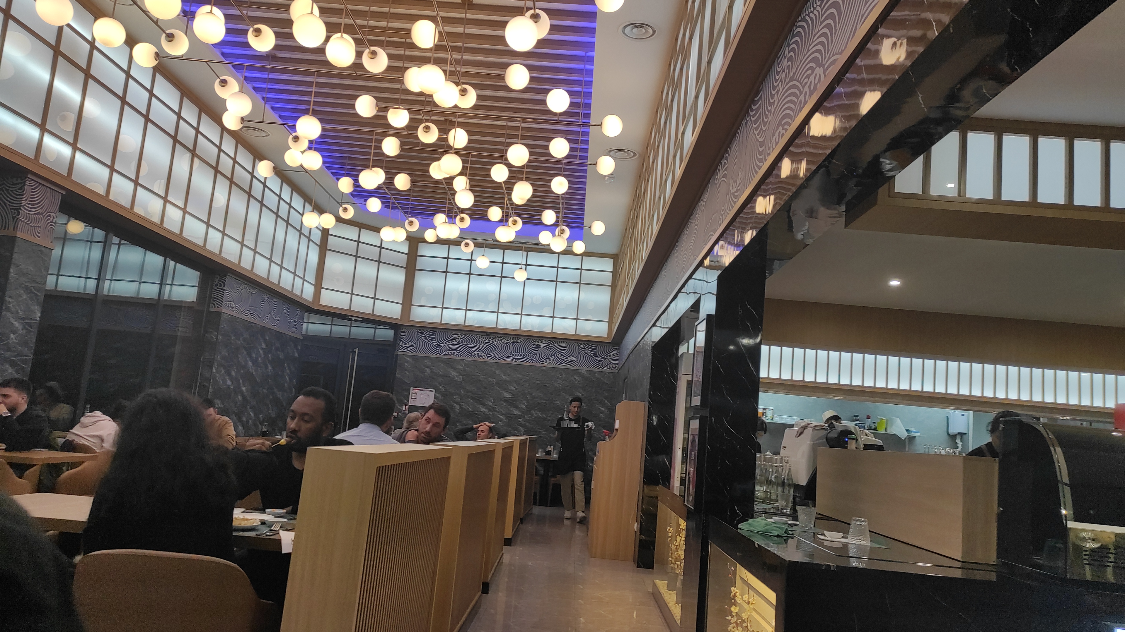 Ambiance très agréable, confortable et lumineuse. Le personnel est impeccable. Formule à volonté avec un système de tablette qui permet de passer plusieurs commandes successives (pas de buffet à volonté, pas de gaspillages). La cuisine est préparée sous nos yeux : un régal si vous êtes amateur de cuisine japonaise.