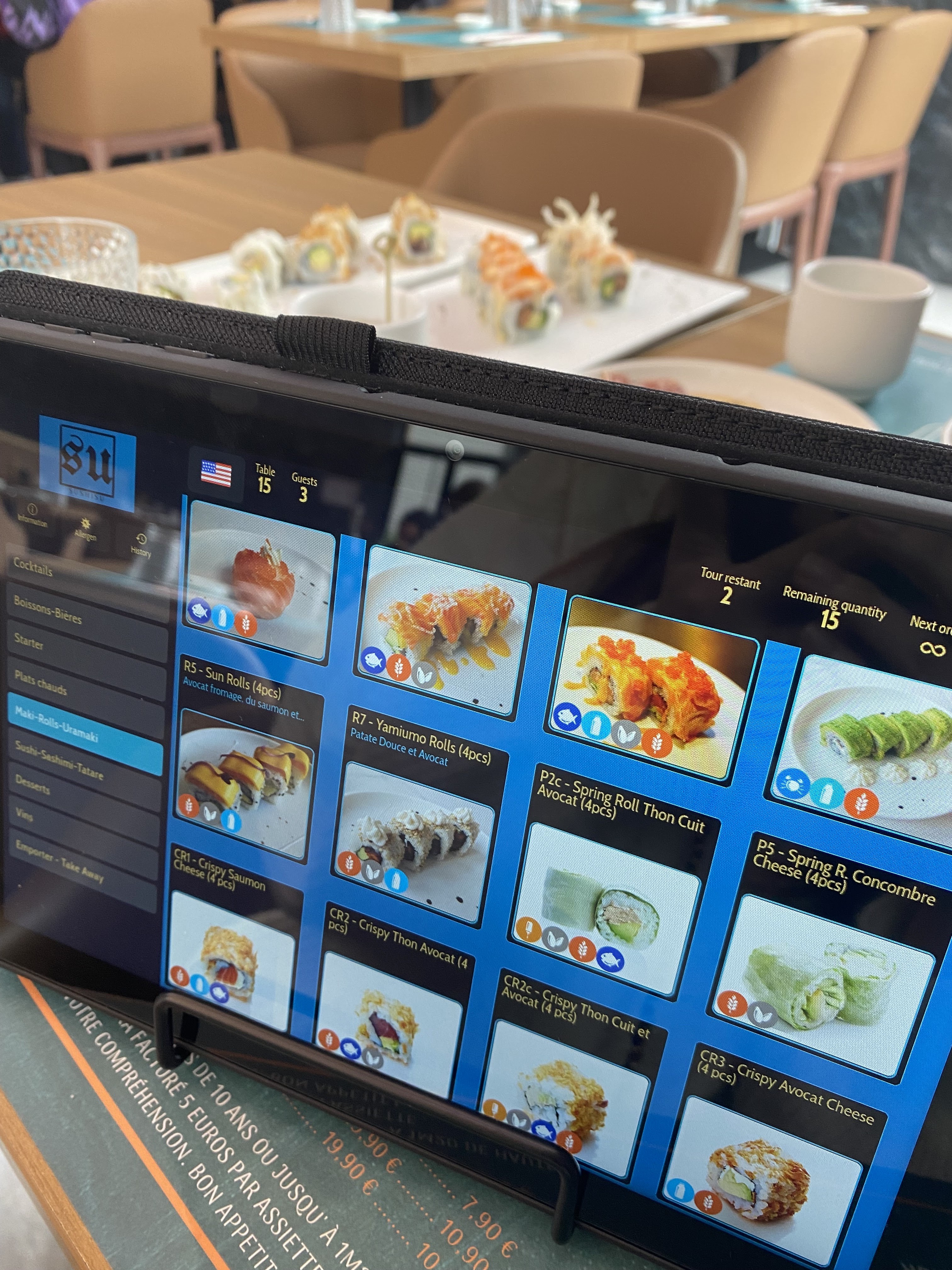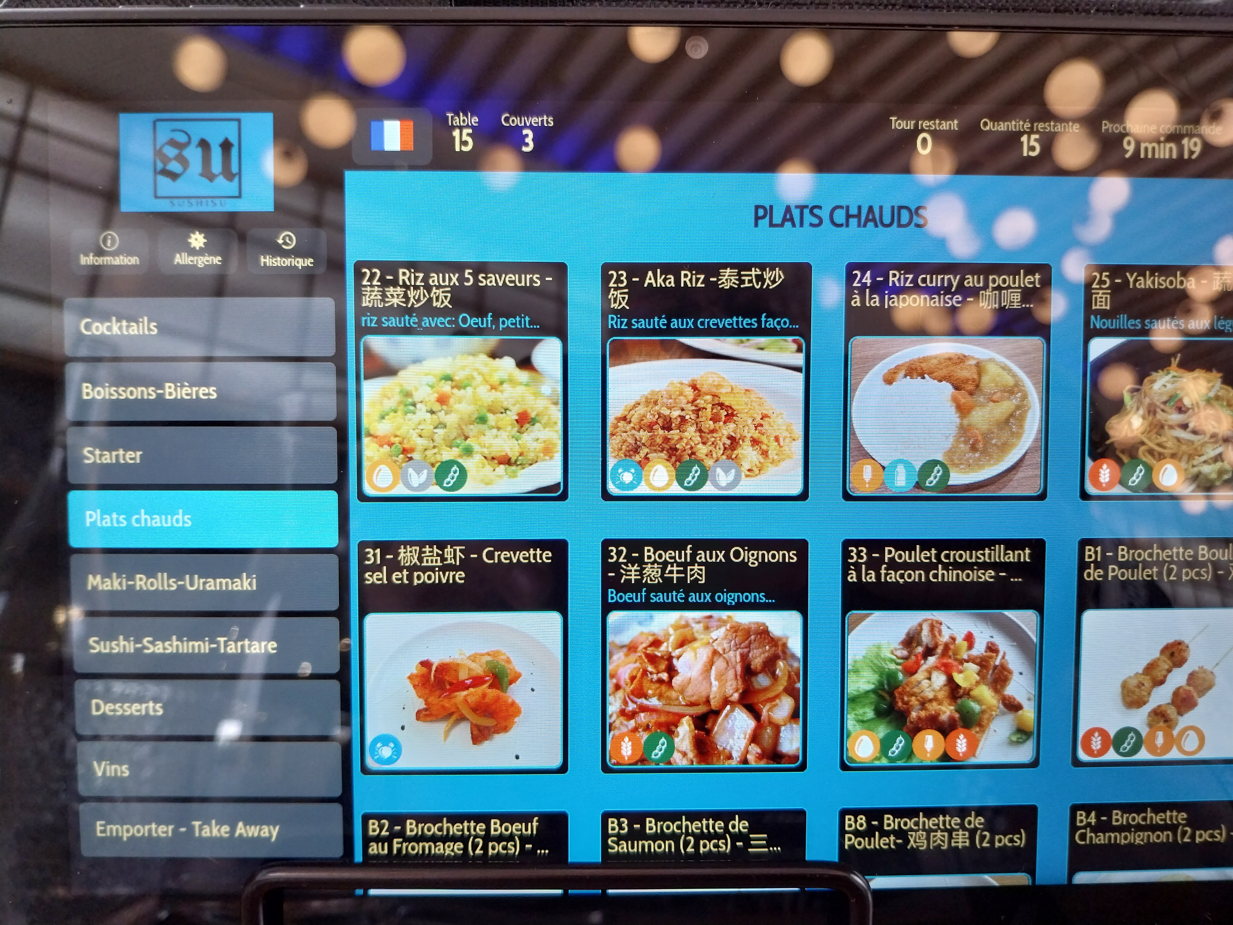 Très bonne expérience les tablettes pour commander ludique et simpa 15 plats par tour ce qui est largement suffisant et cuisine de qualité vous pouvez y aller les yeux fermés