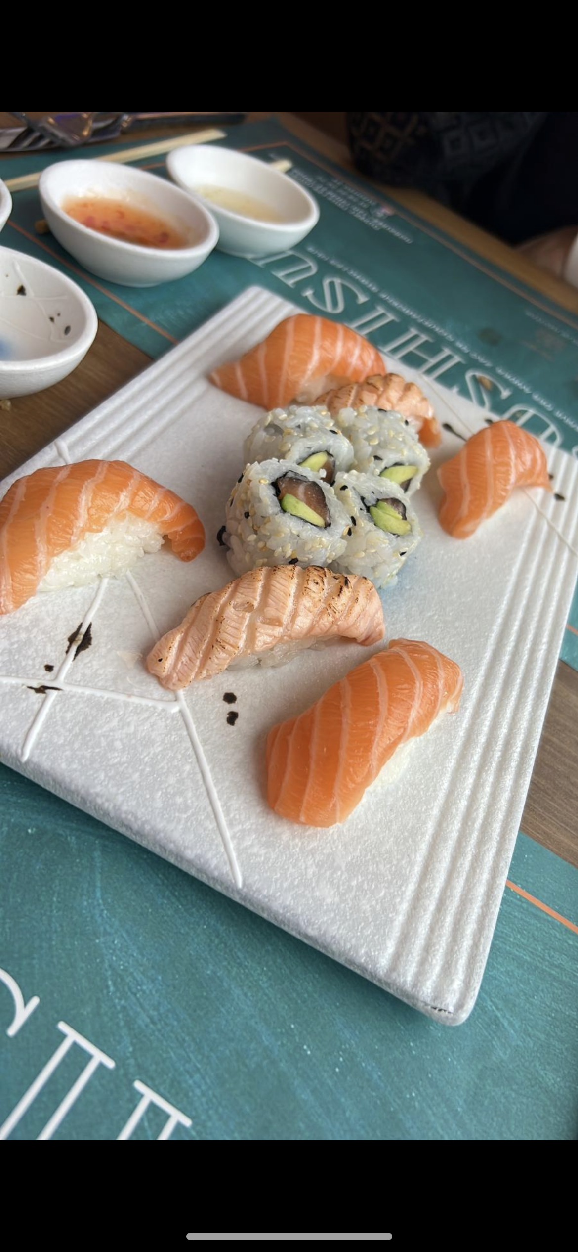 La décoration est moderne endroit super jolie cela change des restaurants asiatiques plus conventionnel. La prise de commande via les tablettes est une superbe idée les plats arrive très vite de plus les petites quantités a volonté je trouve cela bien. Niveau cuisine rien a dire les makis sont très bon (équilibre riz/garniture) top 🤤 Le personnel est gentil Je recommande.