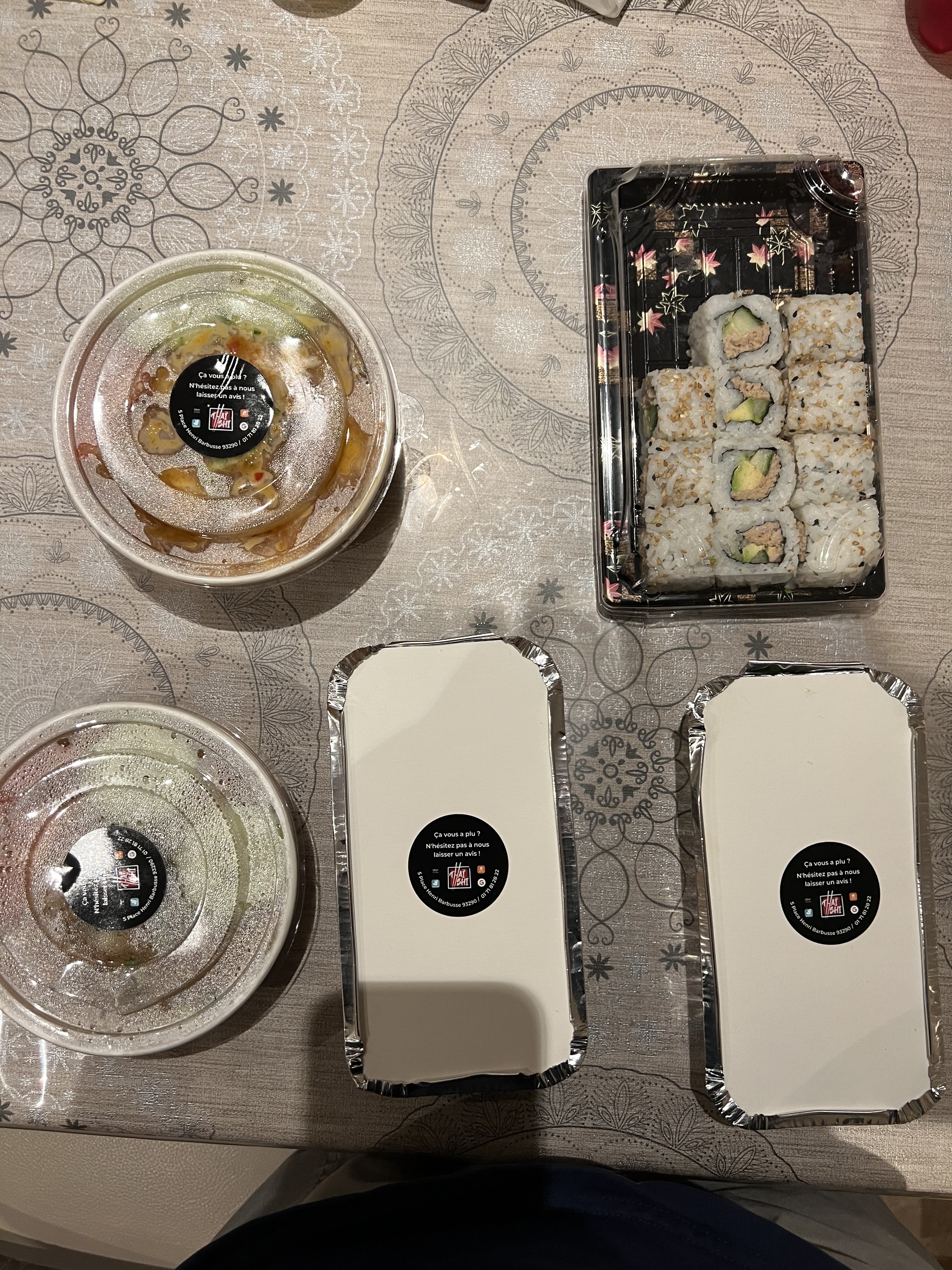 Bonjour, Je viens de commander à 15h. Comment vous dire que je ne m’attendais pas à ça. C’est vraiment qualitatif, de bonne portions, la cuisine est très propre. Du thaï au jap rien a dire. Je valide et reviendrai. Merci à vous pour se voyage culinaire 😊