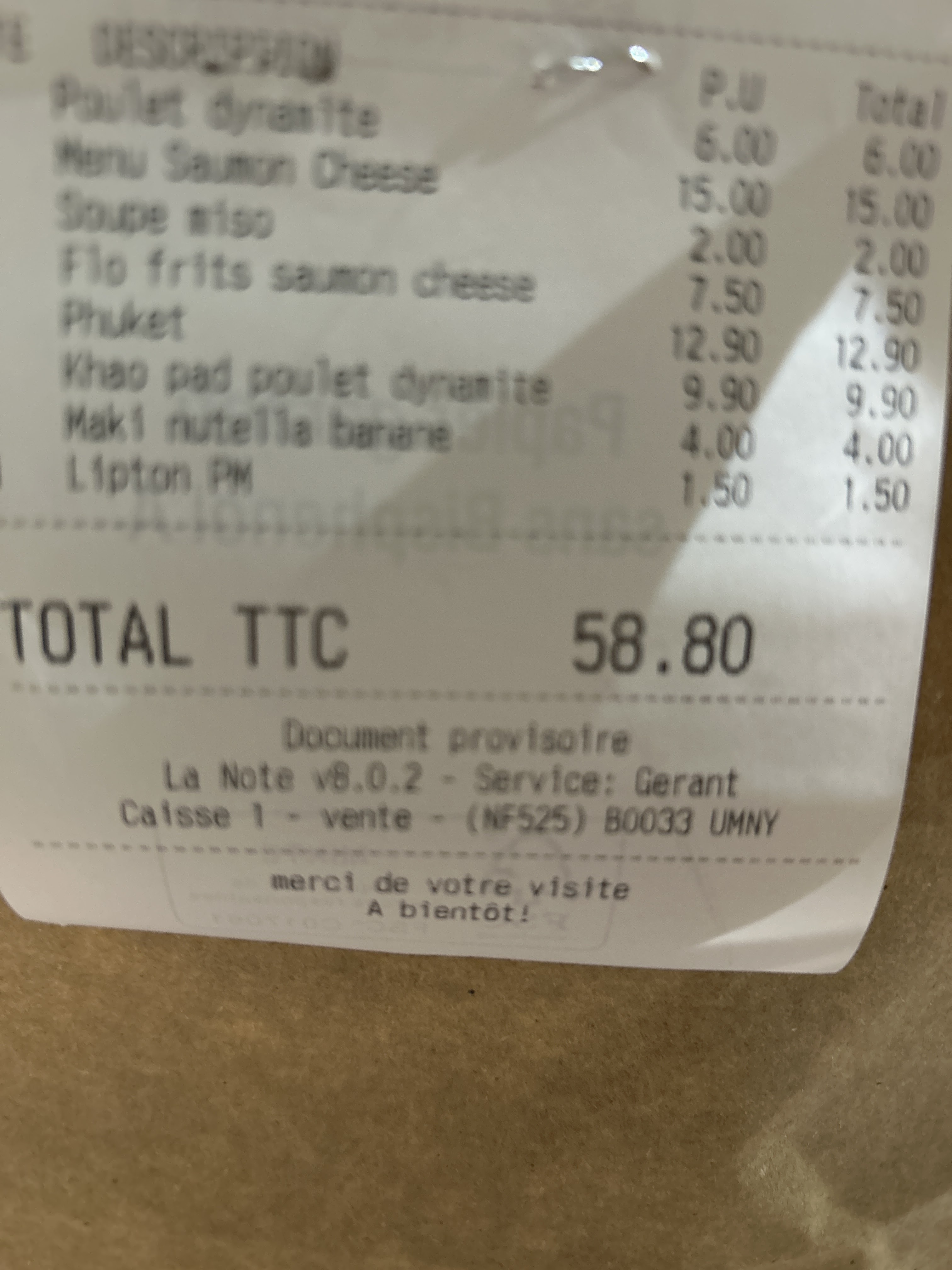 J'ai passé commande sans aucune conviction. Au final, agréablement surprise de la qualité des plats et du caractère copieux des barquettes. Un vrai délice le riz thaï, crevette basilic ; le khao pad - Riz sauté poulet .... Enfin toute la commande était juste exquise. Coup de coeur pour le contenant du Tiramisu. ........…................ Modification apportée à mon avis précédent suite à une autre commande effectuée le 14 juillet via juste eat avant l'ouverture du restaurant. Commande passée, je reçois un appel du restaurant pour m'informer de l'indisponibilité d'une entrée. Démarche très appréciée, j'opte donc pour une autre entrée à ma convenance. Quelques minutes plus tard le livreur me contacte, il est là. Super le délais de livraison est respecté. Il m'indique que l'un des desserts est également indisponible (tiramisu..ah mince alors) mais qu'il a été remplacé par autre chose qui selon lui est très bon. Heuuuu ok ..... (2 menus sont concernés). En ouvrant le sac, ça sent très bon, tout est là enfin presque. Une boisson manque à l'appel et hormis l'entrée que j'ai moi même choisi tous les éléments remplacés ne sont pas du tout à notre goût. Comme quoi ce qui plait à l'un peut ne pas plaire à l'autre. Alors les perles de tapioca je suis navrée mais à vu d'œil ça ne donnait déjà pas envie et une fois goûtées je n'ai pas du tout aimé et même flop pour le reste de la famille. Donc deux desserts qui ont fini à la poubelle, un véritable gâchis (tout ce dont j'ai horreur). Un sprite remplacé par un oasis cassis framboise et là encore pas de bol personne ne boit cette boisson à la maison. Et pour finir je gardais un très bon souvenir des tempuras de ma précédente commande et là vrai déception. La texture m'a d'emblée posé question puis à la première bouchée haut le coeur immédiat, j'ai eu l'impression d'avaler que de l'huile ou des aliments cuit la veille et rechauffés. En tout cas impossible de les manger 😟. Une petite baisse d'une étoile car j'estime que le client est le seul à savoir ce qu'il souhaite manger ou boire. Et les tempuras là pour le coup un véritable loupé.
