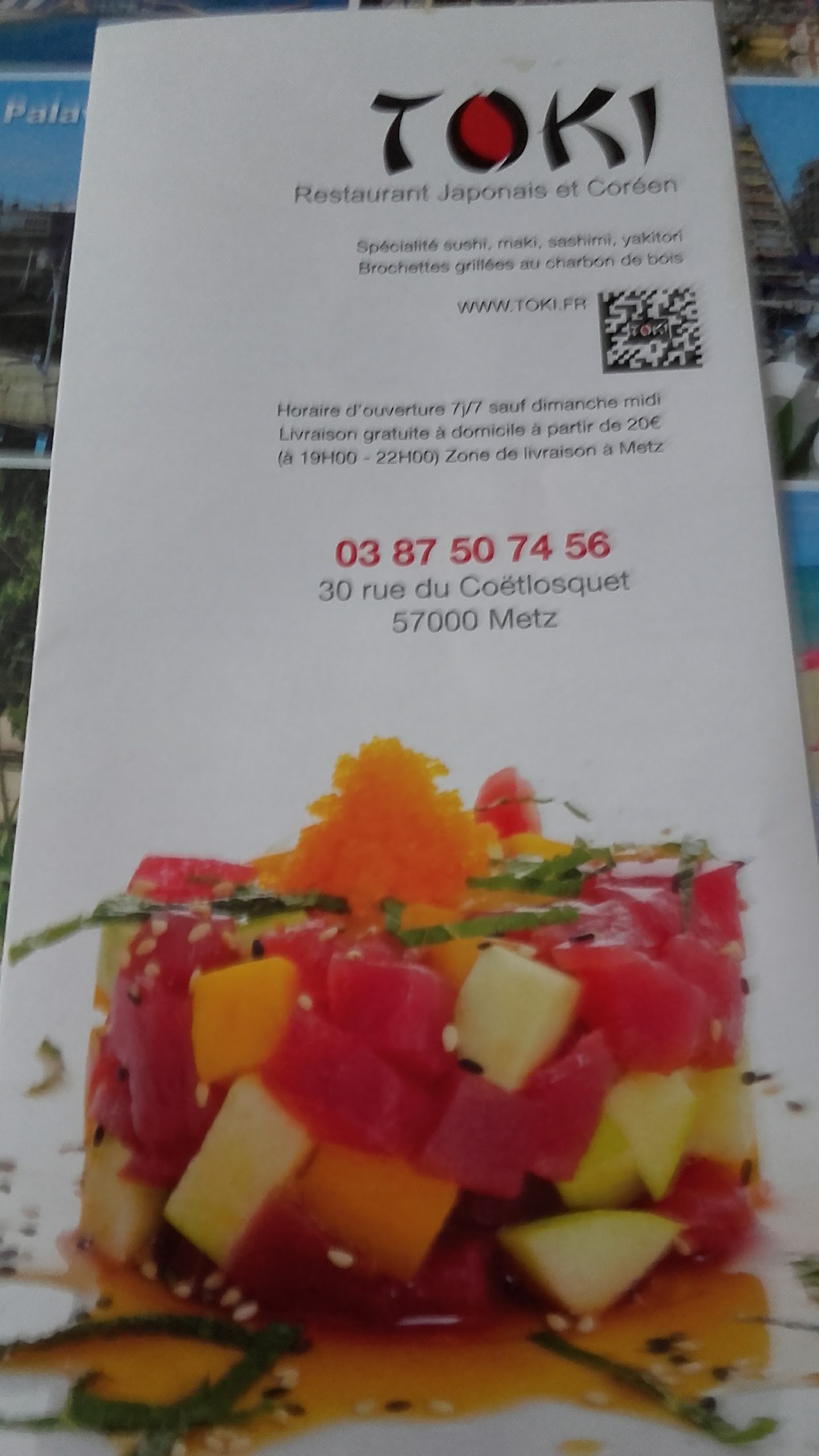 Découvrez toutes les informations concernant Restaurant japonais Toki qui se situe au 30 Rue du Coetlosquet, 57000 Metz (57). Cette fiche inclut les photos, les horaires d'ouverture, l'adresse, le numéro de téléphone et les avis des clients.