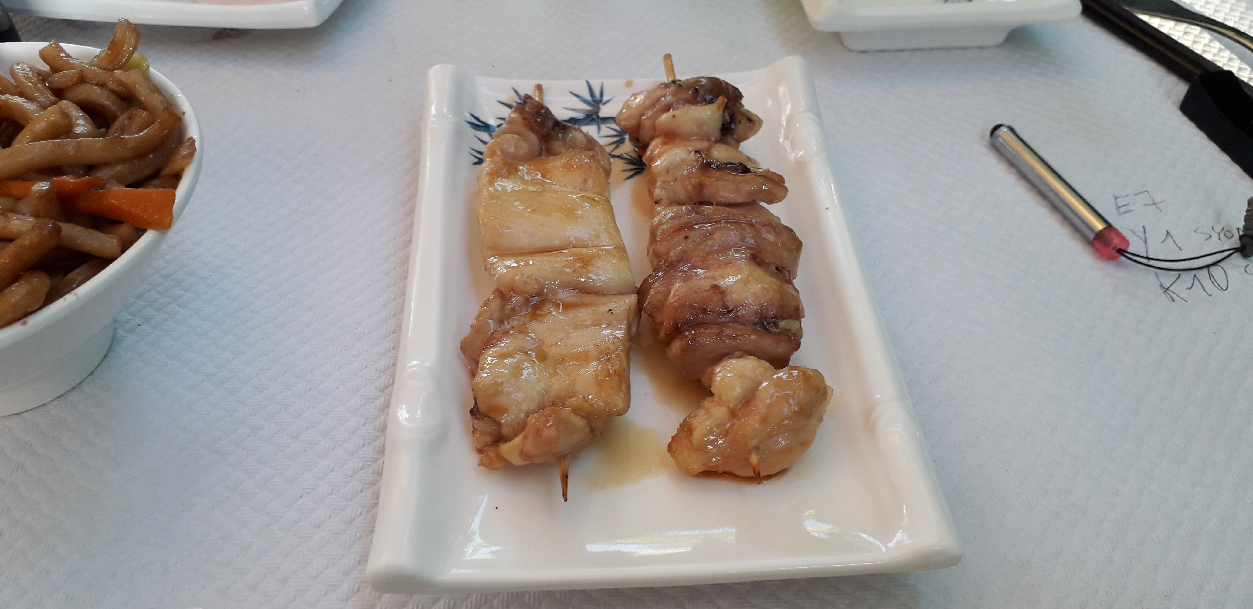 Salade trop simple sans saveur, soupe miso version champignon de paris, dès de tofu insignifiant. Brochette de bœuf bien assaisonné, mais un peu élastique, brochette de poulet trop cuite, brochette de thon dégueulasses sec trop cuite immangeable, brochette d'ailes de poulet sec et minuscule, brochette de bœuf fromage insipide et sans goûts, makis moyen, sashimis passable, sauce soja sucré et salé qu'on trouve en grande surface rien d'incroyable, et pour finir plusieurs personne qui on mangeait avec nous avions eu mal au ventre, encore une personne c'est excusables mais plusieurs,des questions se posent des lors...