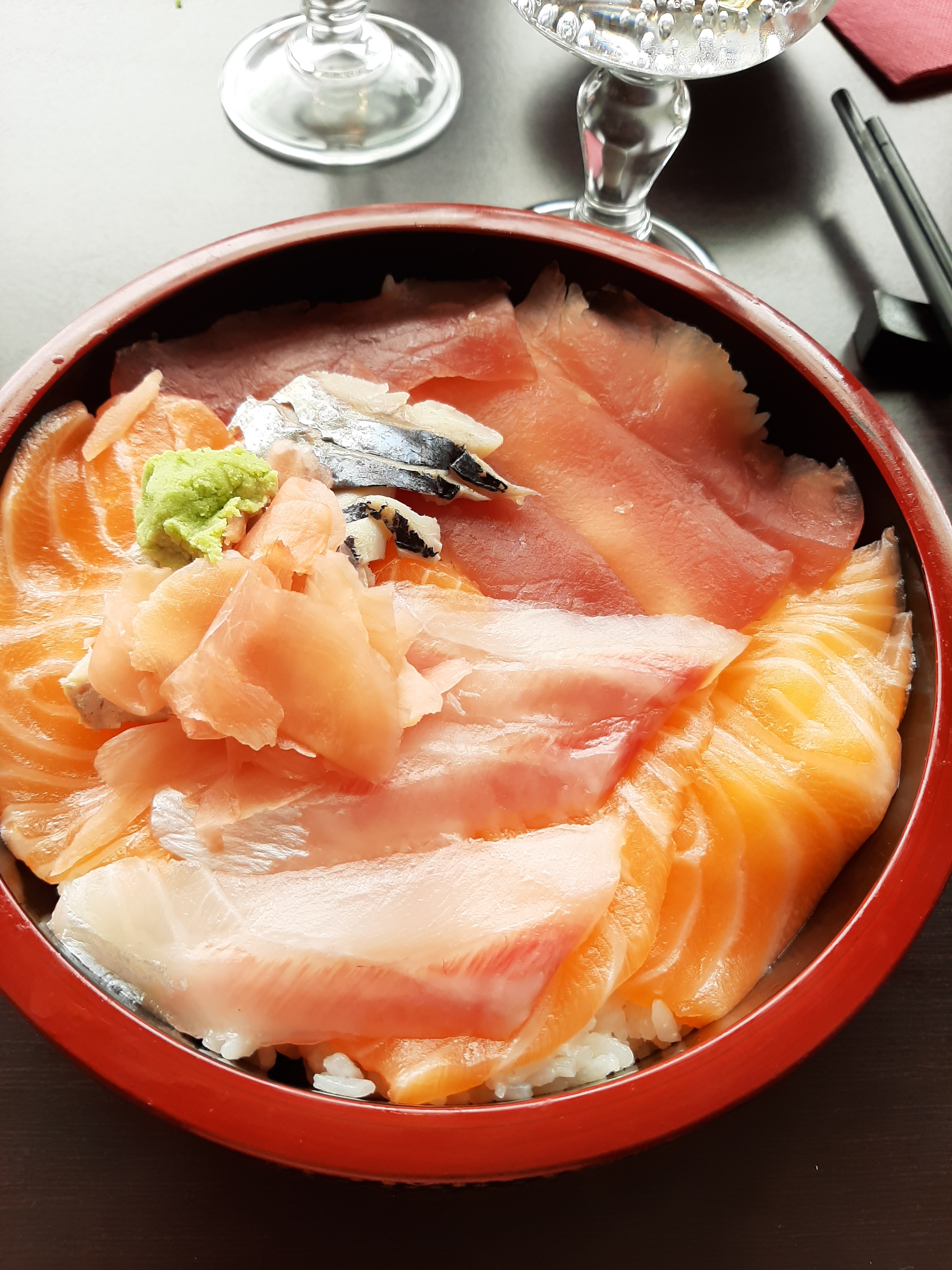 Poisson très frais. Riz assaisonné à la perfection. Gros morceaux de sashimis. Nouilles et soupe au top. Je recommande.