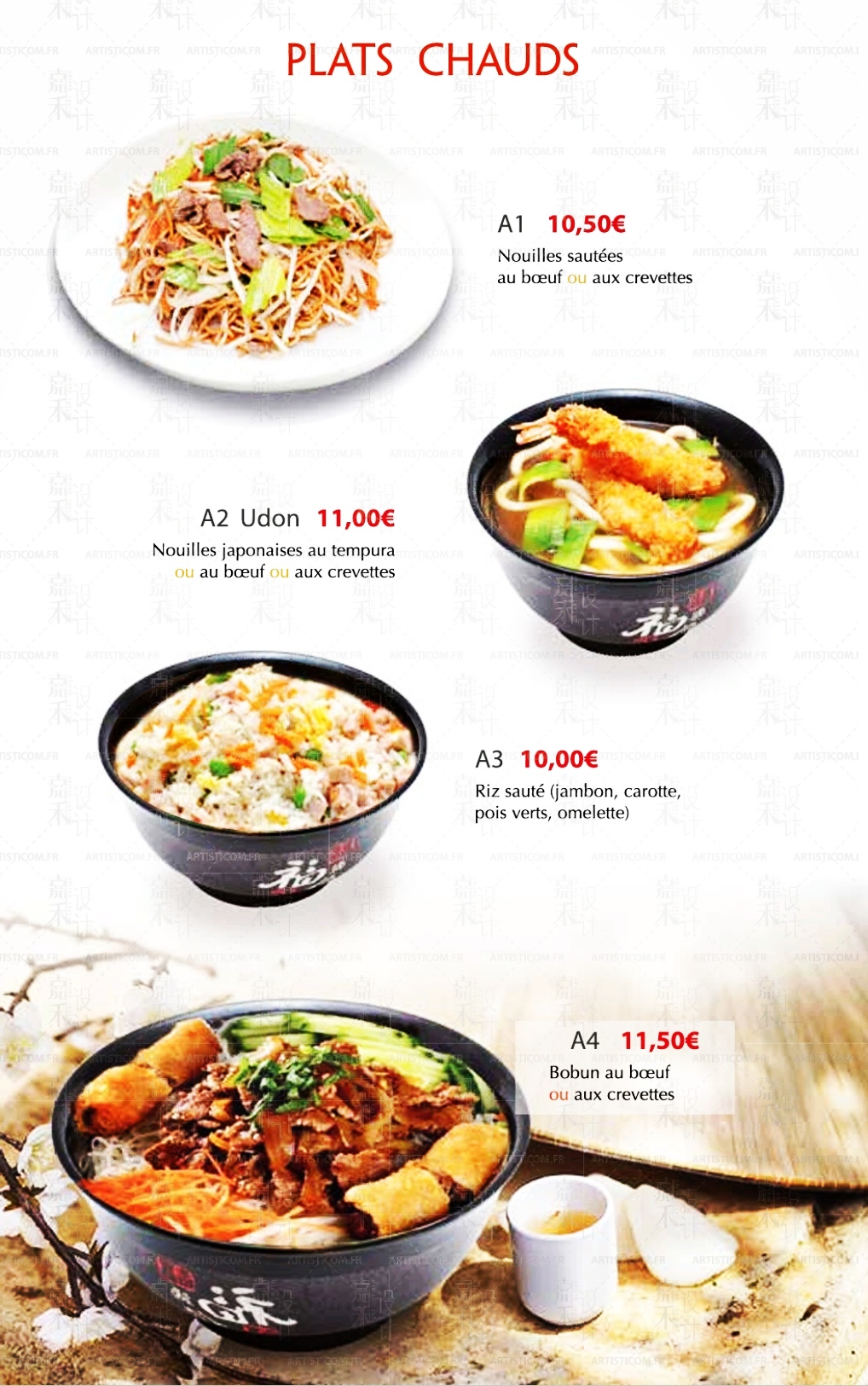 J ai pris un bobun au bœuf... J ai été très déçue. Plat copieux mais composé quasi exclusivement de nouilles. Le serveur qui tourne en rond et passe près de la table toutes les 2 min donné le sentiment d'être dans un fast food où il ne faudrait pas rester trop longtemps. Bien dommage.