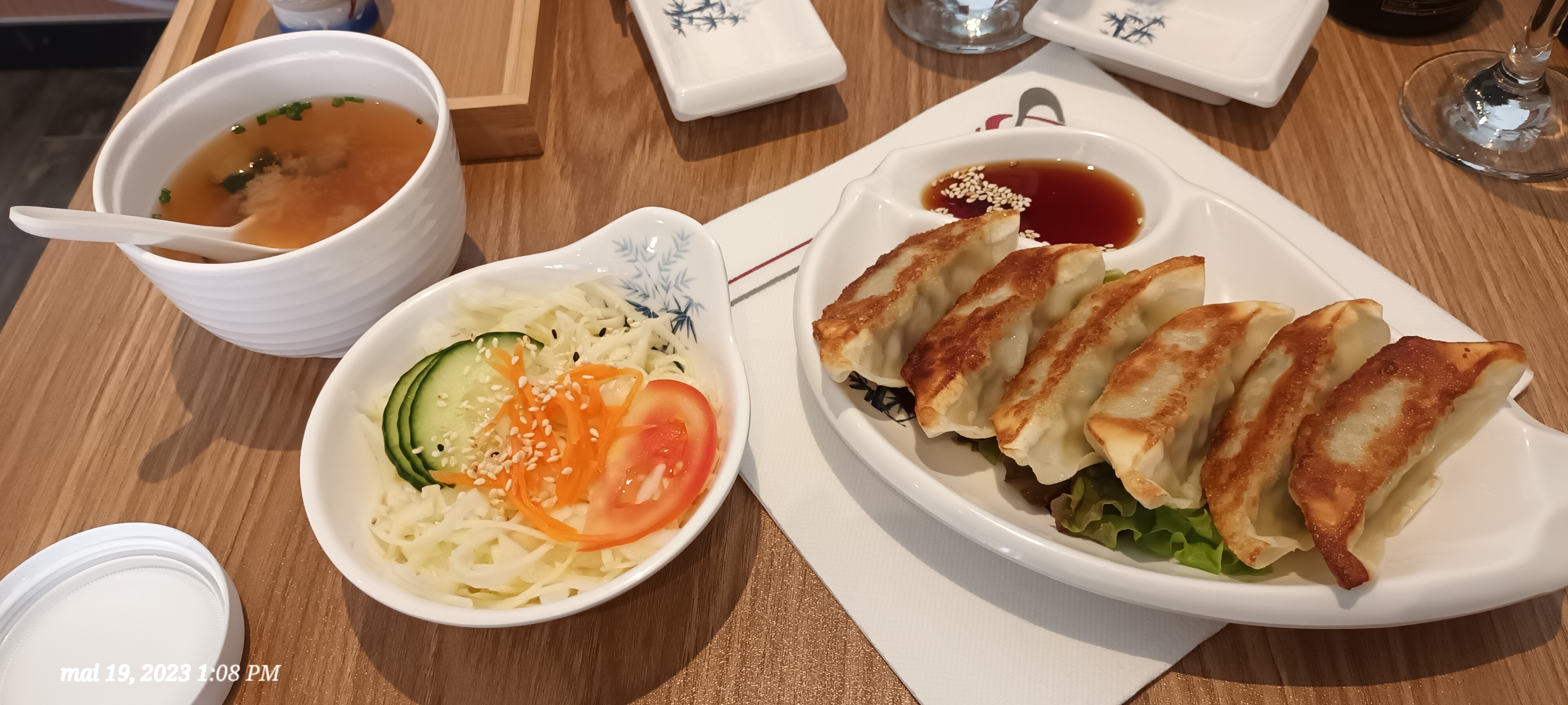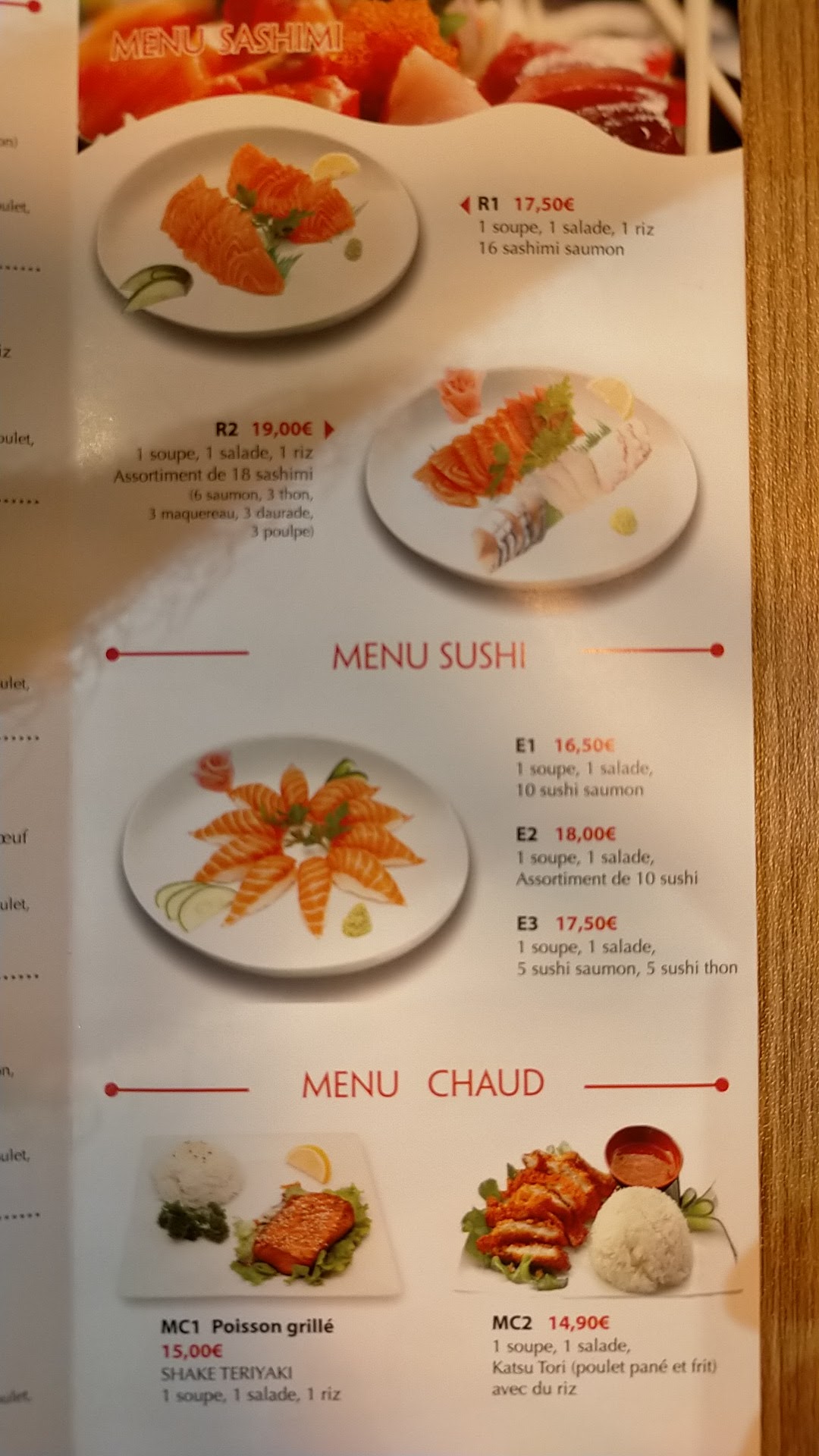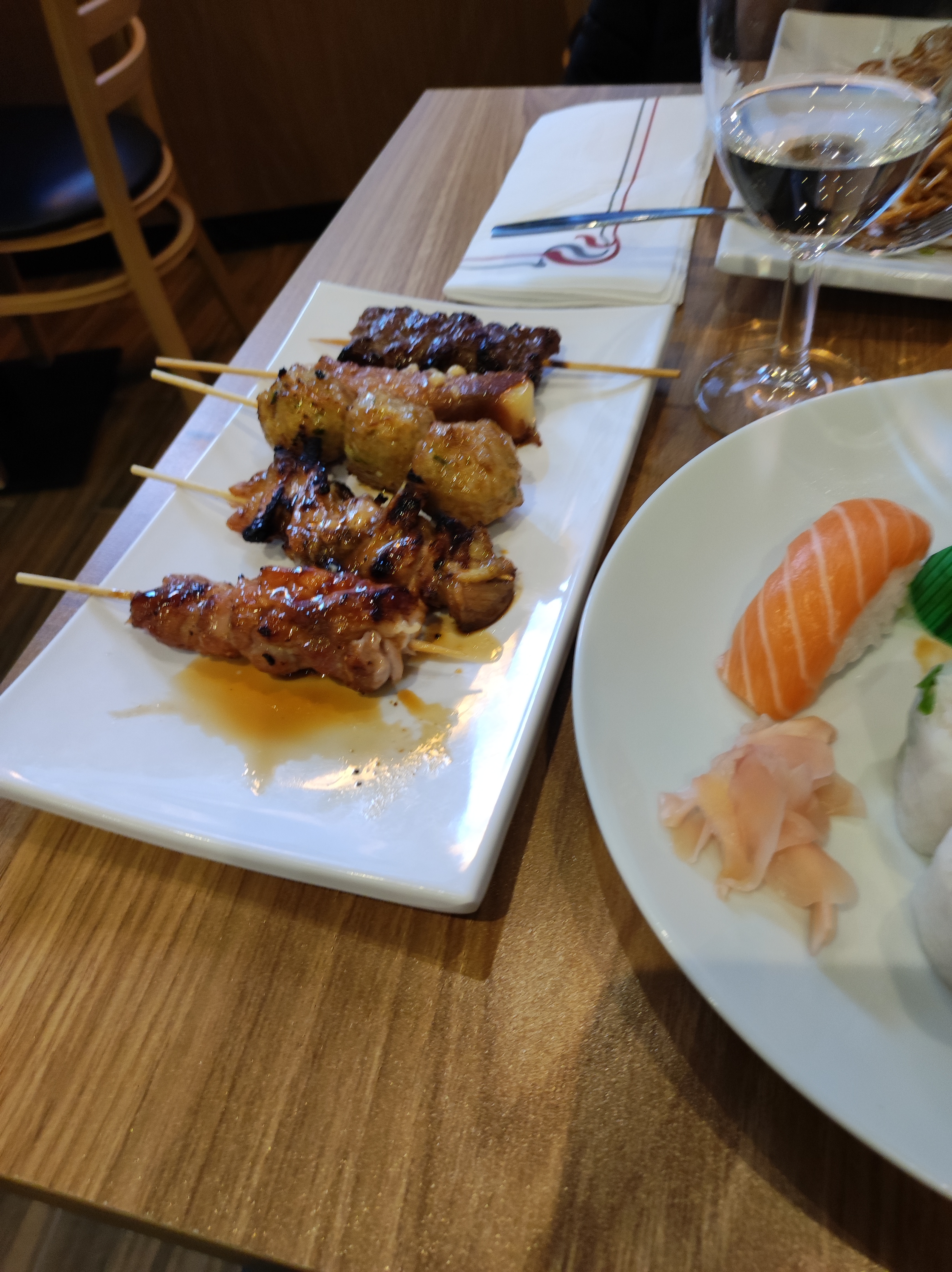 J ai déjeuner un midi.Dommage que les brochettes de poissons(thon,c.saint Jacques, saumon)soient beaucoup trop cuites.Les nouilles sautées un peu trop grasse,et pauvres en crevettes,même si c est assez copieux. La soupe miso est très bonne.
